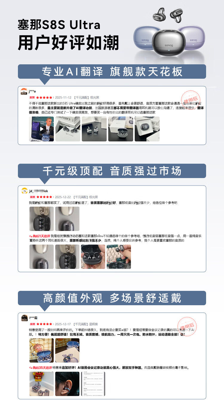 SANAG塞那S8SUltra【耳夹TOP1】耳机耳夹式蓝牙耳机 气骨传导概念开放式AI翻译运动挂耳不入耳无线耳机
