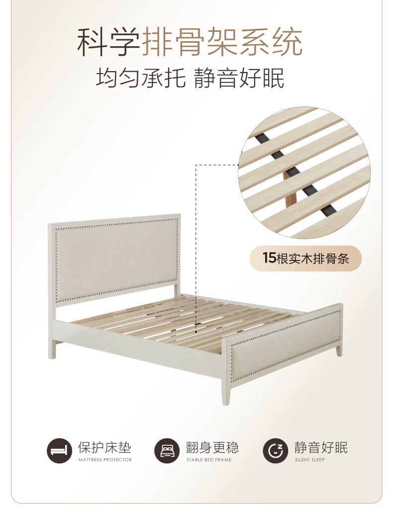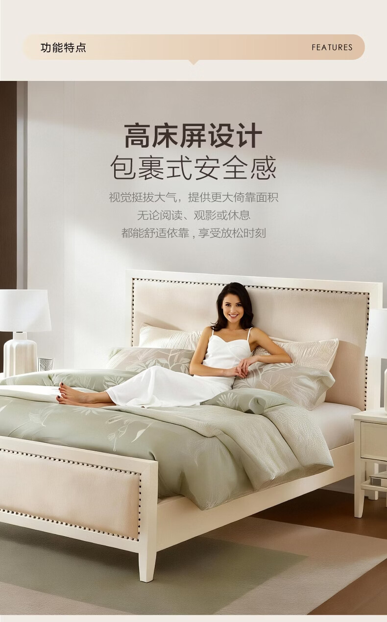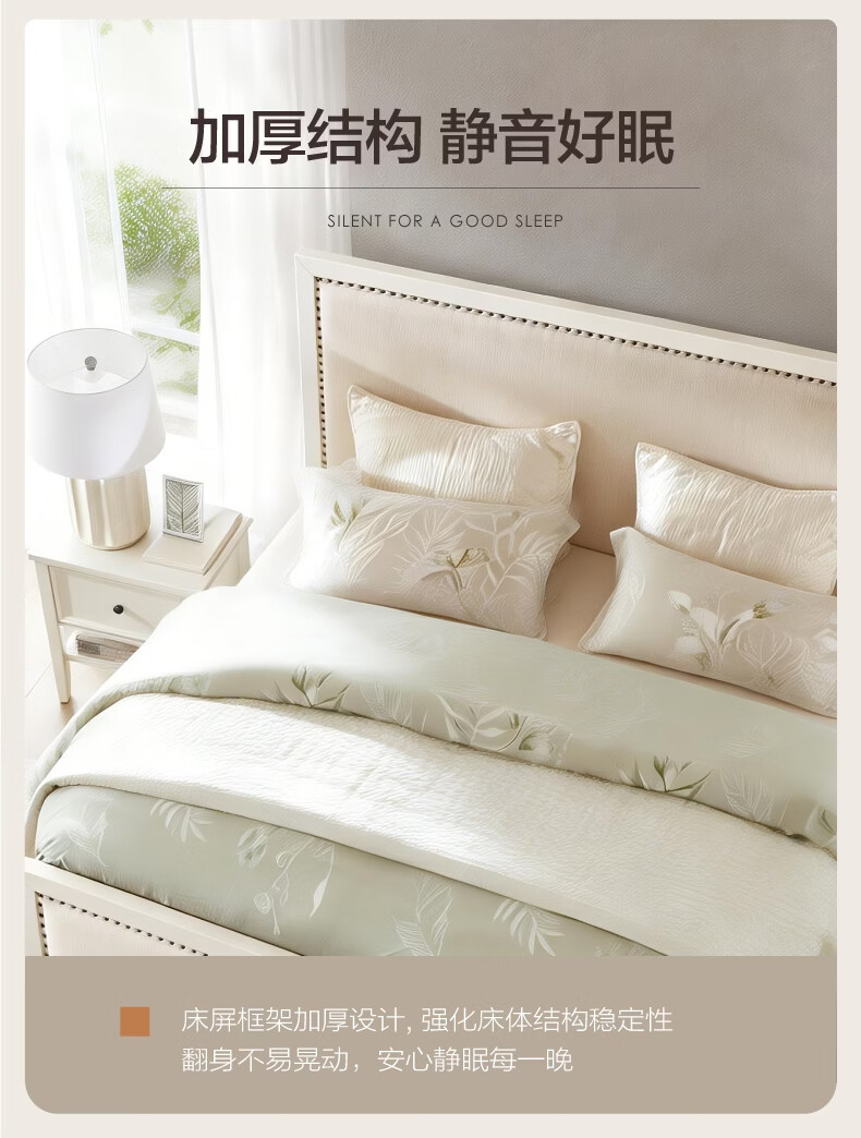 全友家居 现代简约主卧室公主床1.5x2米美式板式床双人大床高脚床婚床