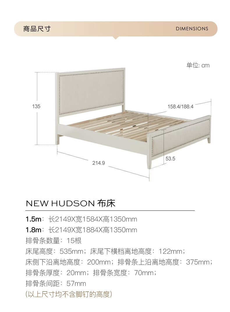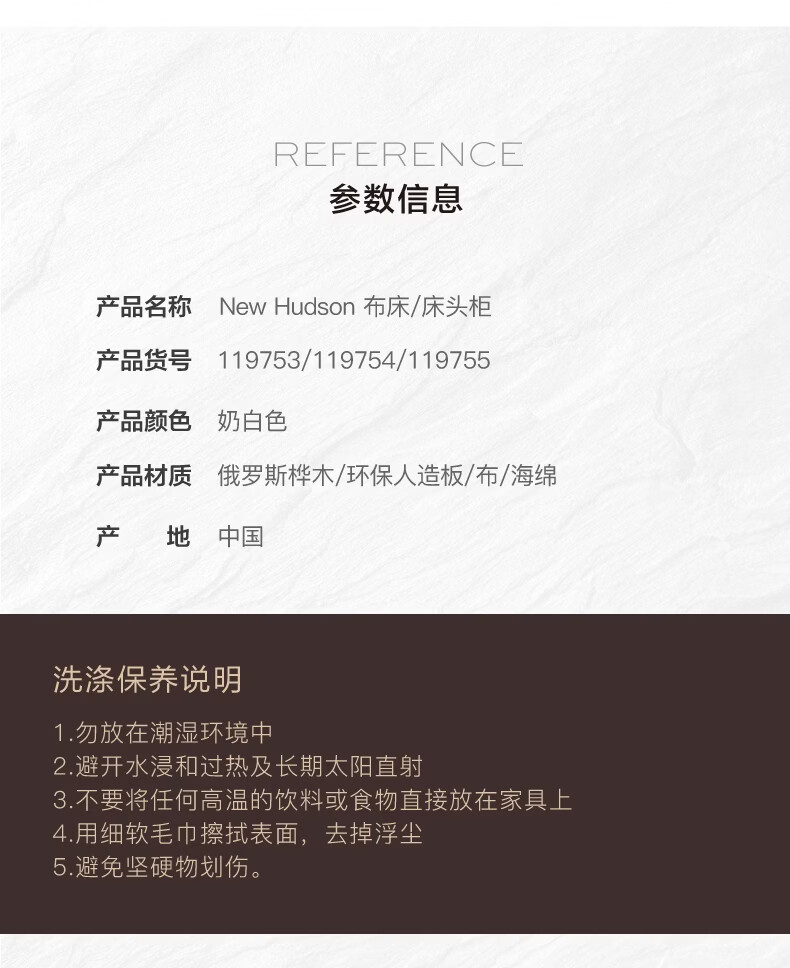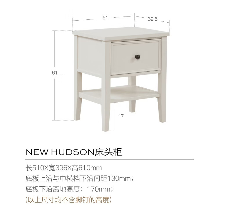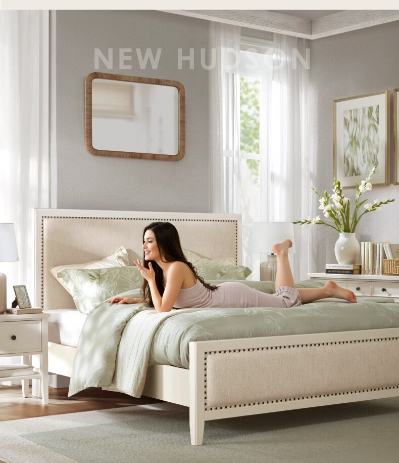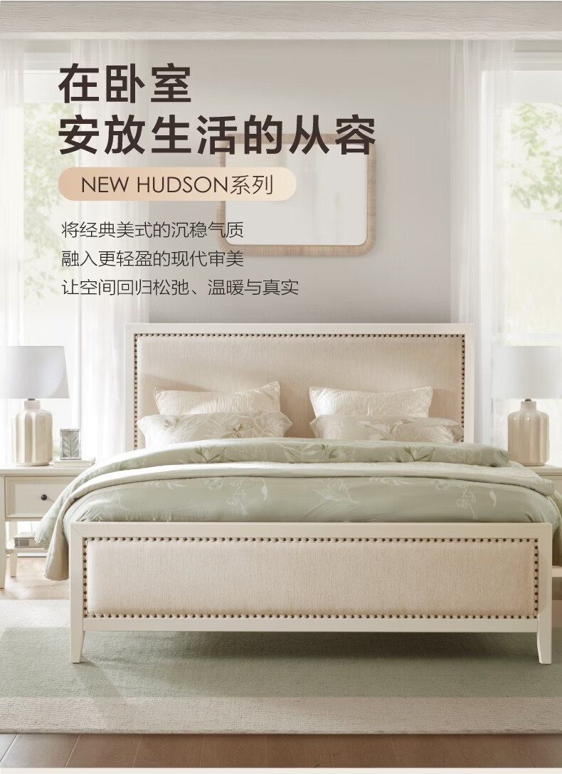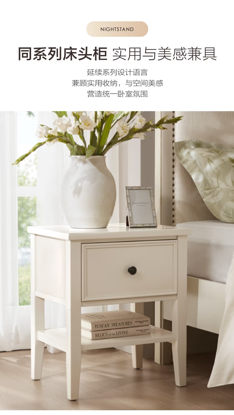 Harbor House现代美式软包实木框架床1.5m/1.8m主卧双人大床床头柜卧室家具 New Hudson-床头柜-奶白色