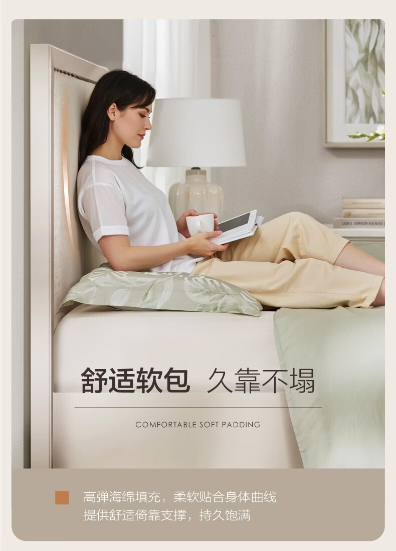 顾家家居(KUKA)轻奢风半青皮床双人床卧室羽毛填充B215【心想事橙】半青皮1.8m
