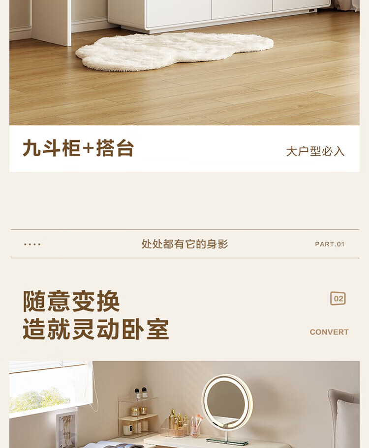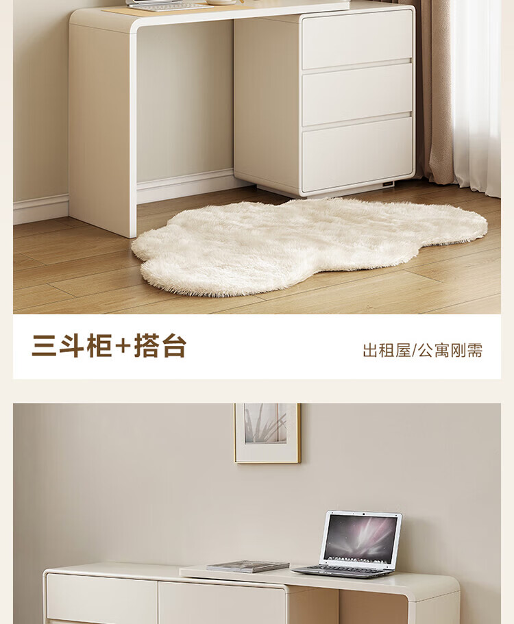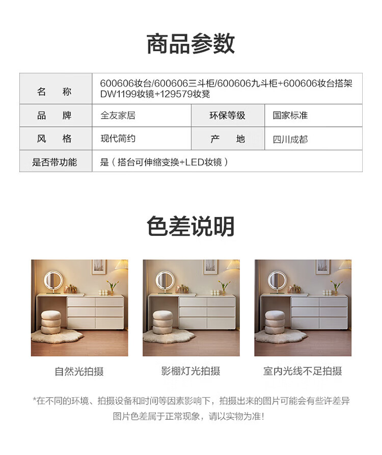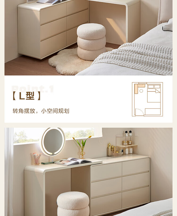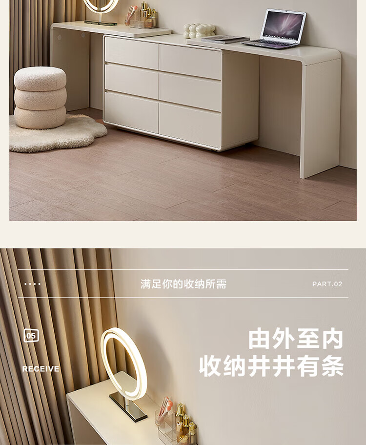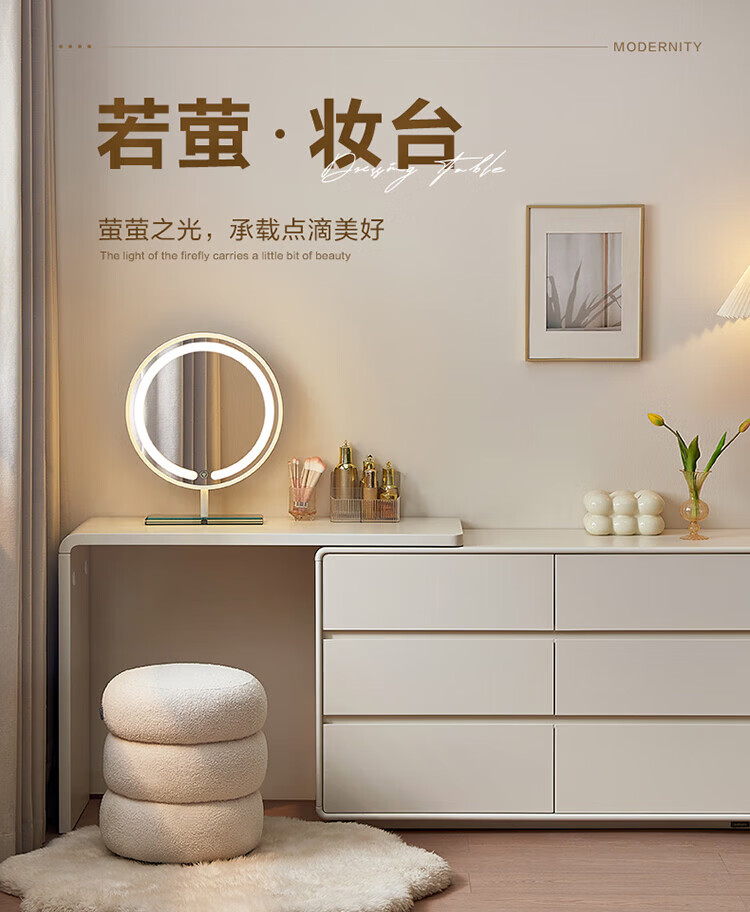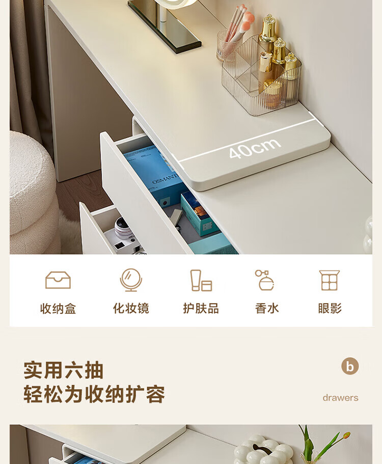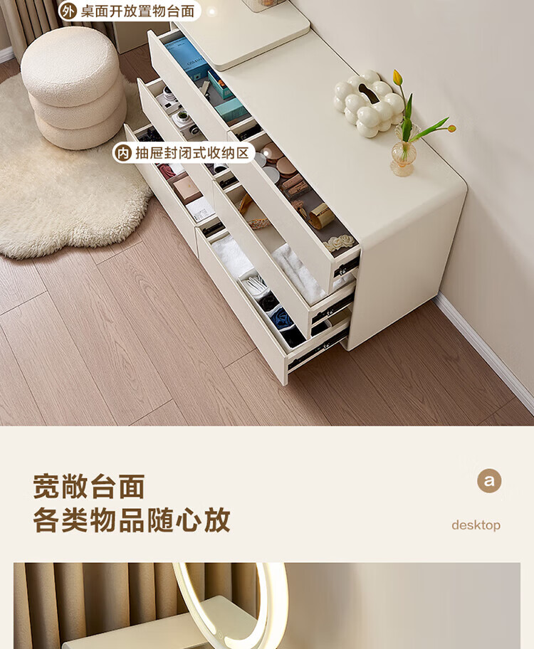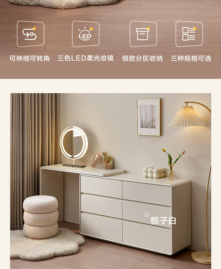 全友家居若萤伸缩转角梳妆台斗柜一体妆镜卧室家用床尾收纳柜书桌家具 三斗妆台+搭架*1 可伸缩/旋转+选配妆镜+科学分区