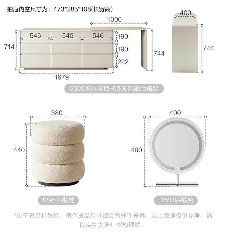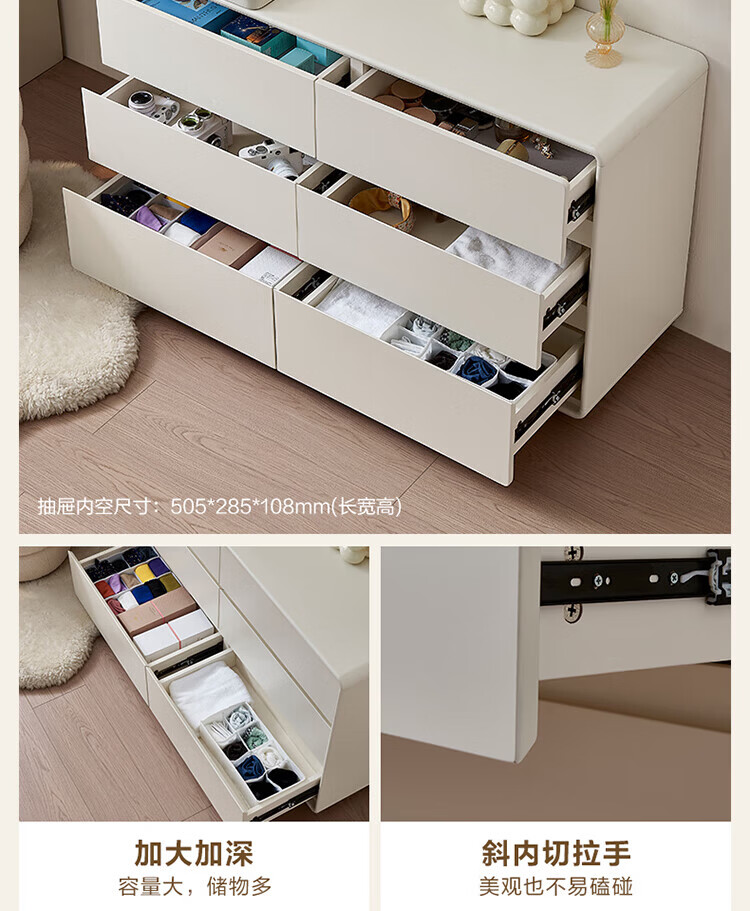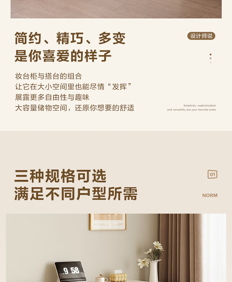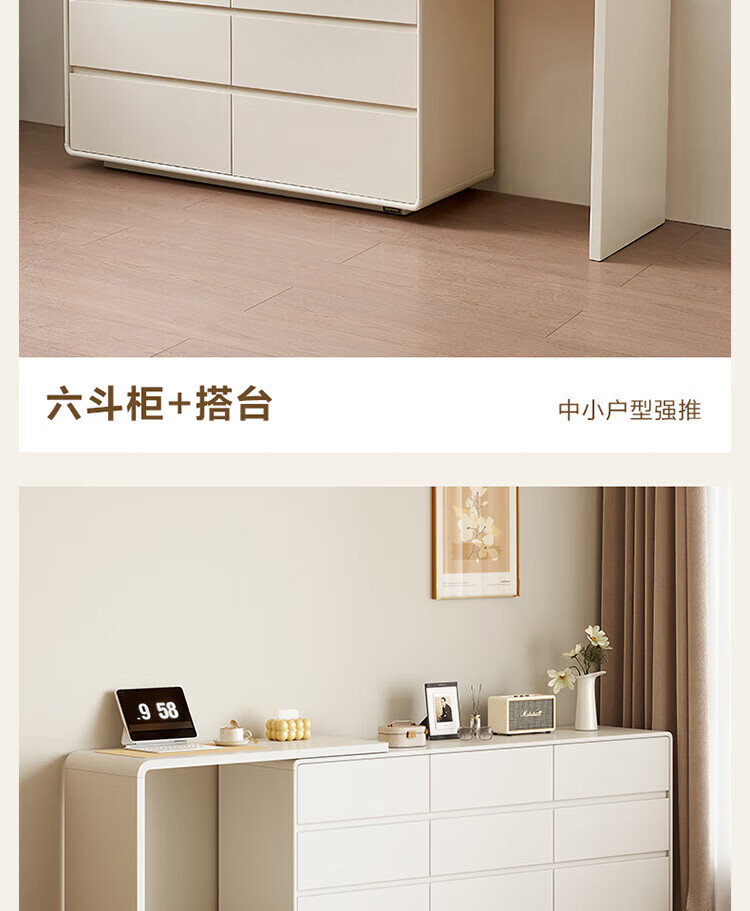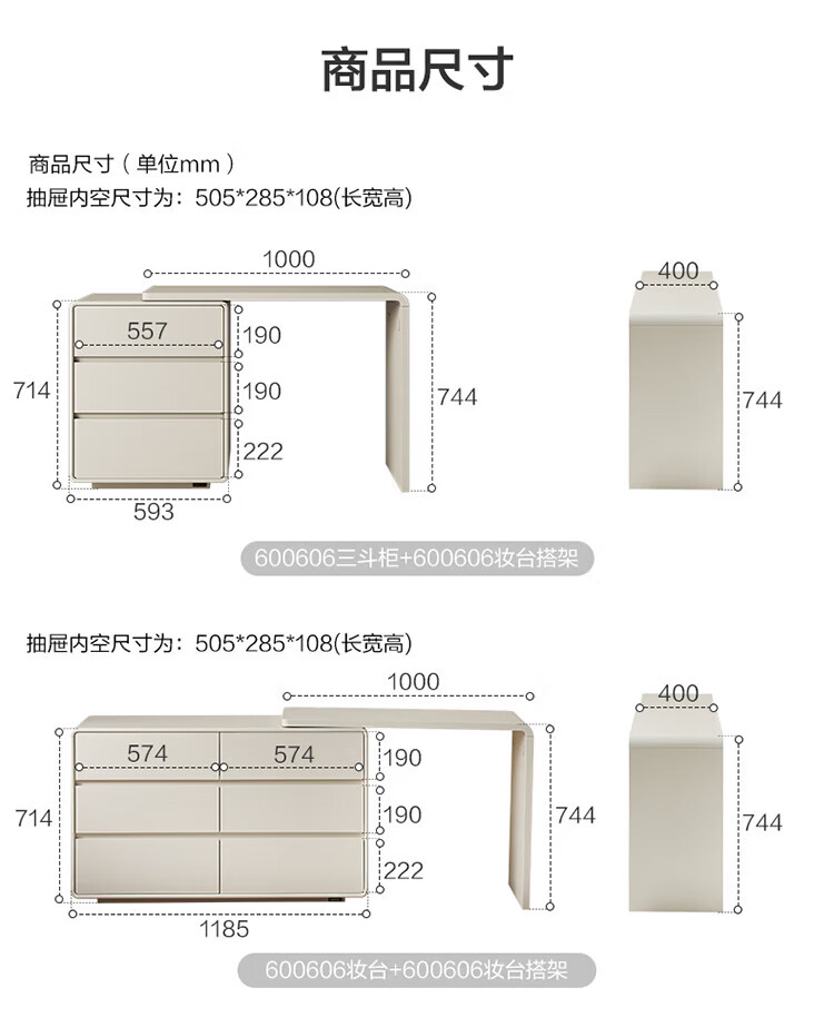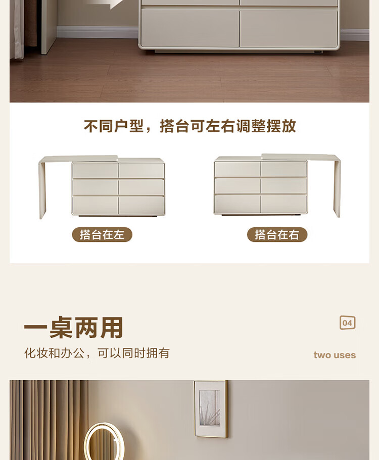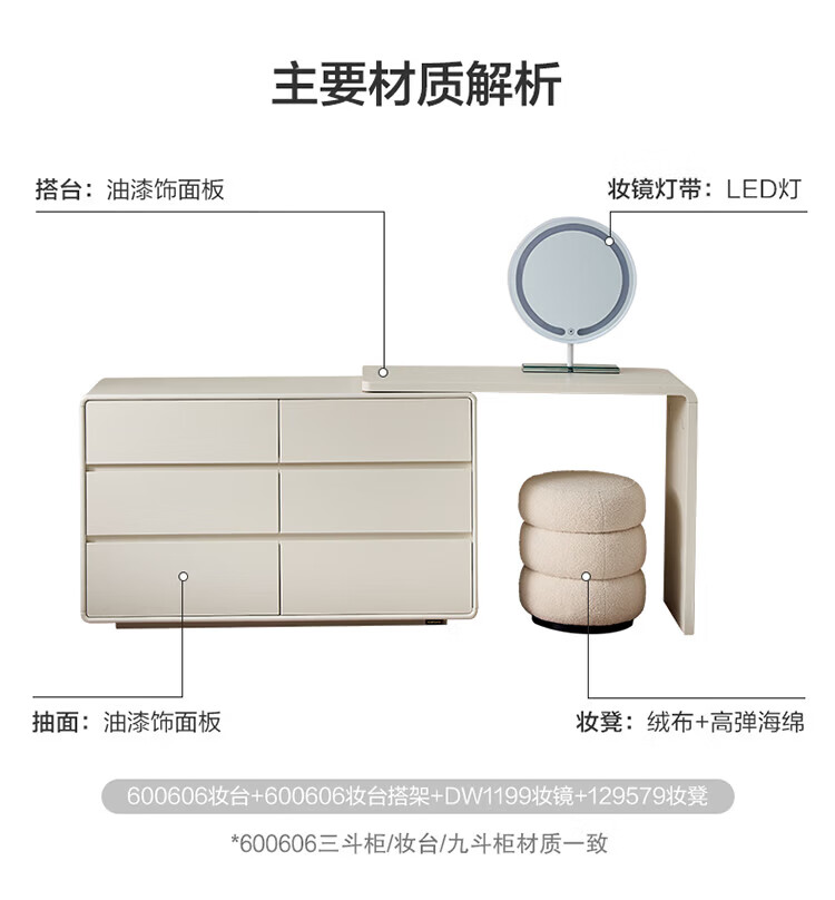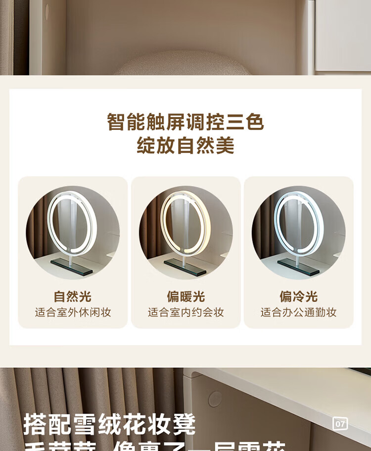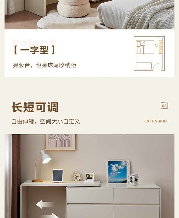 全友家居若萤伸缩转角梳妆台斗柜一体妆镜卧室家用床尾收纳柜书桌家具 三斗妆台+搭架*1 可伸缩/旋转+选配妆镜+科学分区