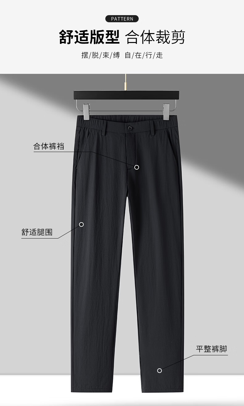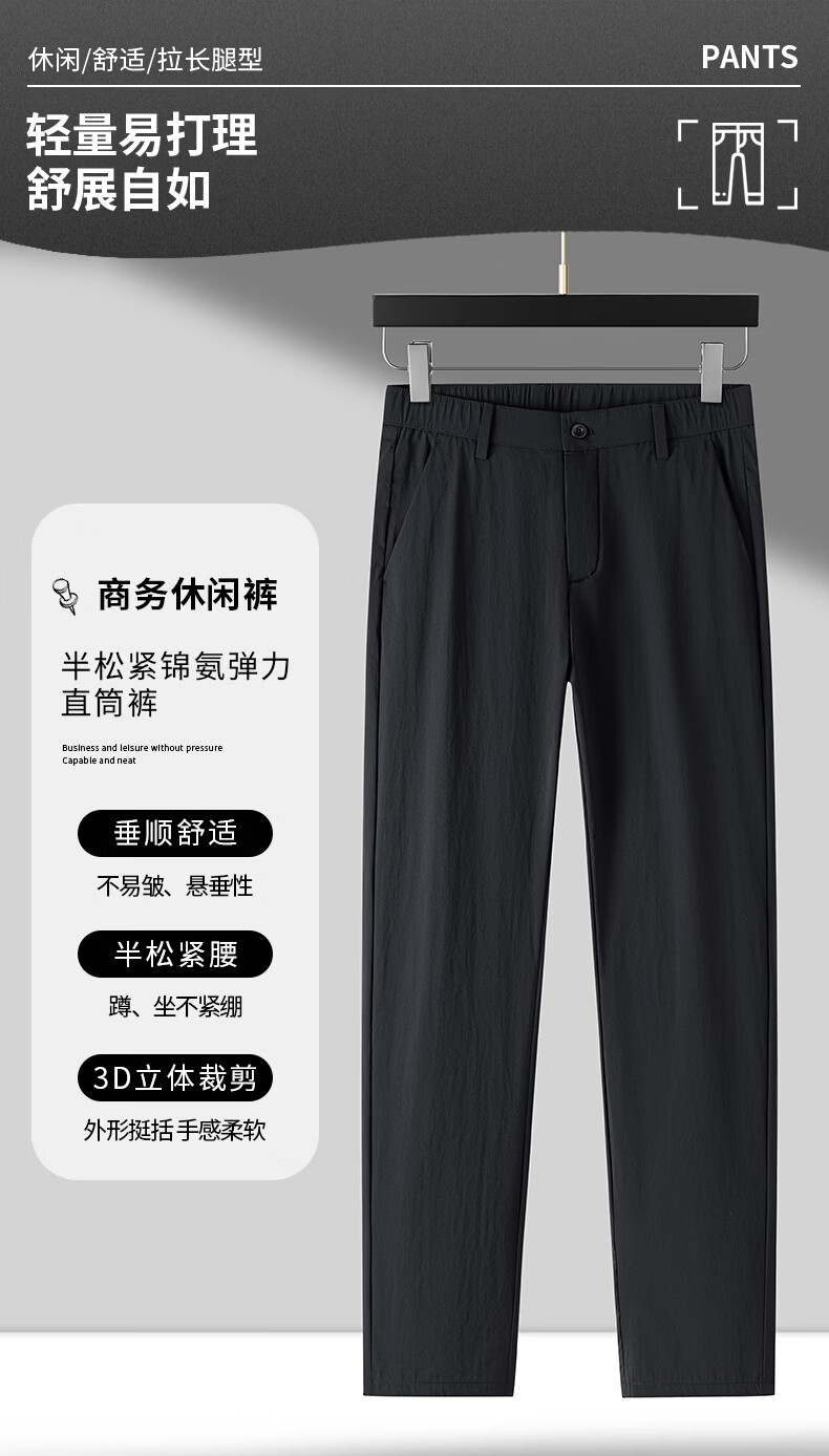 SHANSHAN杉杉【锦氨弹力】裤子2026春季新款光滑舒适柔软弹力直筒 黑色 29 /160