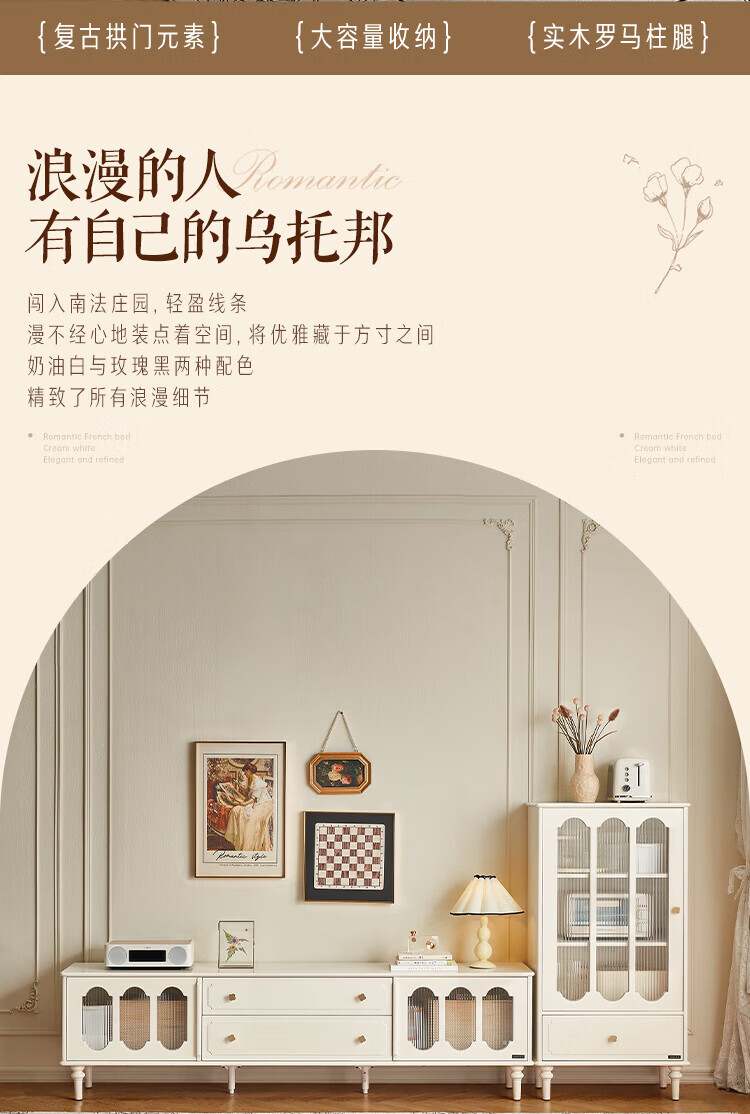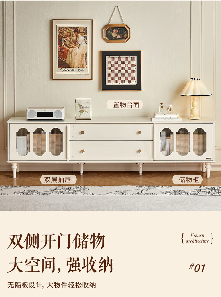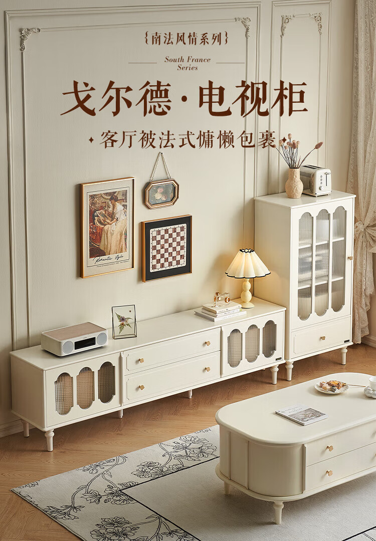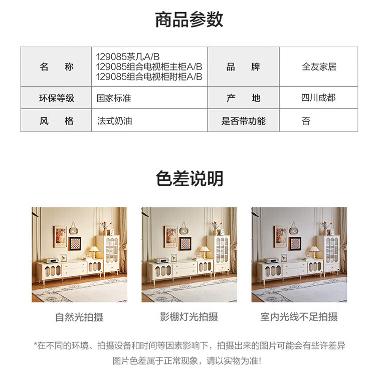 全友家居茶几电视机柜组合现代简约奶油风客厅小户型收纳储物柜子家用