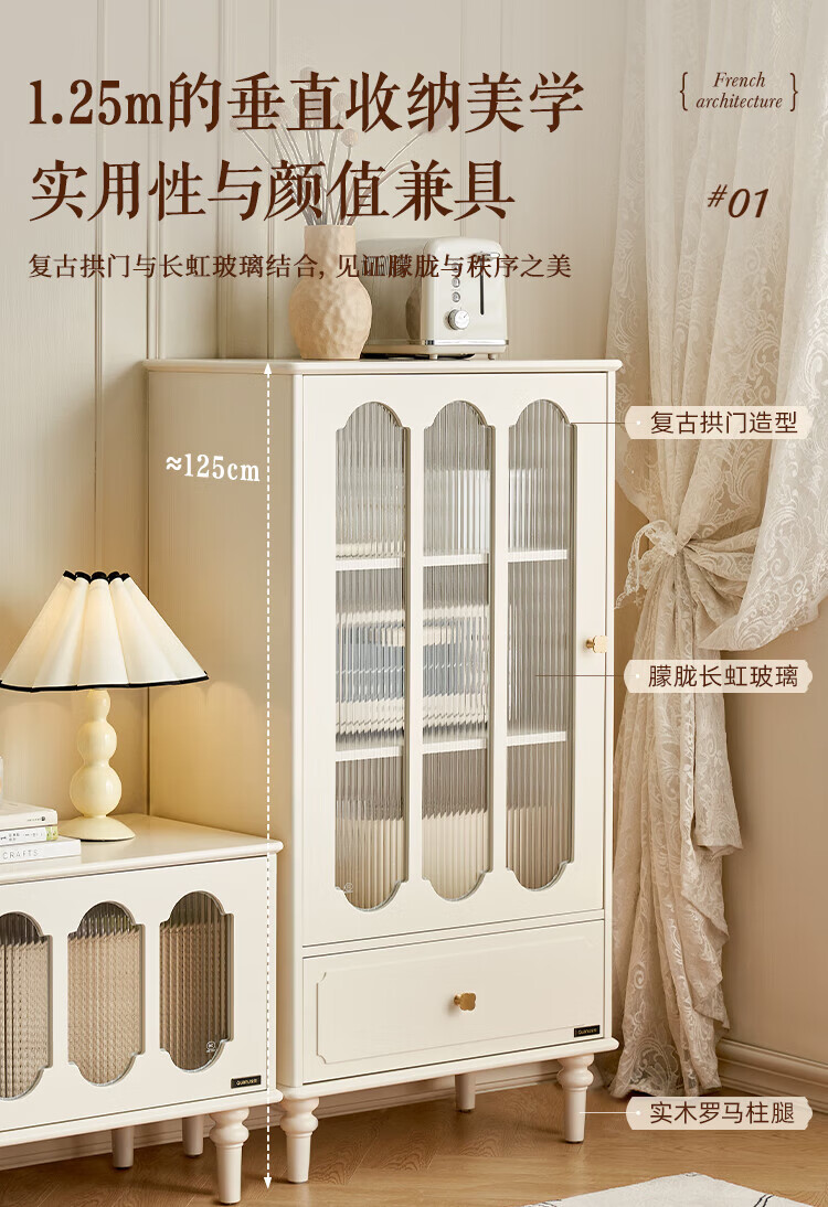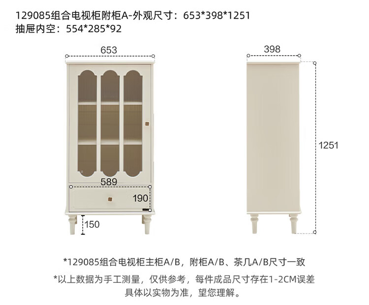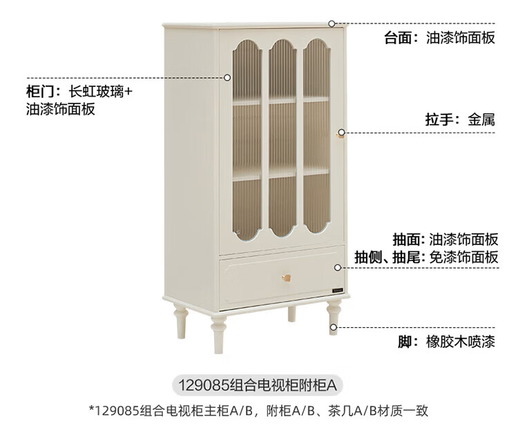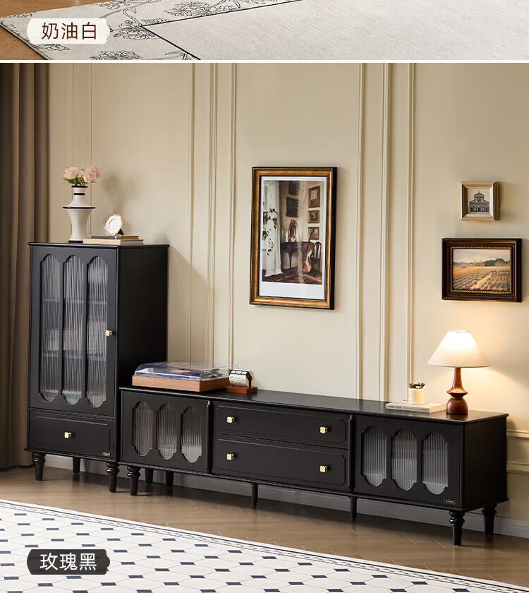 全友家居美式复古家具客厅电视柜玻璃高柜组合收纳储物置物柜沙发边几 玫瑰黑|玻璃高柜