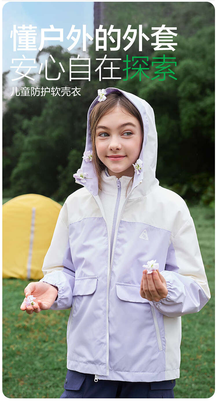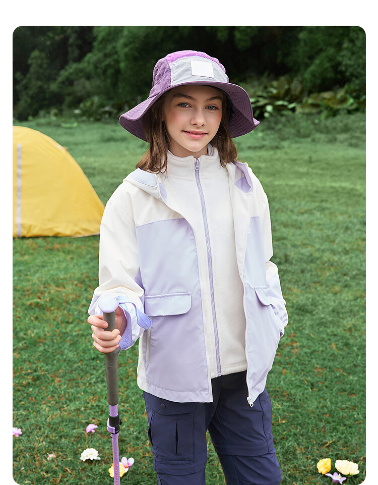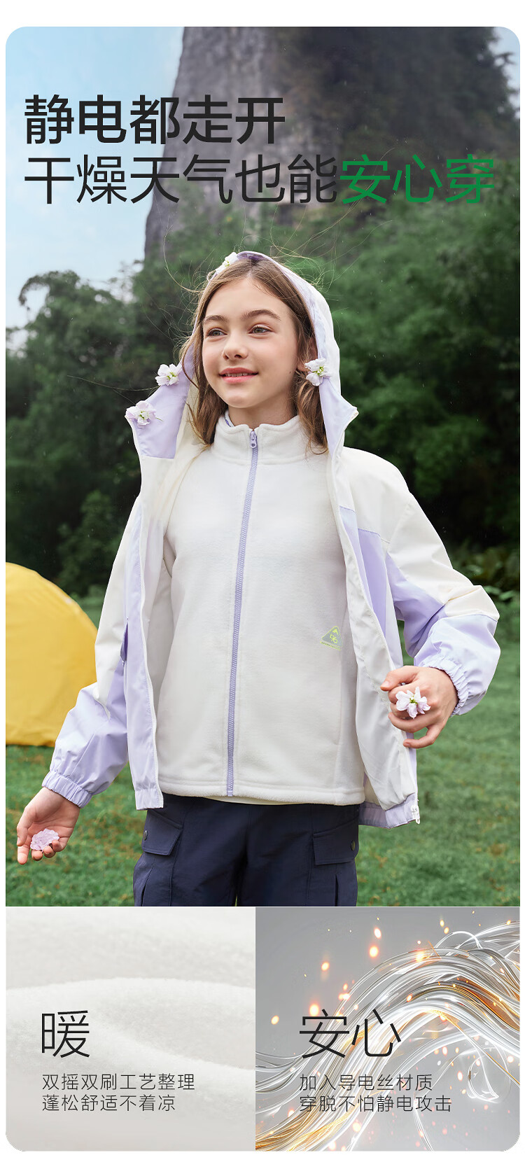 巴拉巴拉童装女童外套儿童上衣2026新款春装两件套三防抗静电摇粒绒软壳衣 紫色调00377 150