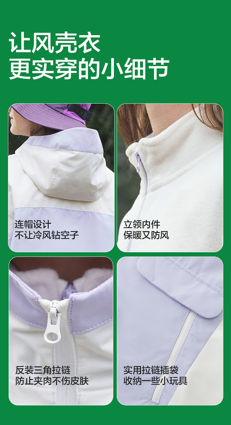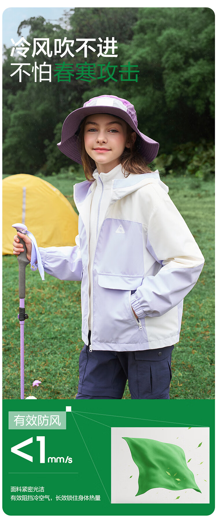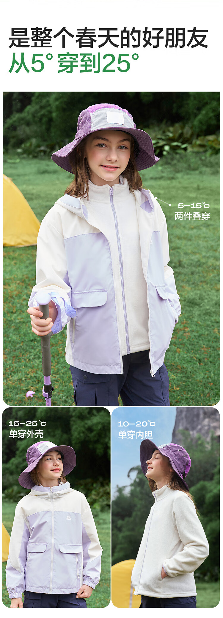 巴拉巴拉童装女童外套儿童上衣2026新款春装两件套三防抗静电摇粒绒软壳衣 紫色调00377 150