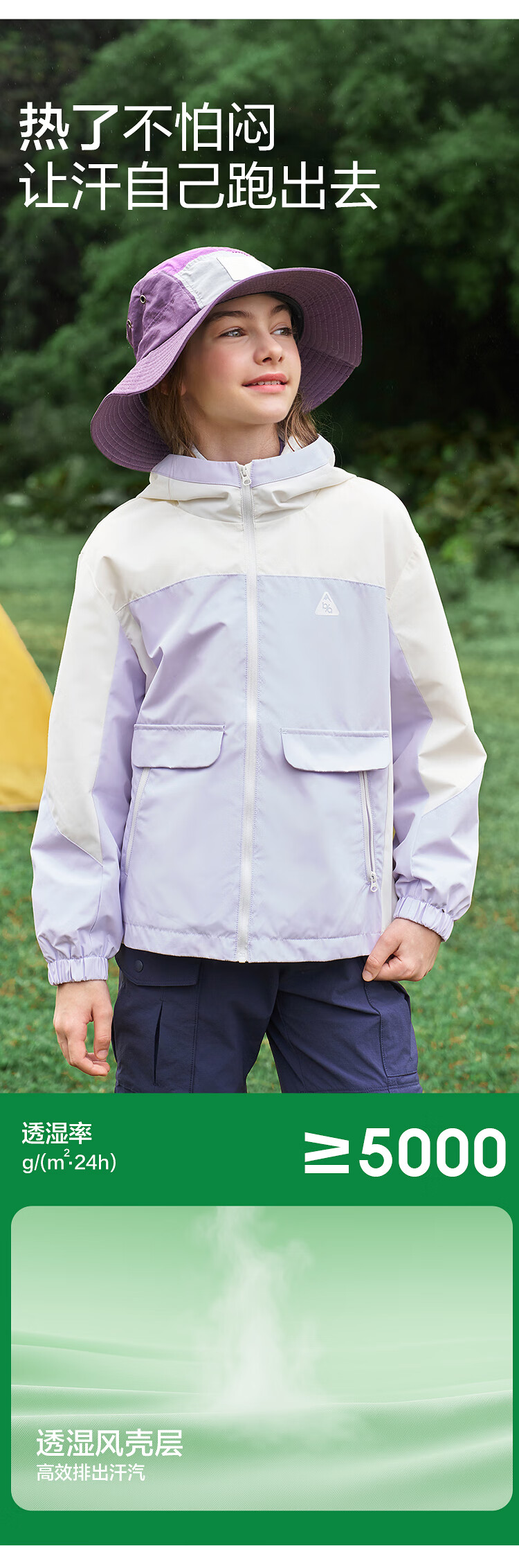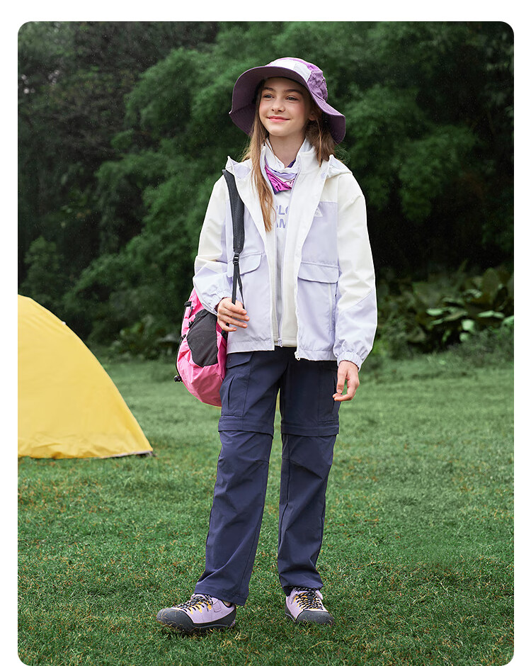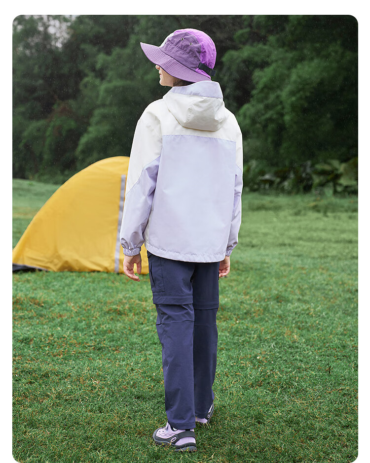 淘町女童山系套装春秋中大童户外运动户外服裤子拼接两件套 灰紫色 上衣+长裤套装 120