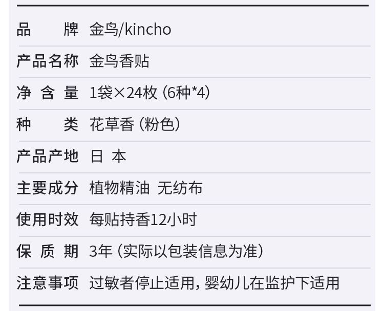 KINCHO金鸟植物精油香贴户外随身婴儿儿童成人防护贴花草香24贴