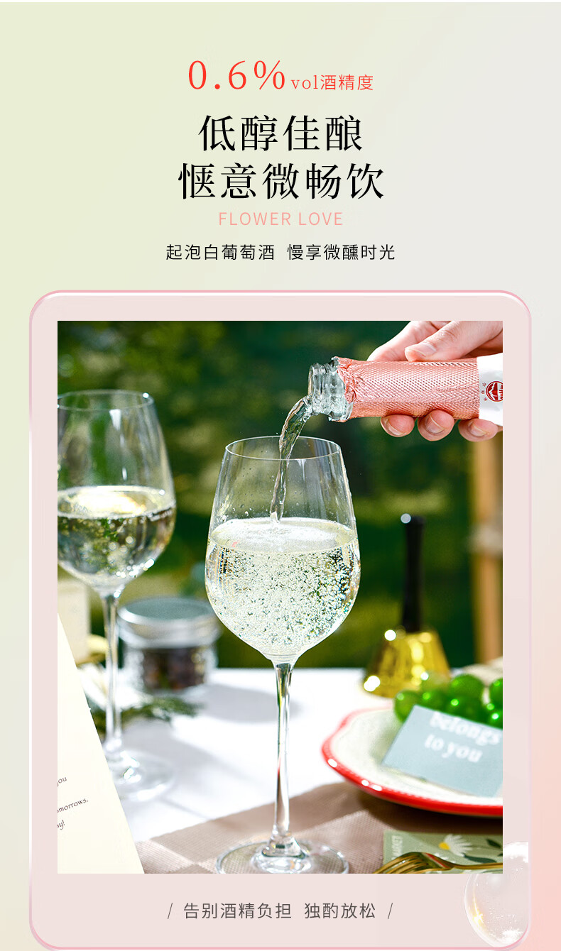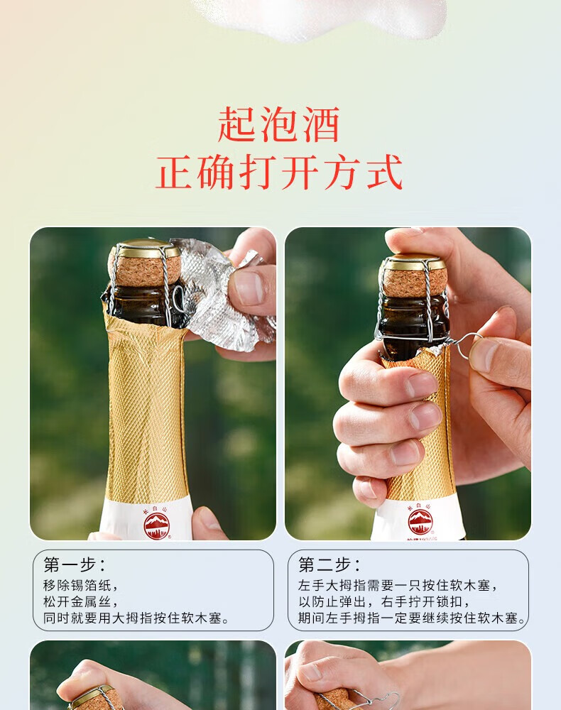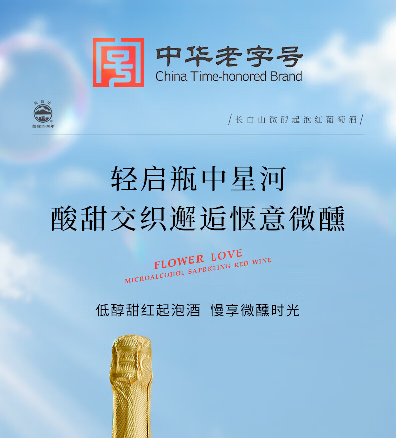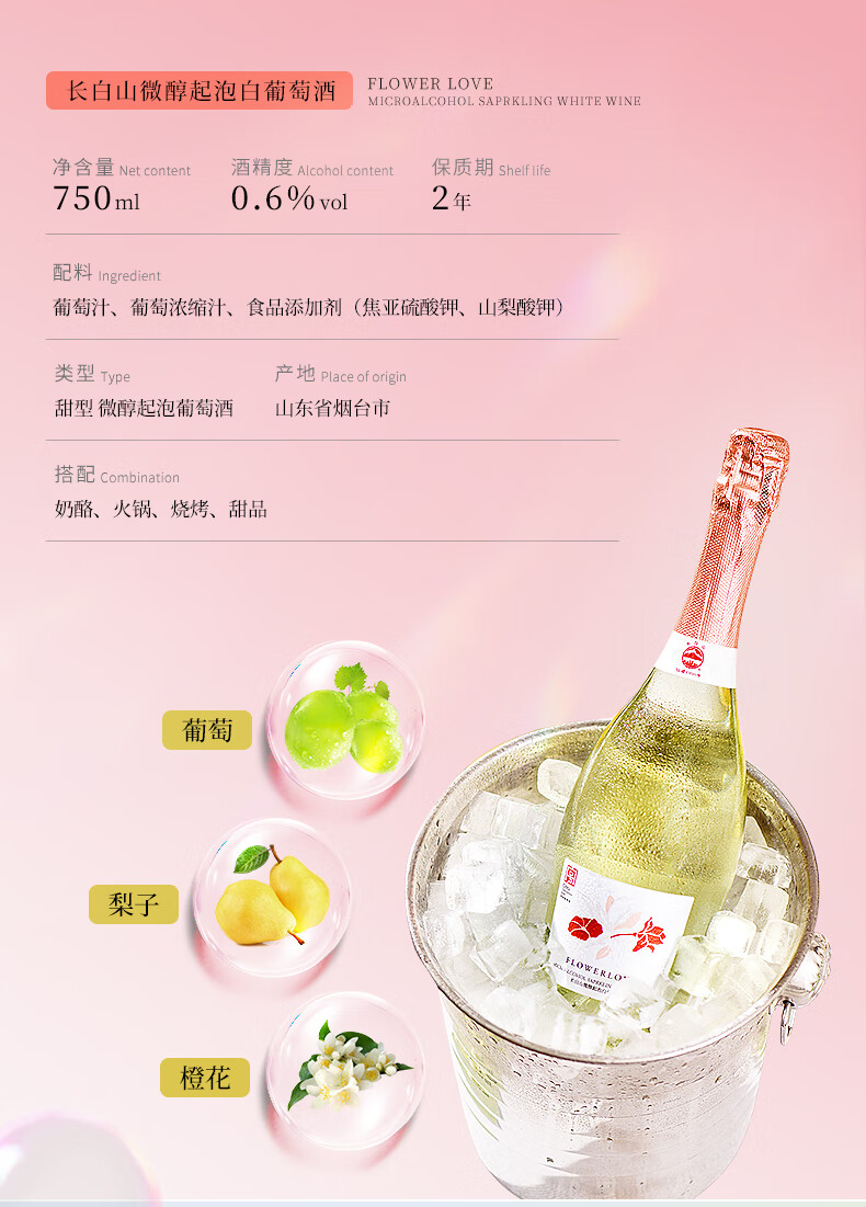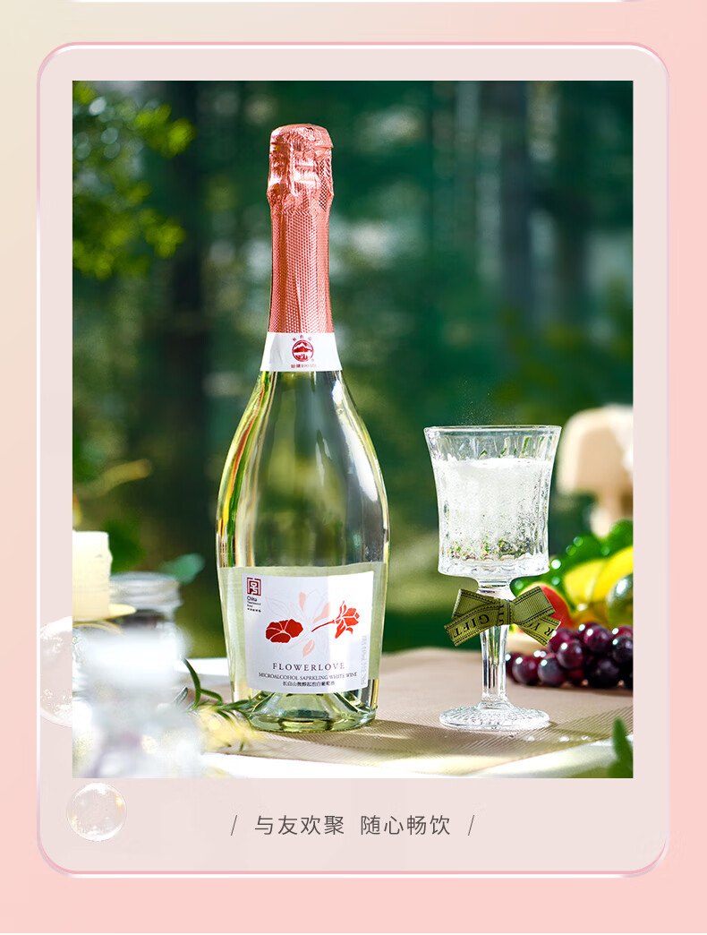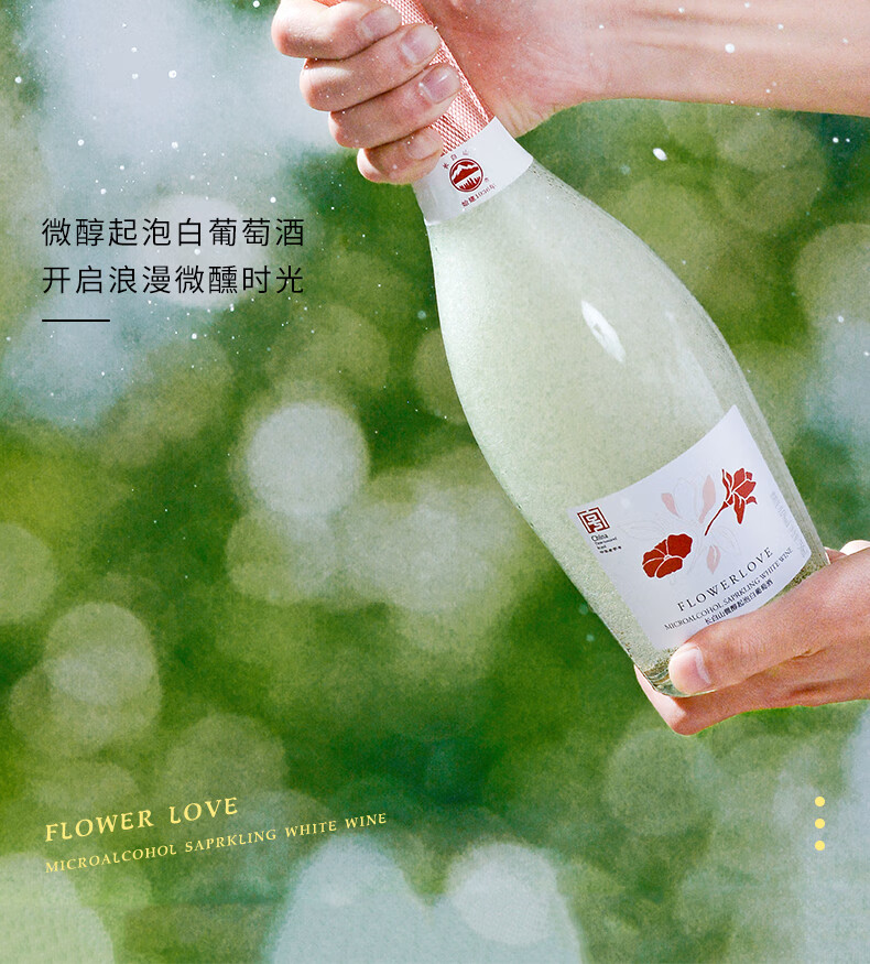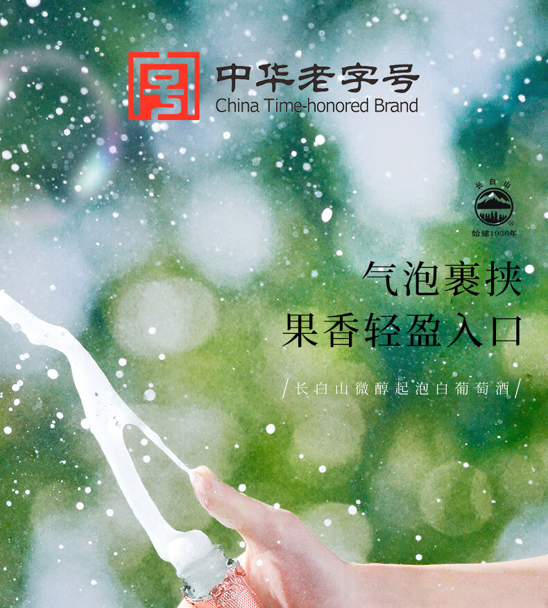长白山气泡酒红酒白葡萄酒果酒起泡酒甜酒微醺适合女士喝的酒节日礼品 微醇起泡白葡萄酒750ml