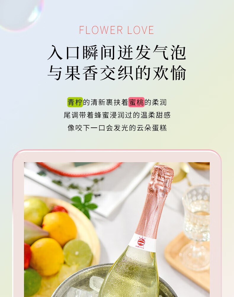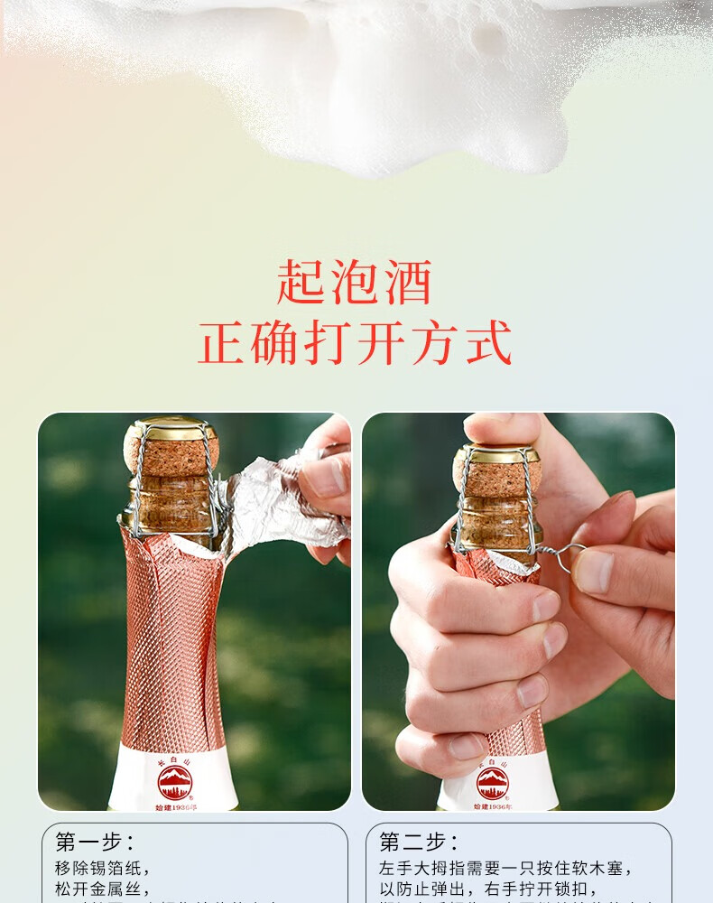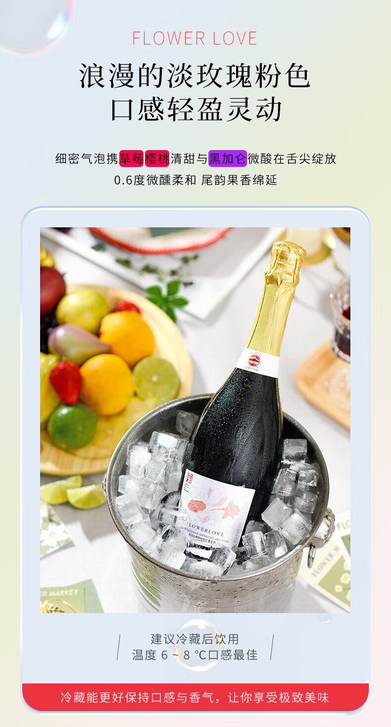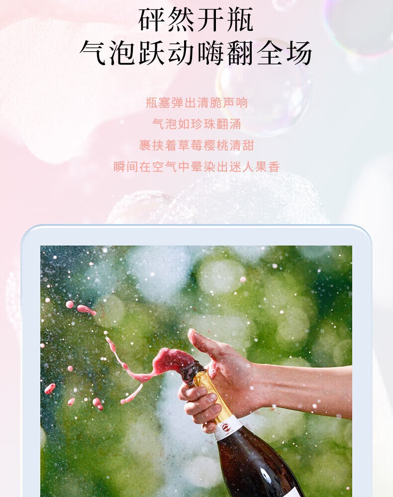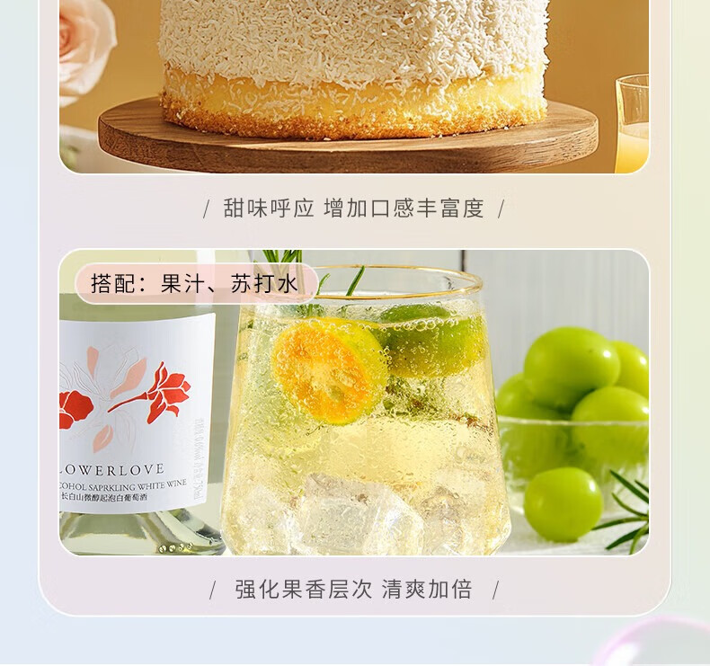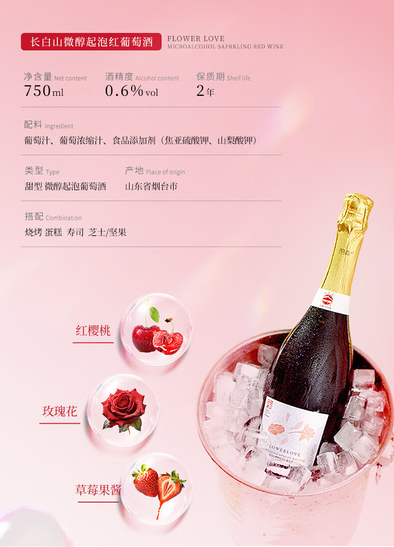 长白山气泡酒红酒白葡萄酒果酒起泡酒甜酒微醺适合女士喝的酒节日礼品 微醇起泡白葡萄酒750ml