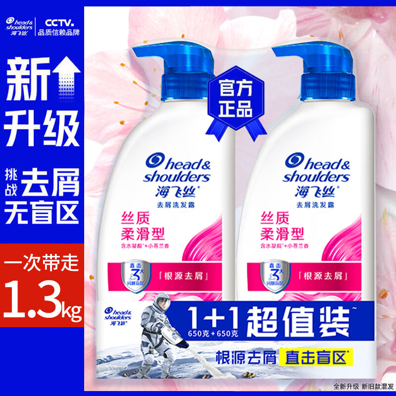 海飞丝【双11开门红】去屑洗发露男女通用丝质柔滑型头膏洗发露洗发液 【超值装】丝质柔滑洗发水650g*2