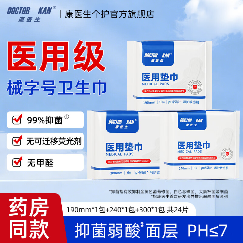 康医生医用级卫生巾安睡裤经期用组合装日夜用姨妈巾安心裤护垫套装 卫生巾组合190*1包+240*1包+300*1包