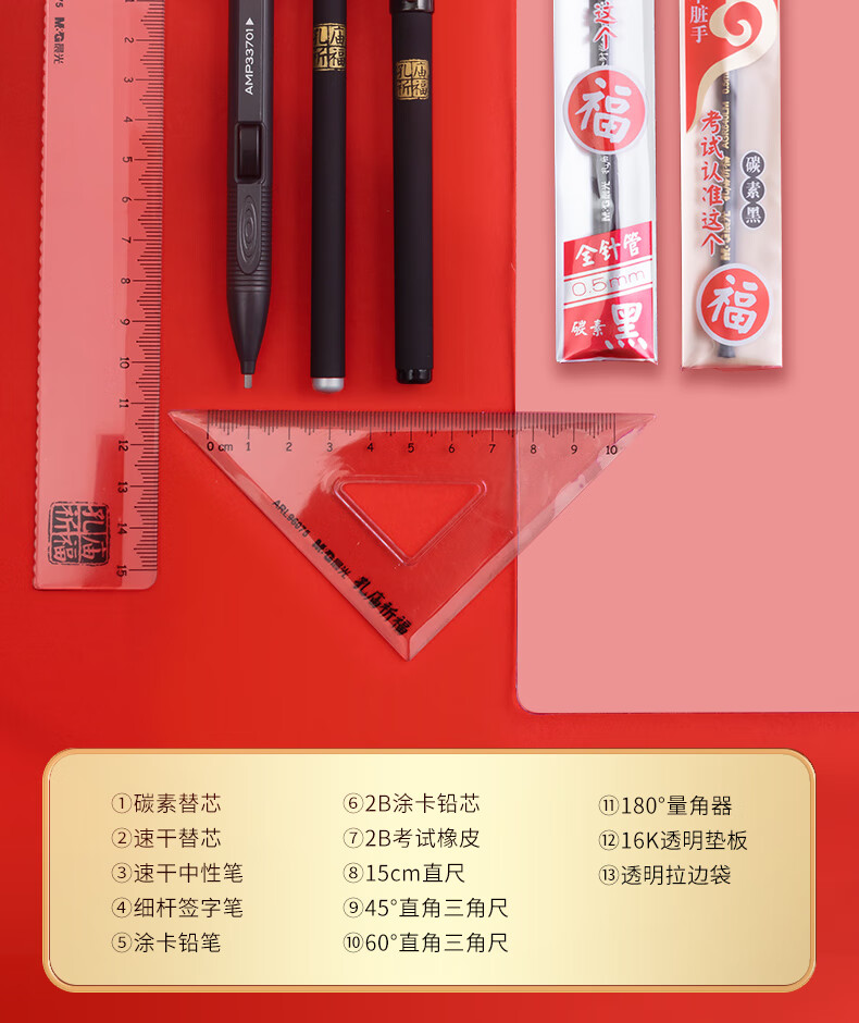 晨光(M&G)文具考试套装高考考试专用文具套装透明必备高考中考答题卡笔涂卡笔2b铅笔研究生考研文具套装 【金榜题名】考试15件套(HAGP1456)