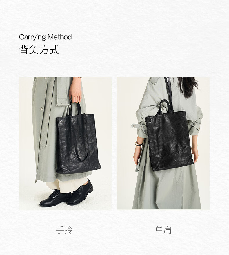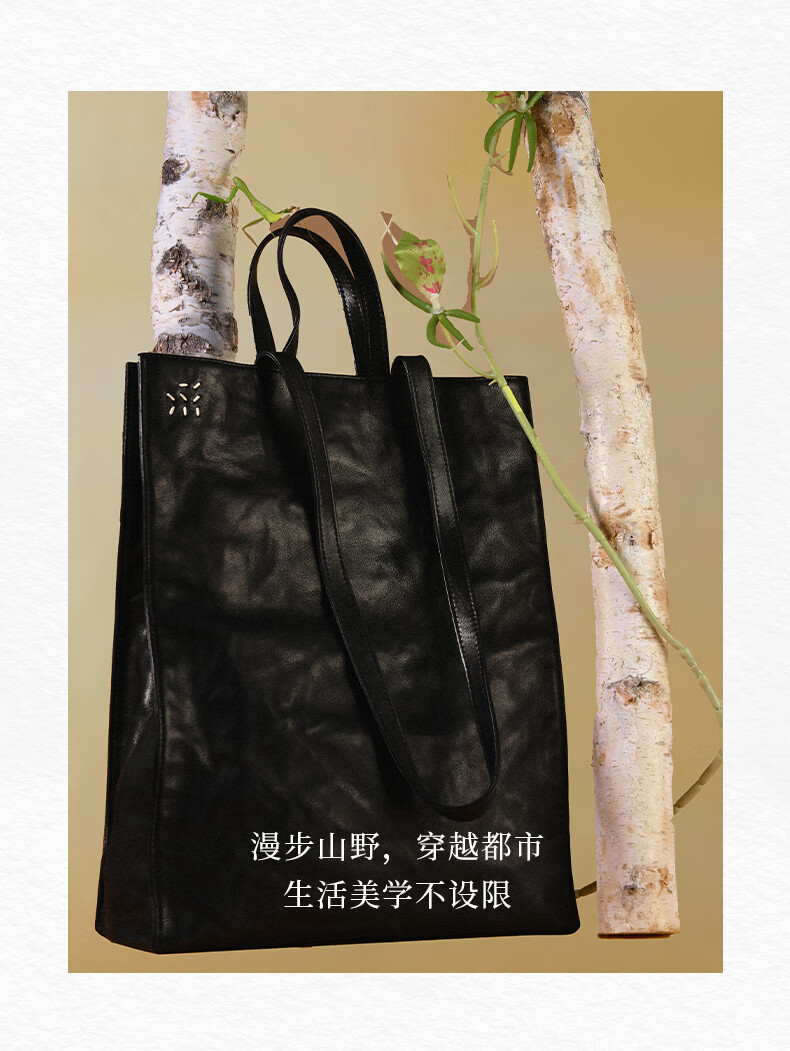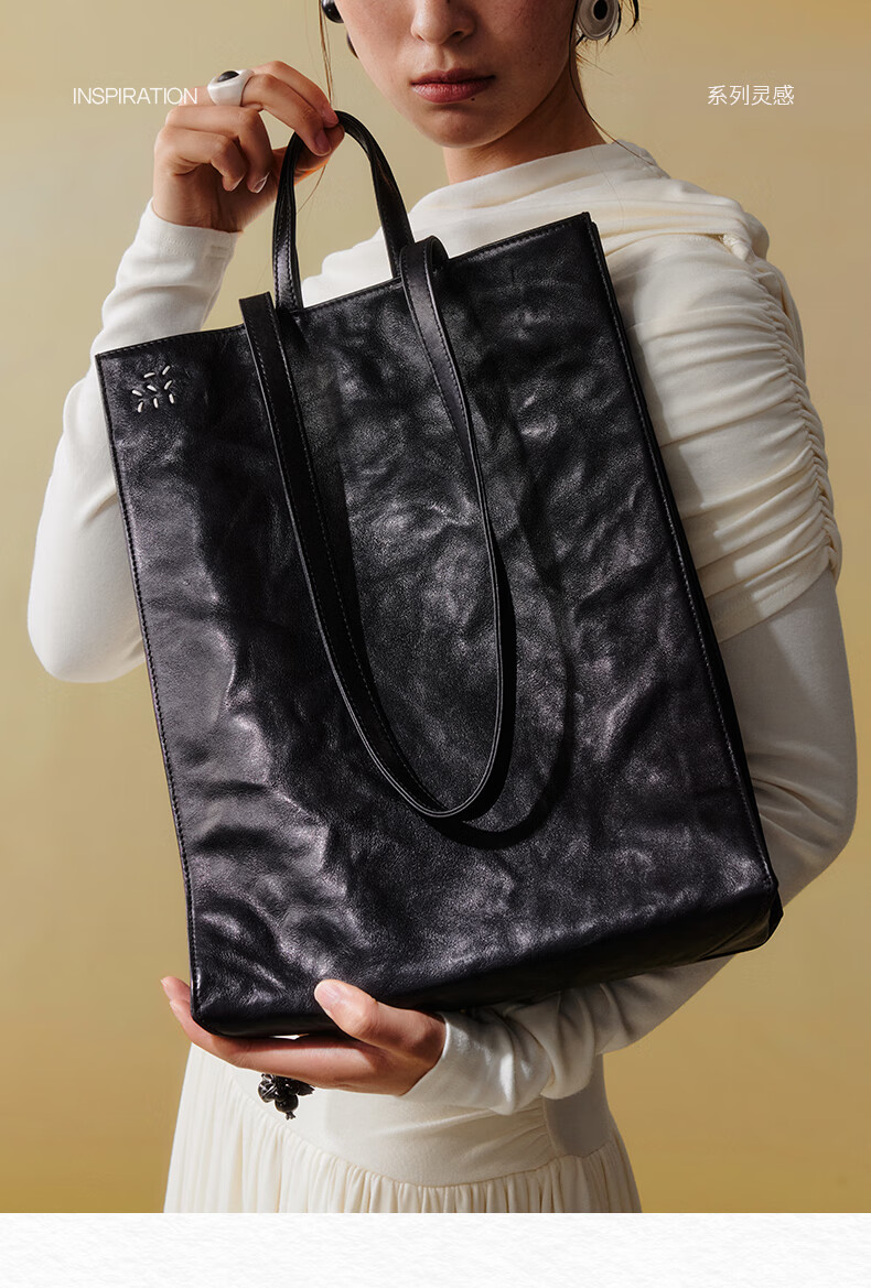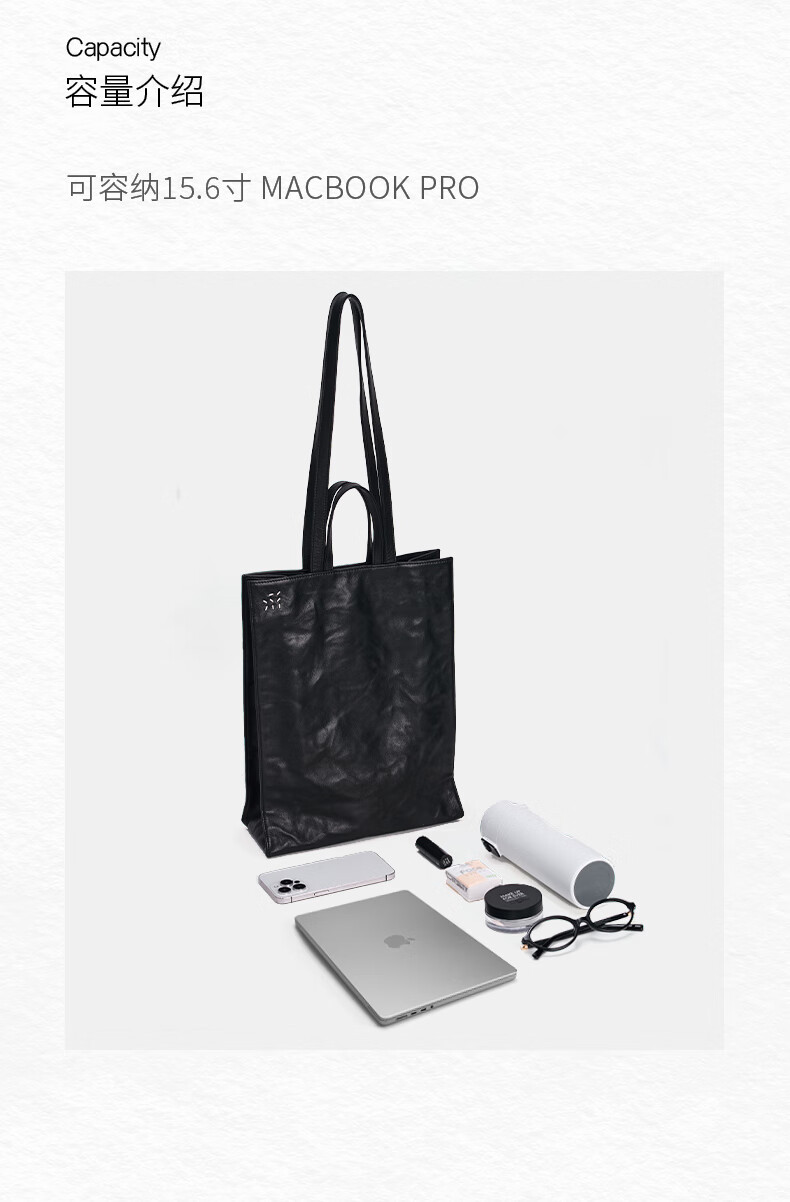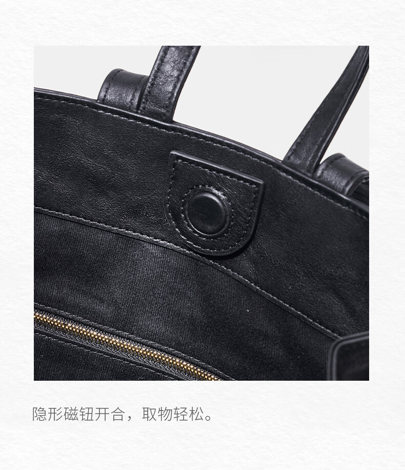 直见【38节礼物】浔游电脑包植鞣牛皮大容量通勤托特斜挎手提女包包 墨黑色 15.6英寸