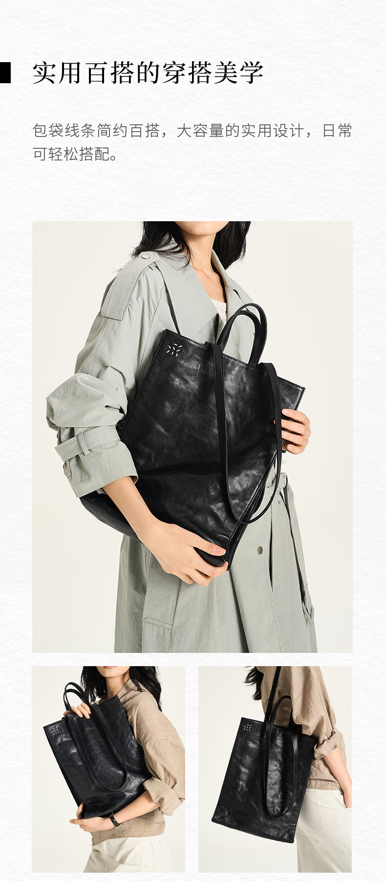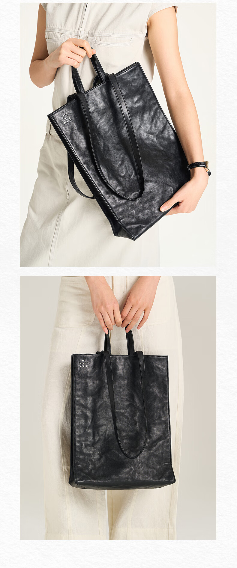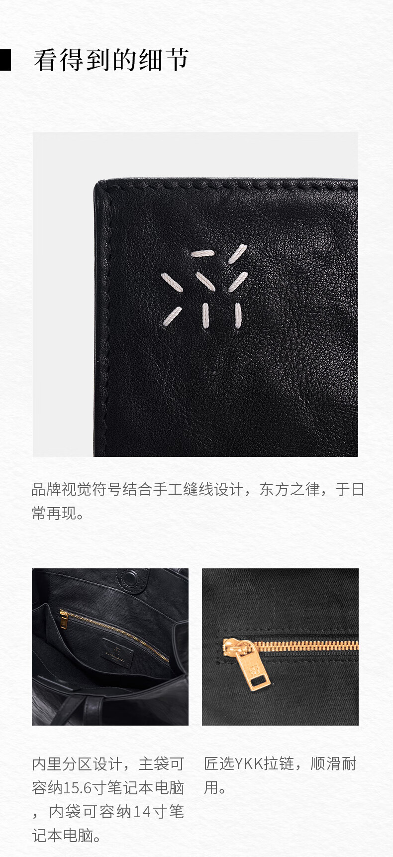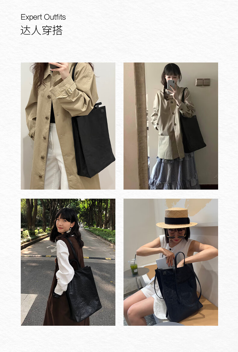直见【38节礼物】浔游电脑包植鞣牛皮大容量通勤托特斜挎手提女包包 墨黑色 15.6英寸