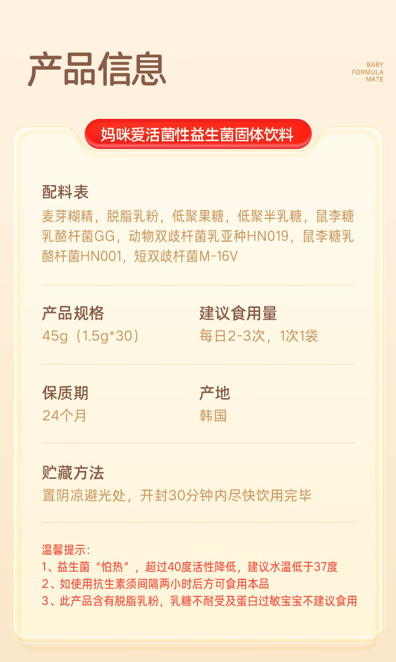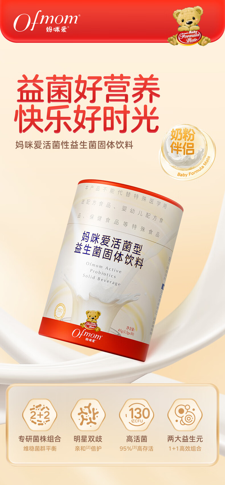 妈咪爱(Ofmom )益生菌肠胃益生菌呵护肠道活性益生菌固体饮料 焕新益生菌 30支*1桶