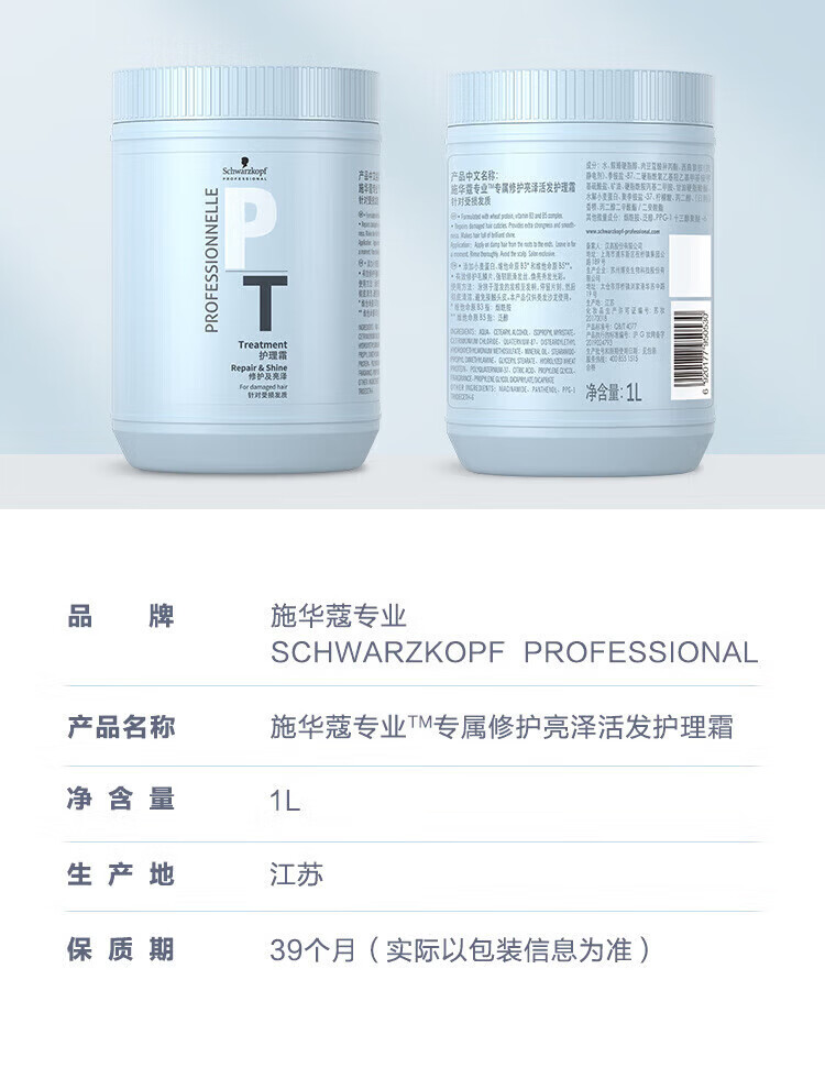 施华蔻专业(Schwarzkopf Professional)施华蔻 PT修护亮泽发膜 受损护发 柔顺防毛糙 1000ml×4 正品 亮泽活发护理霜1000ml【4瓶装】