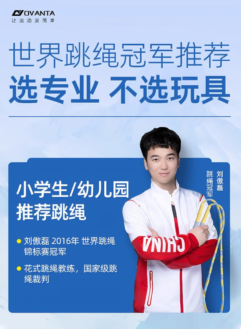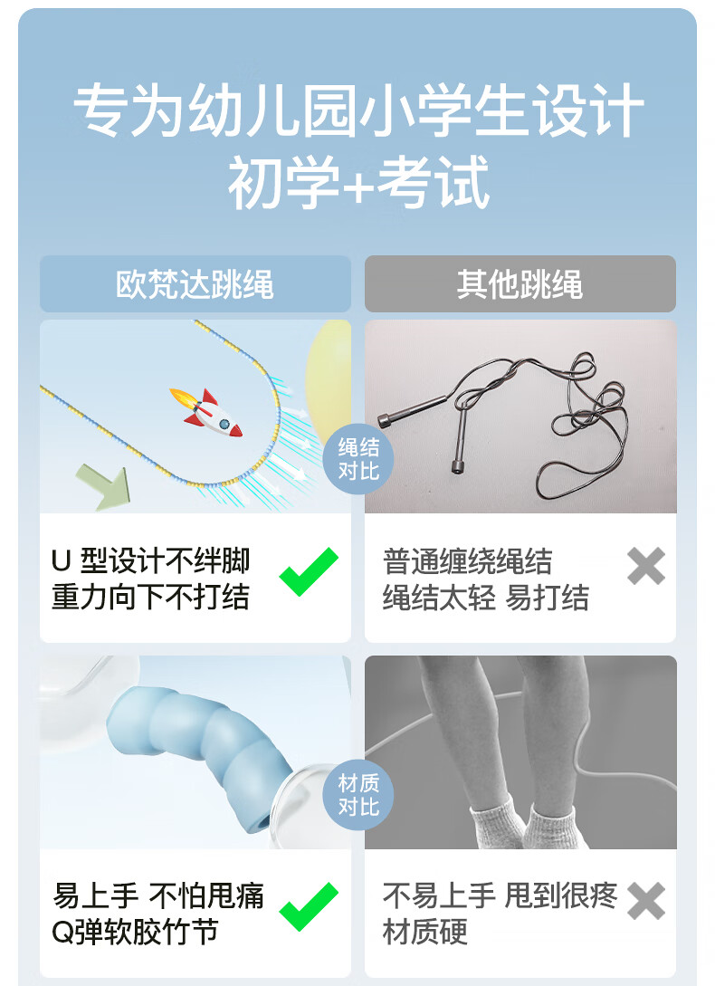 欧梵达竹节跳绳儿童幼儿园小学生一年级初学者专用不打结绳4-5-6岁 【老师推荐/精美竹节】-樱花粉 小号-2.2米【身高1.2M以下】