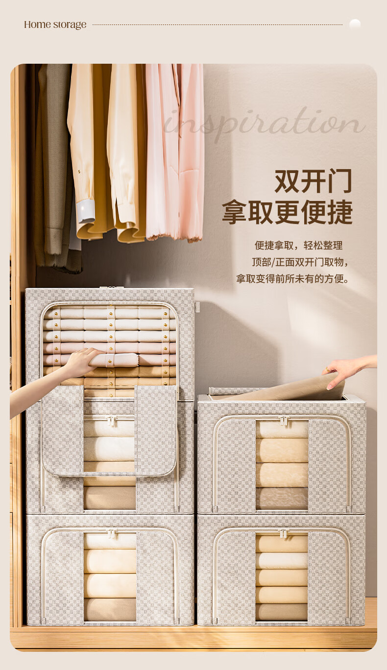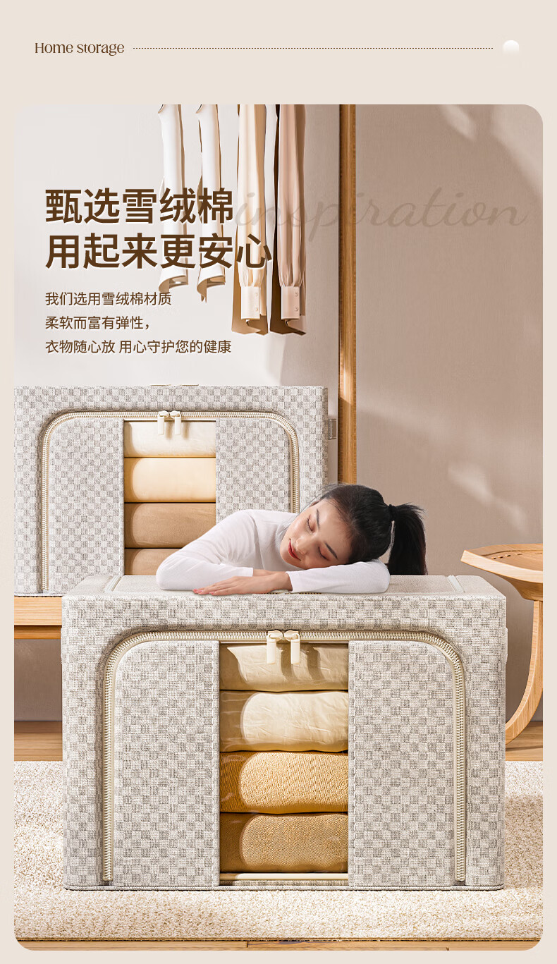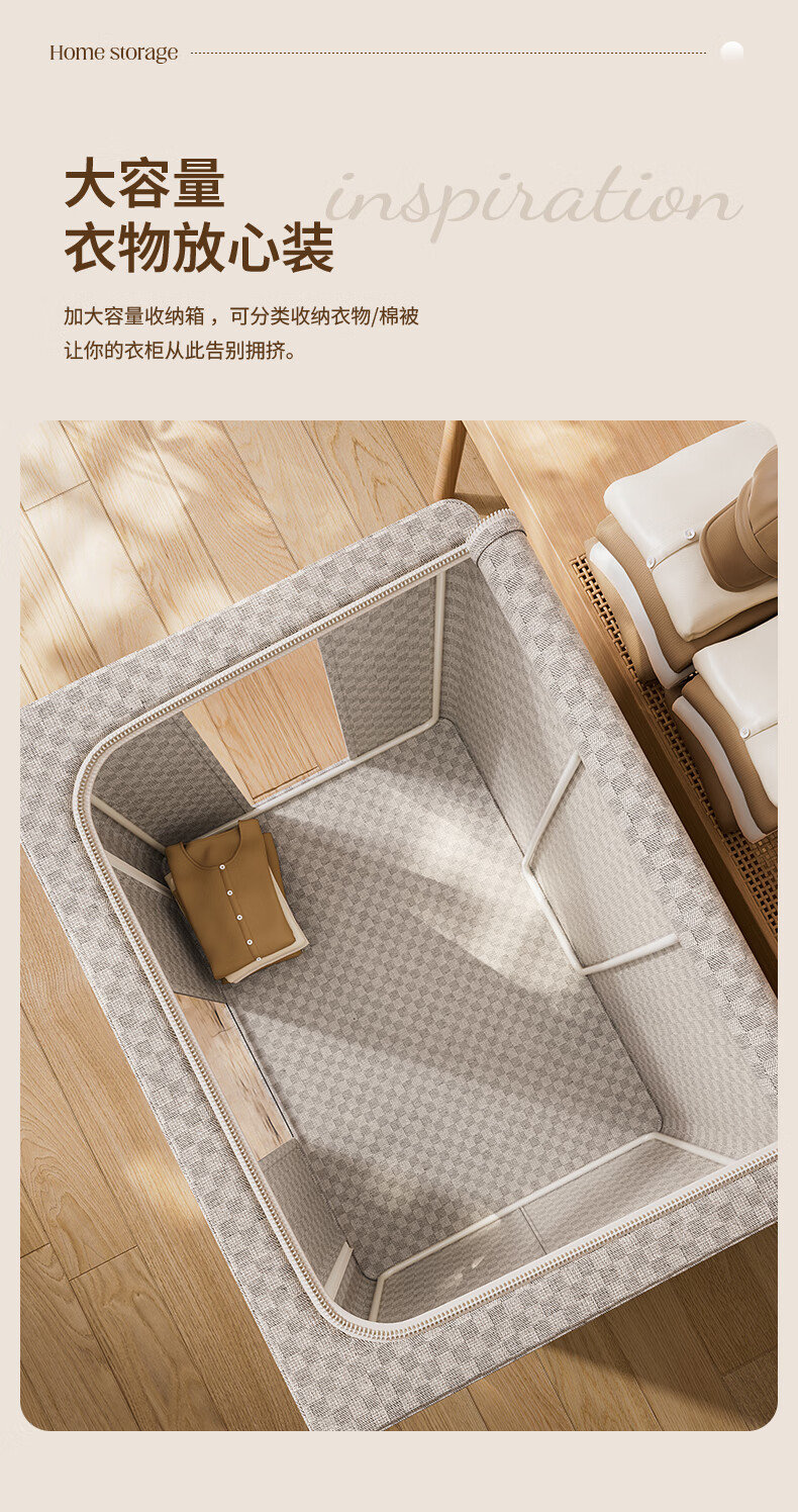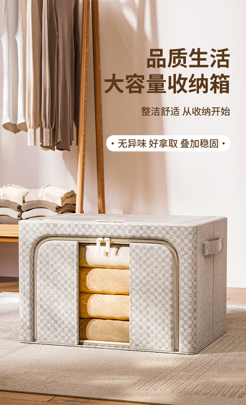 享乐屋可水洗百纳箱大号加厚衣服收纳箱布艺整理棉被大容量透明防霉防潮 6个装 新疆棉面料 5.0MM钢架 升级抗菌款 66升 50*40*33cm