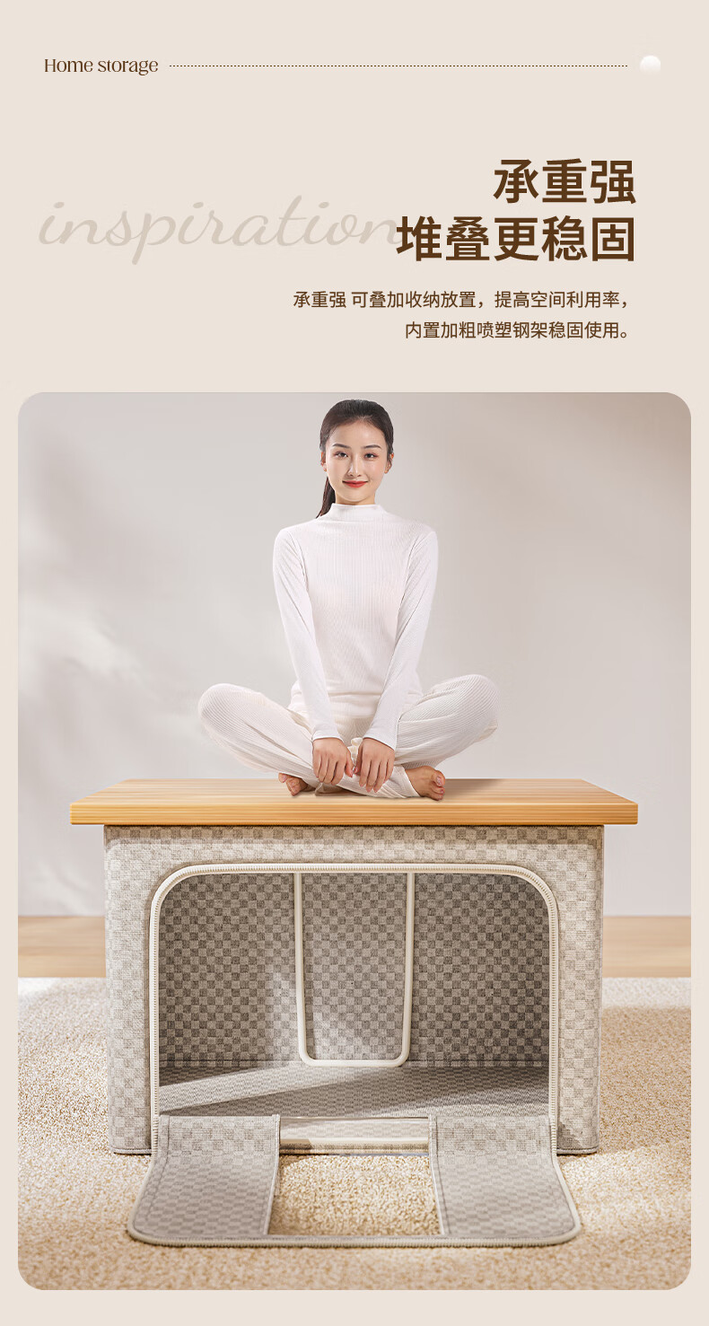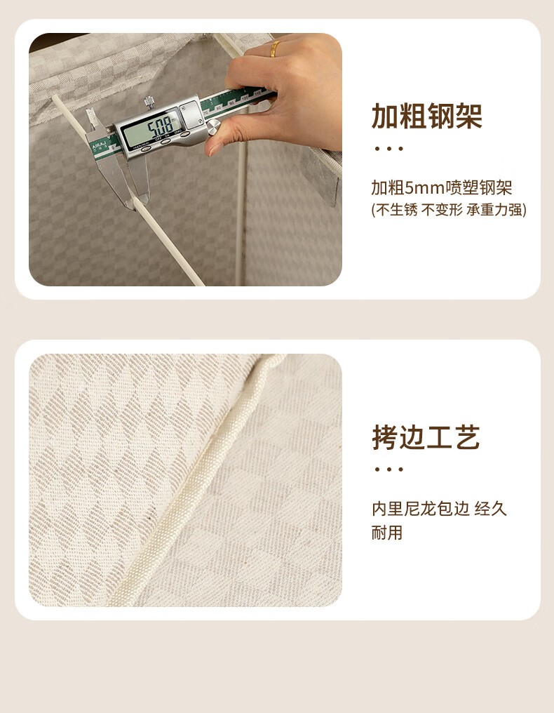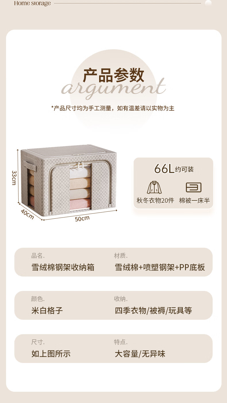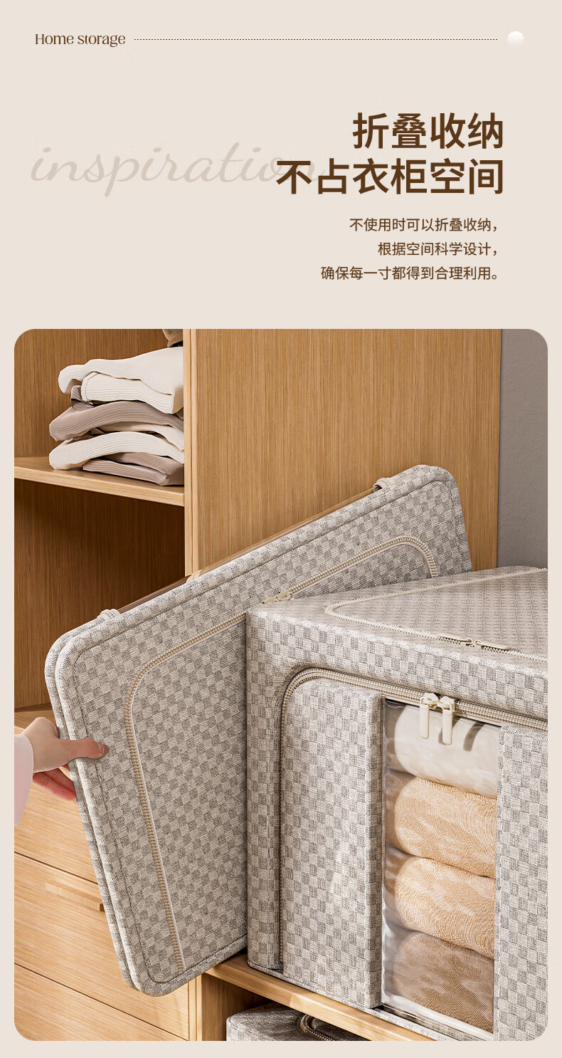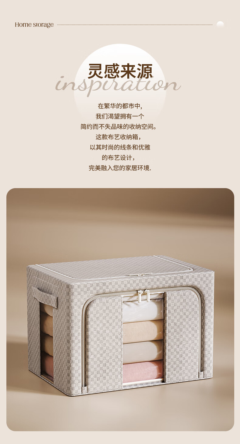 享乐屋可水洗百纳箱大号加厚衣服收纳箱布艺整理棉被大容量透明防霉防潮 6个装 新疆棉面料 5.0MM钢架 升级抗菌款 66升 50*40*33cm
