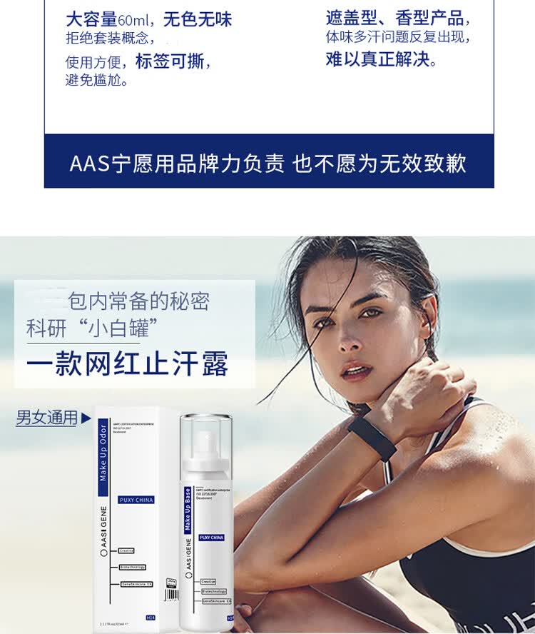 AAS止汗露狐臭止汗露去孤臭腋臭体液臭腋下狐臭净味水祛喷雾除男女士 遗传学生60ml*1瓶 拍2默认发3