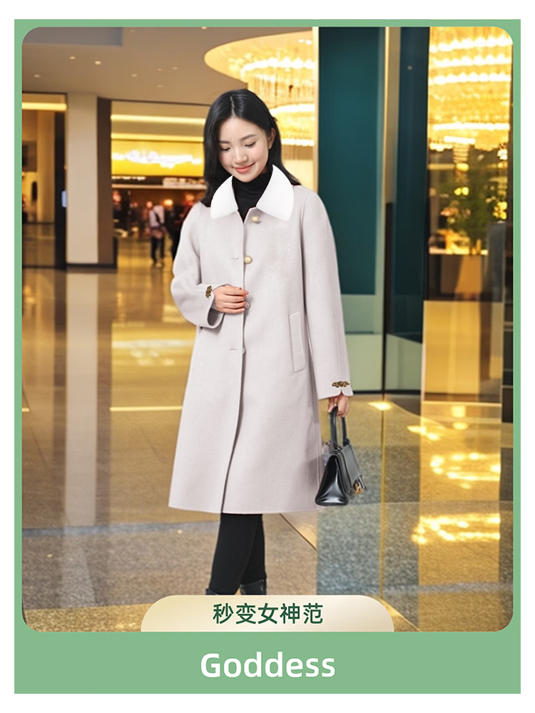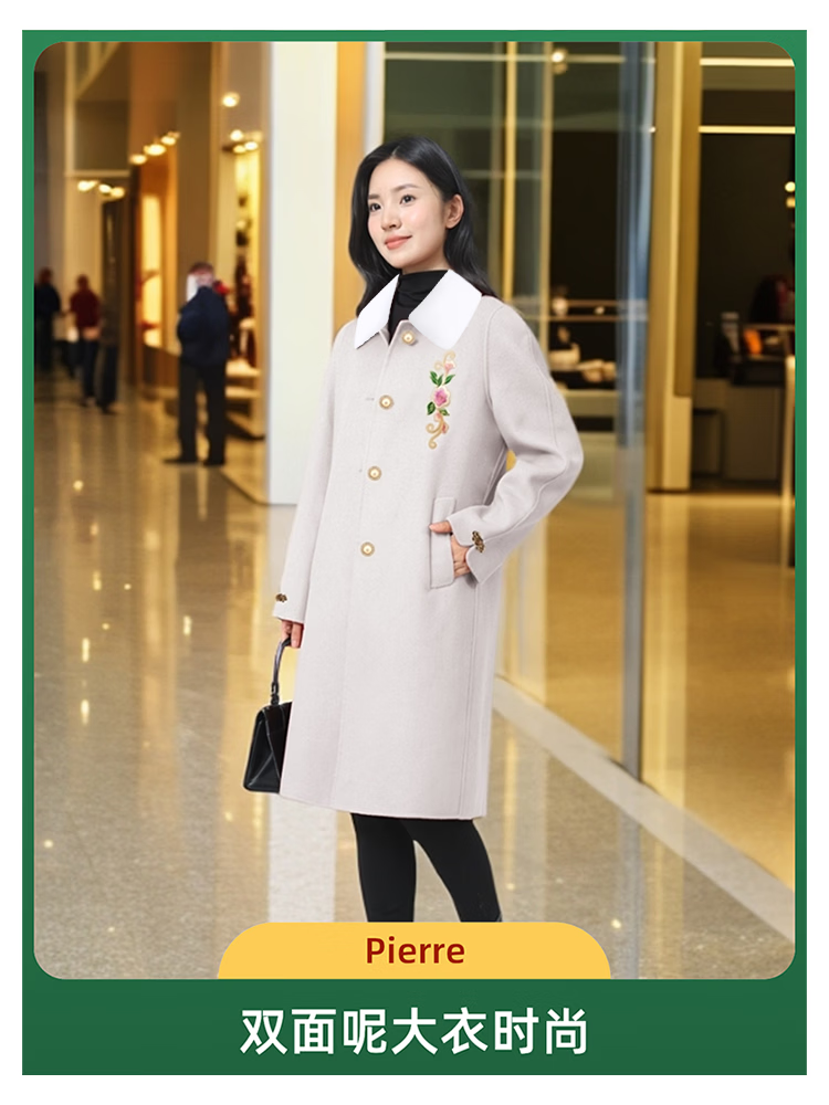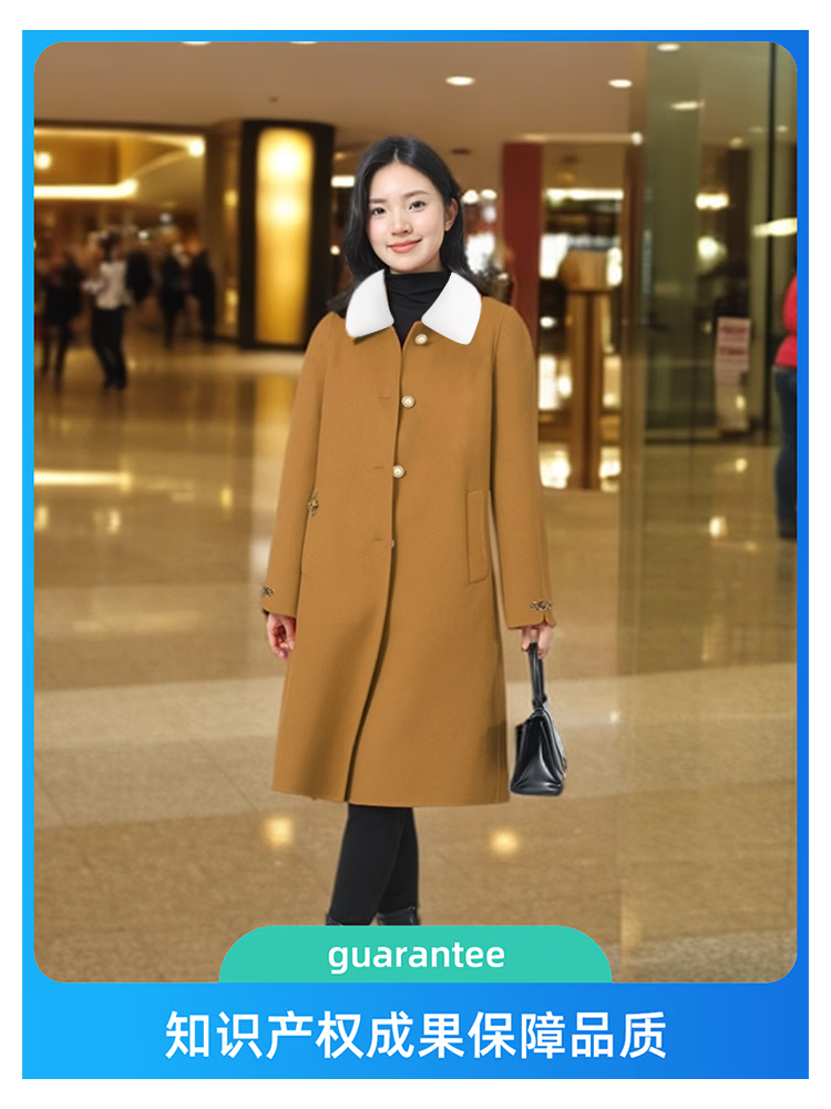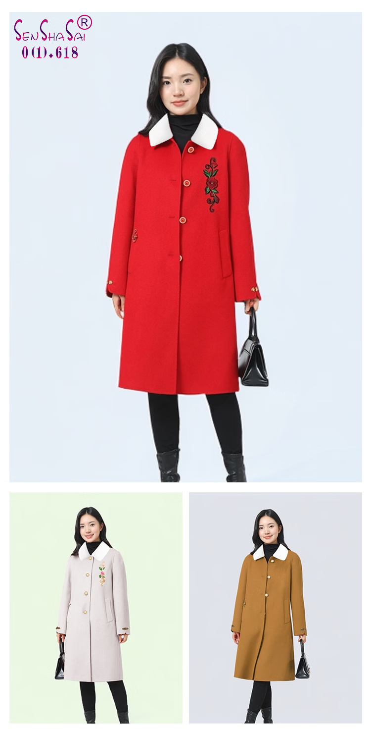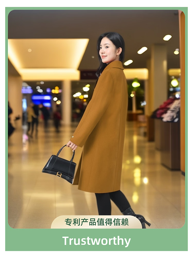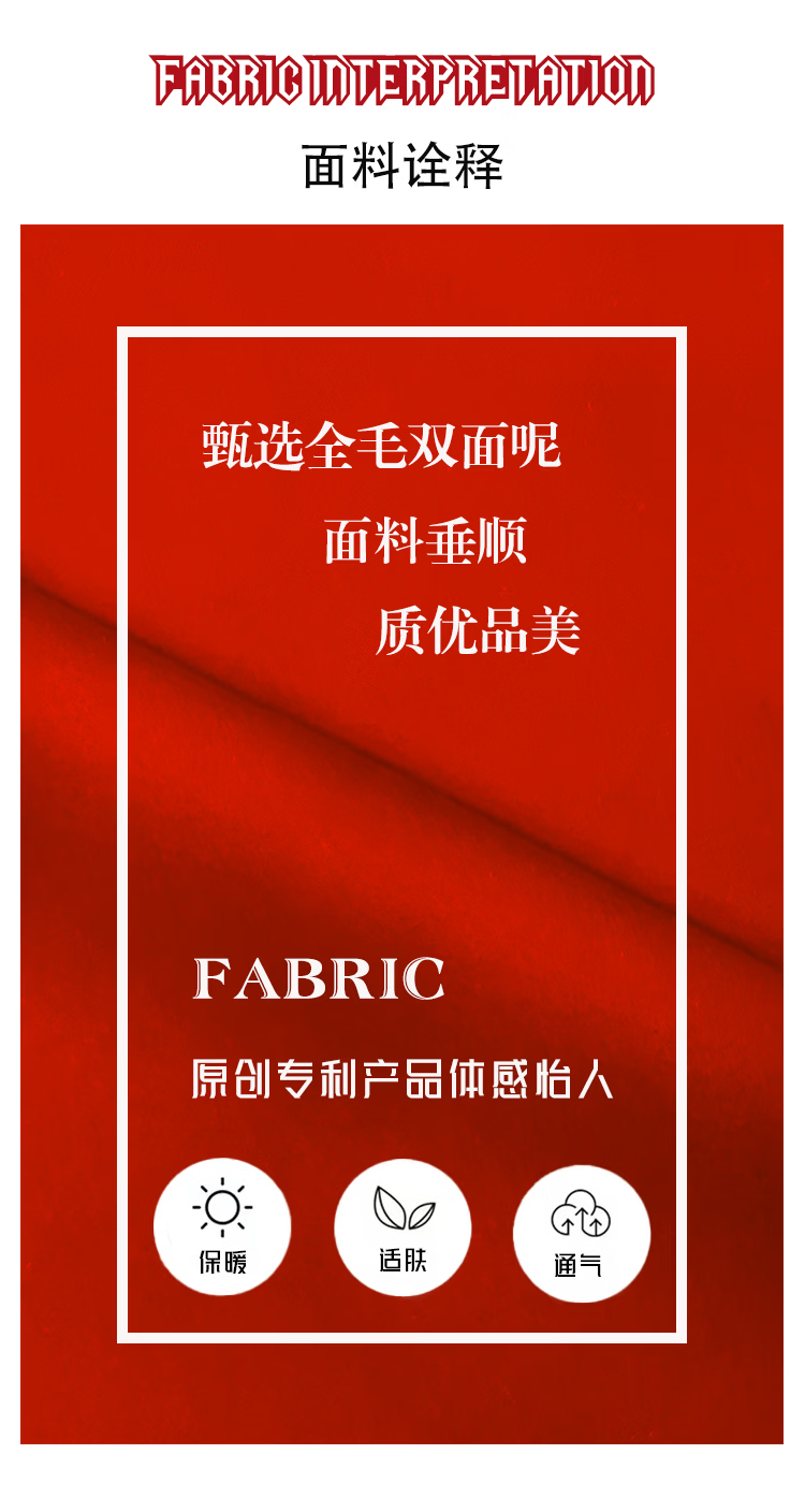 全毛双面呢中长女装大衣发明专利产品全品类春秋冬三季适用毛呢类 红色2, 厚款, 喜欢胸花下单请备注 2XL 165-170 建议净胸围96CM在毛衣外穿
