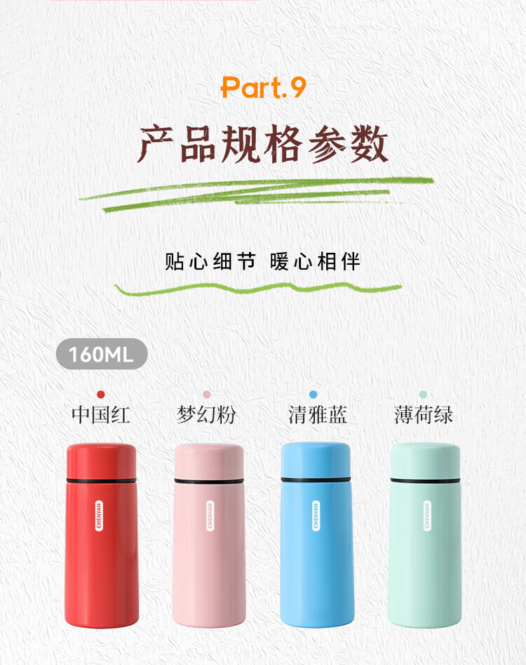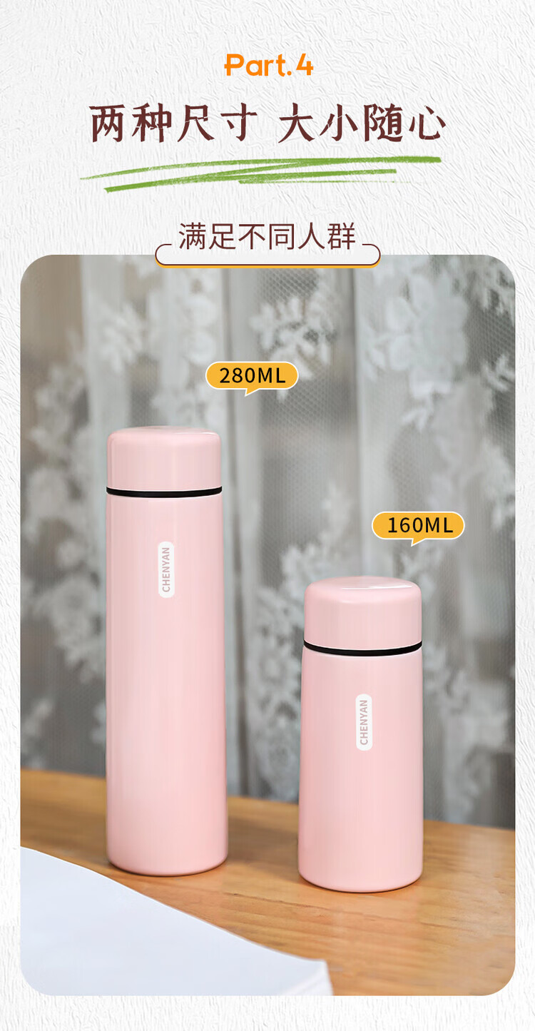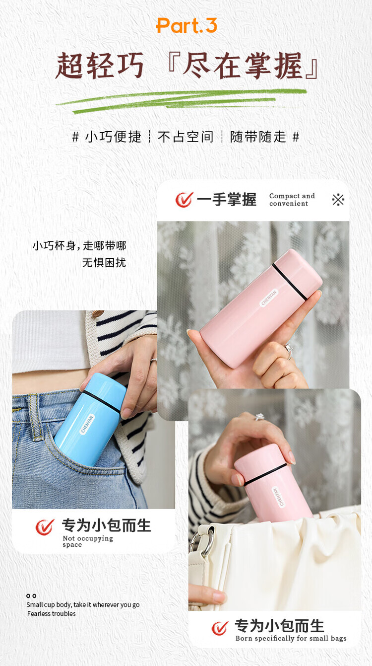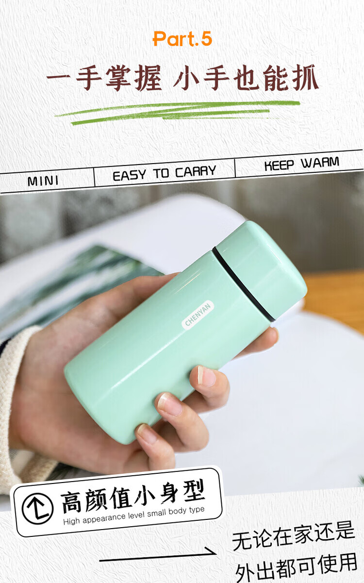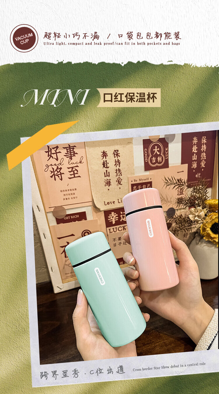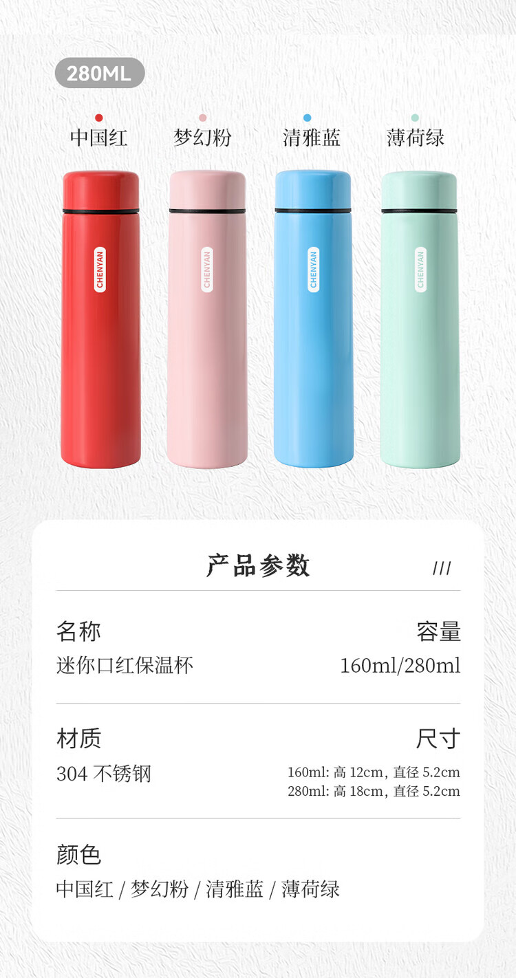水尚庭迷你保温杯304不锈钢小巧口袋保温杯男女便携简约小型保温杯160ml 西柚红-280ML