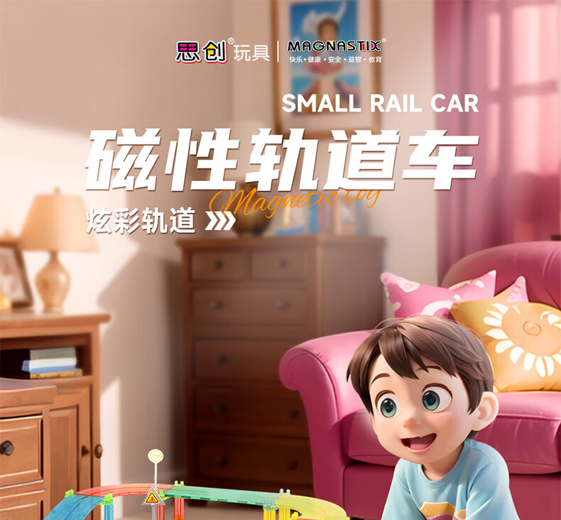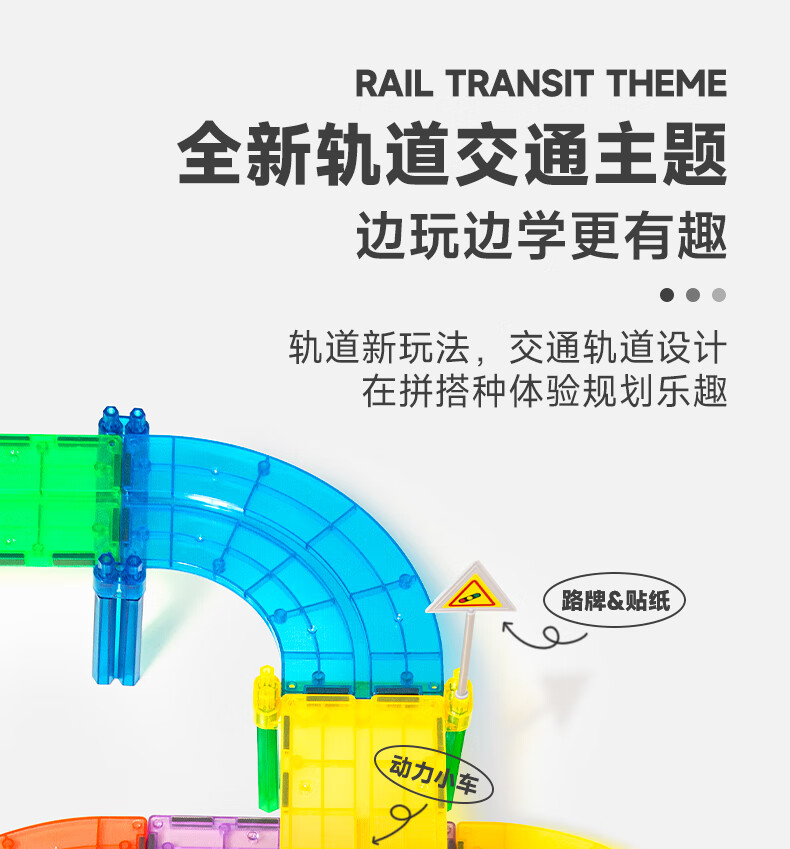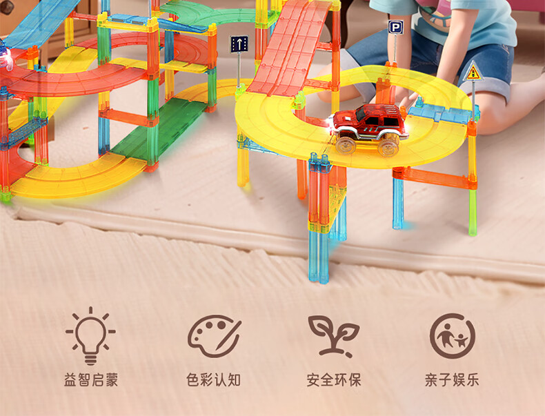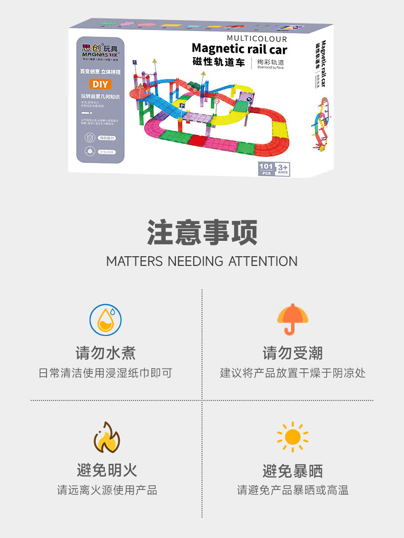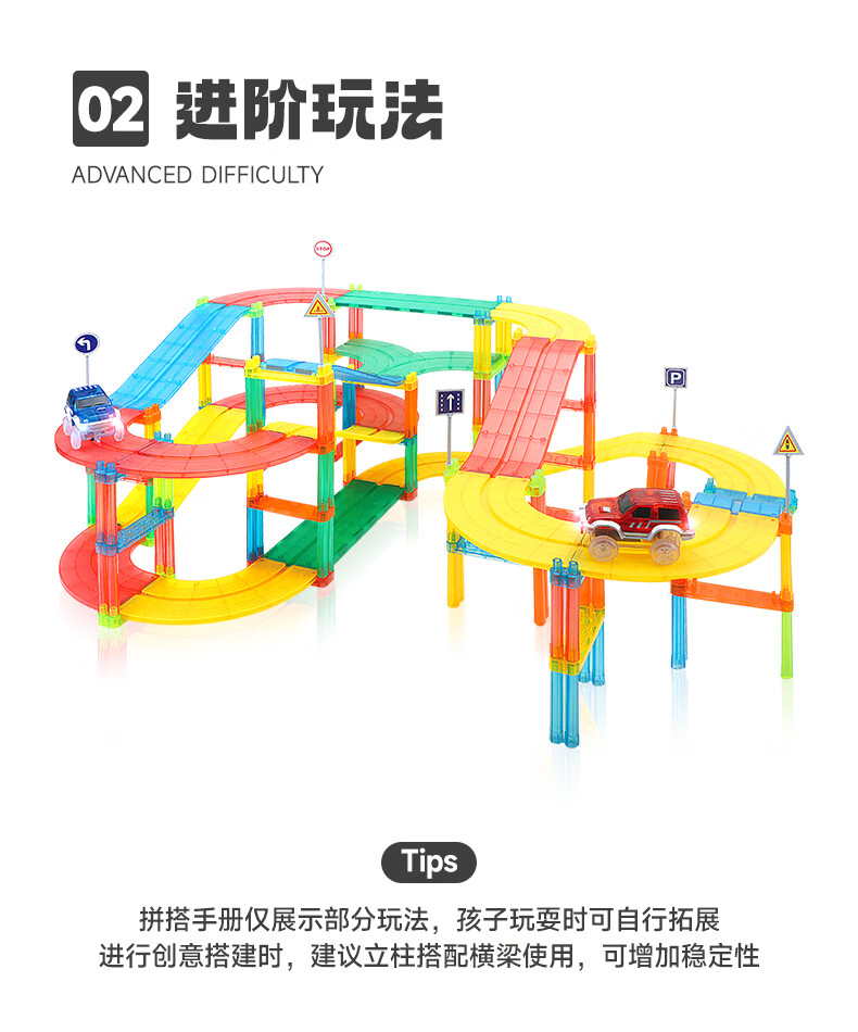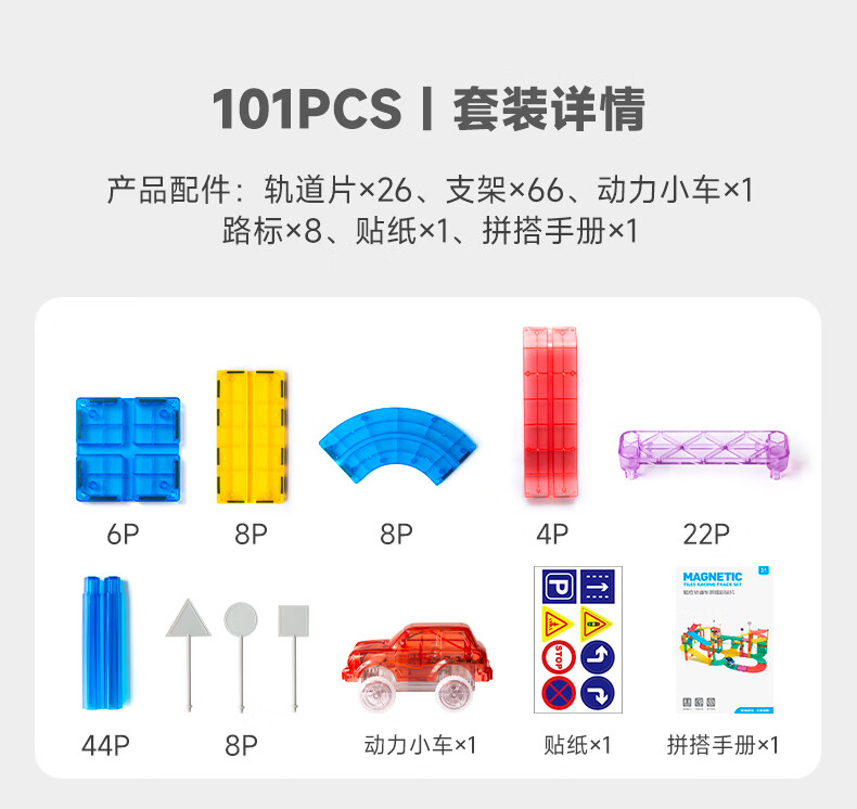 思创儿童磁力片积木玩具轨道车自由拼装益智玩具男童生日礼物 101PCS