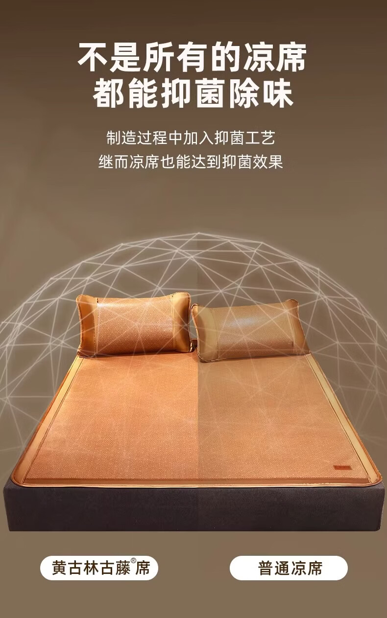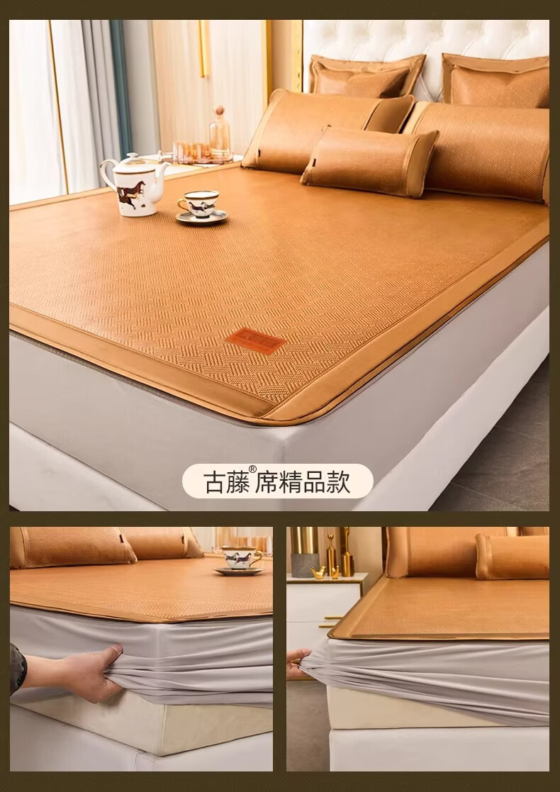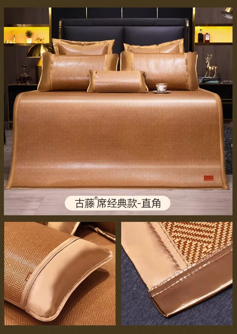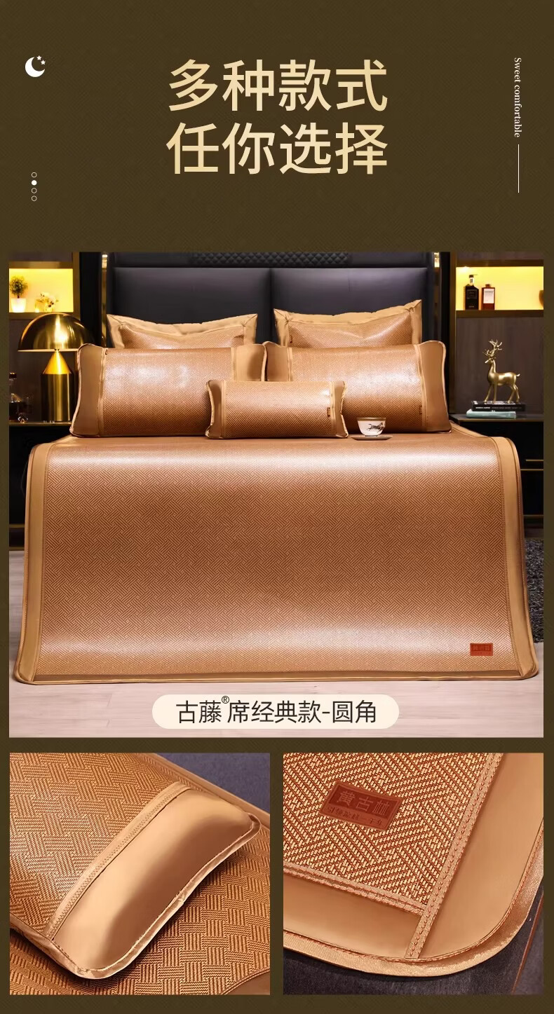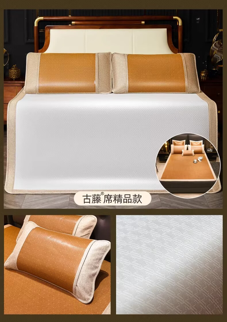 黄古林经典古藤席三件套升级加厚冰丝双面席双人床凉席床笠款席子单人席 母婴A类-经典床席款(三件套) 2.0米床 220cm*200cm