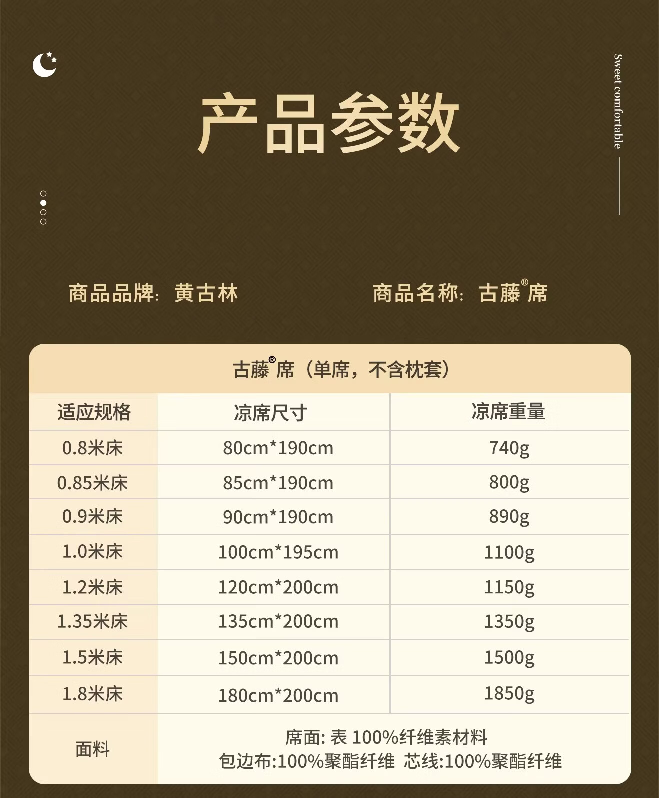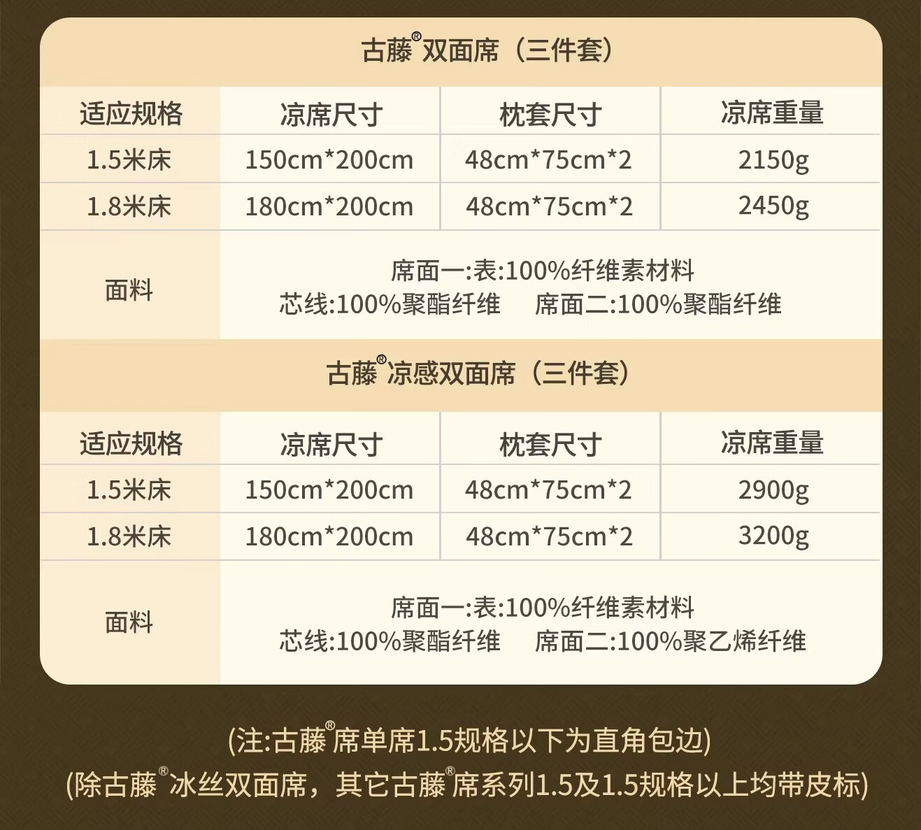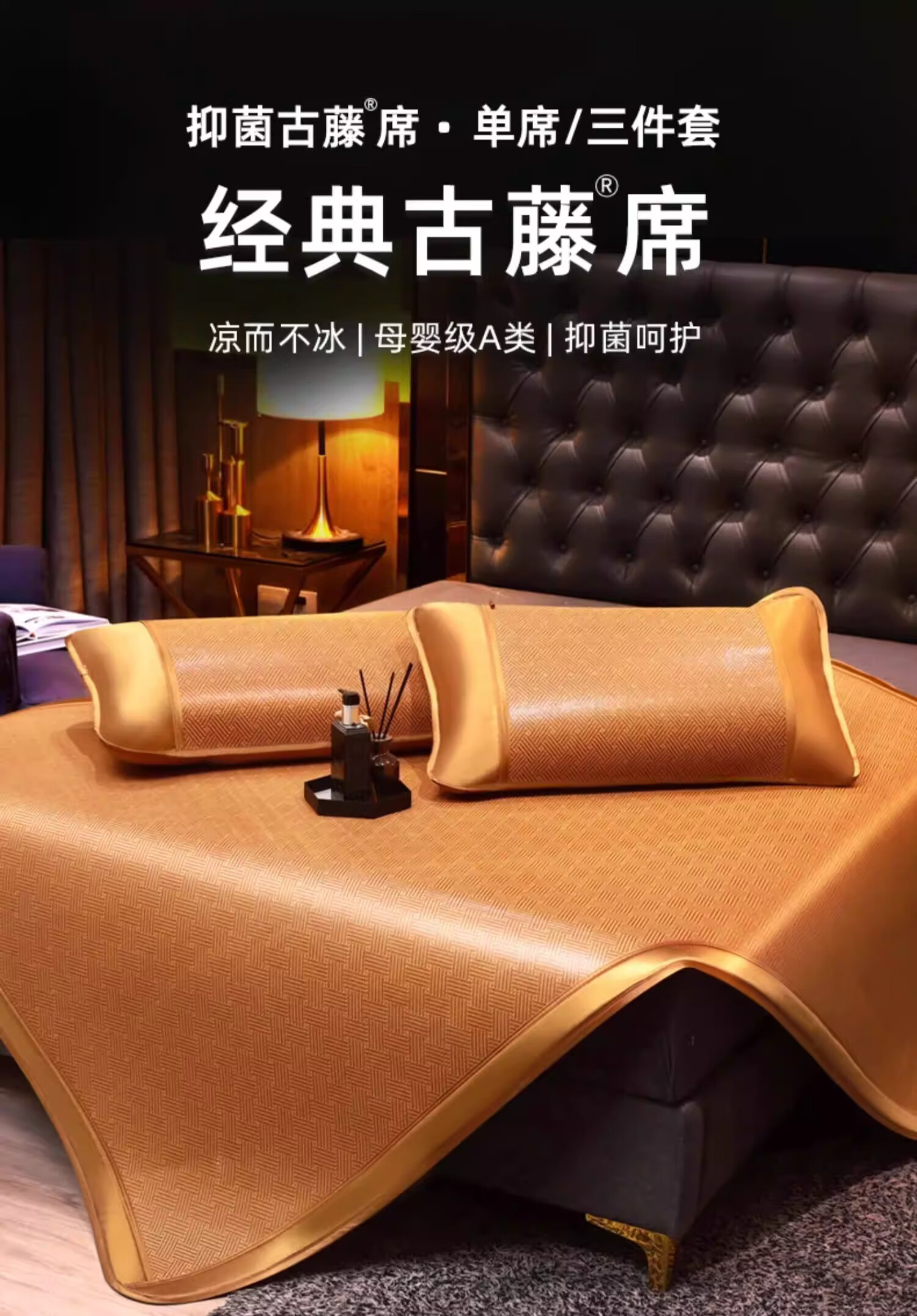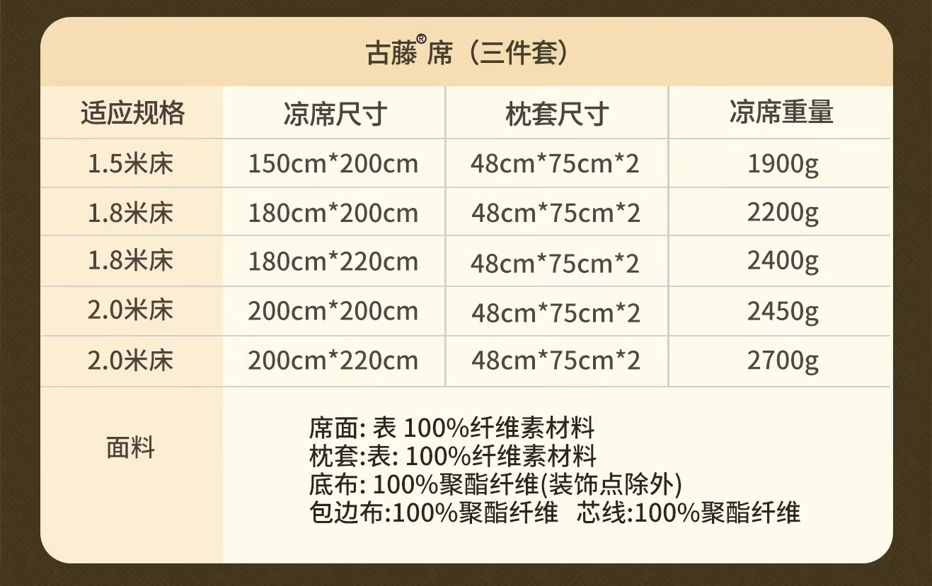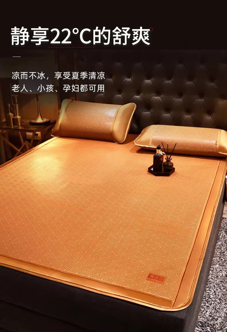 黄古林经典古藤席三件套升级加厚冰丝双面席双人床凉席床笠款席子单人席 母婴A类-经典床席款(三件套) 2.0米床 220cm*200cm