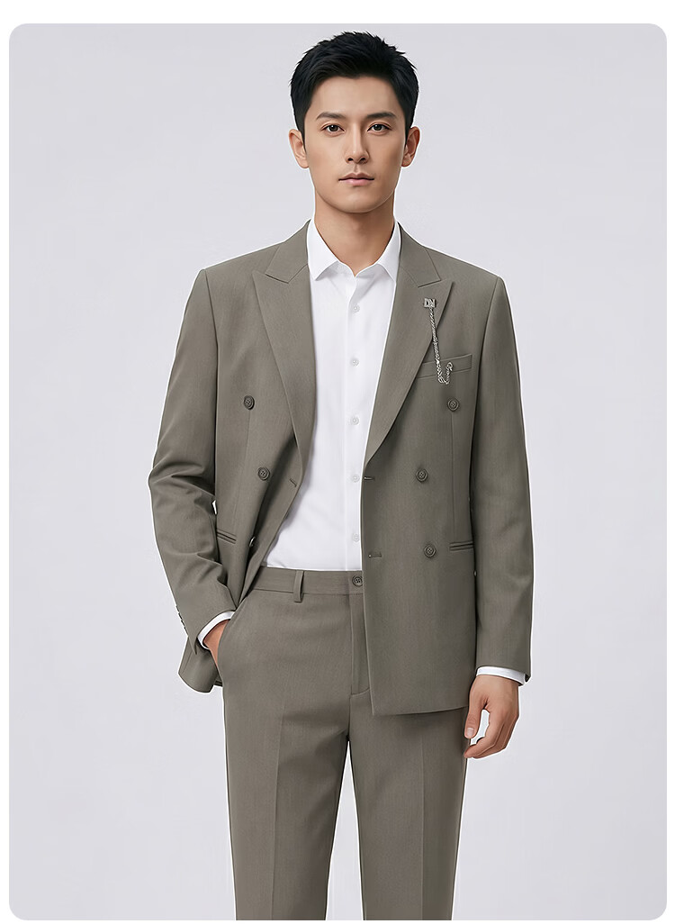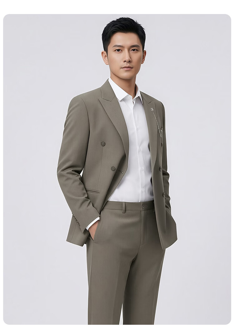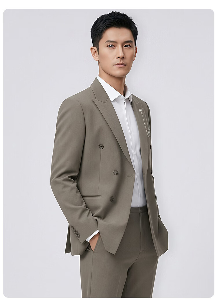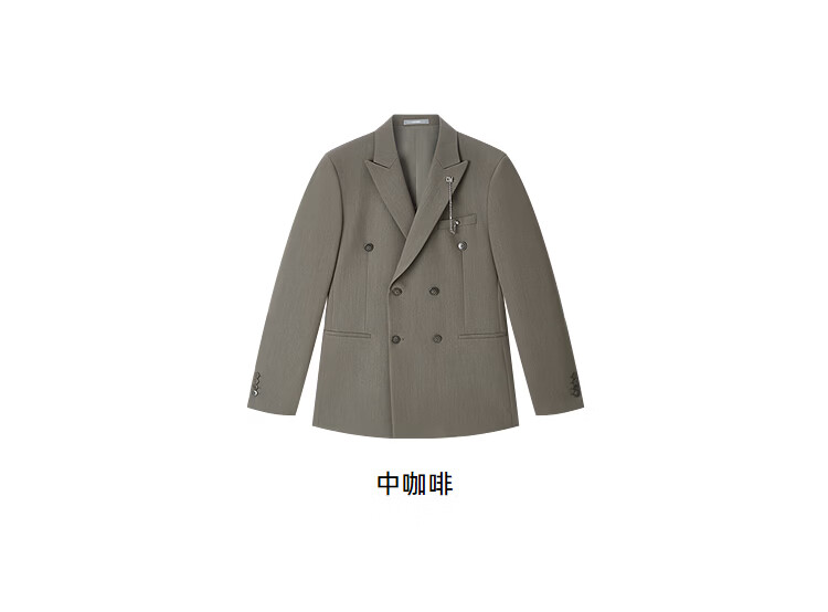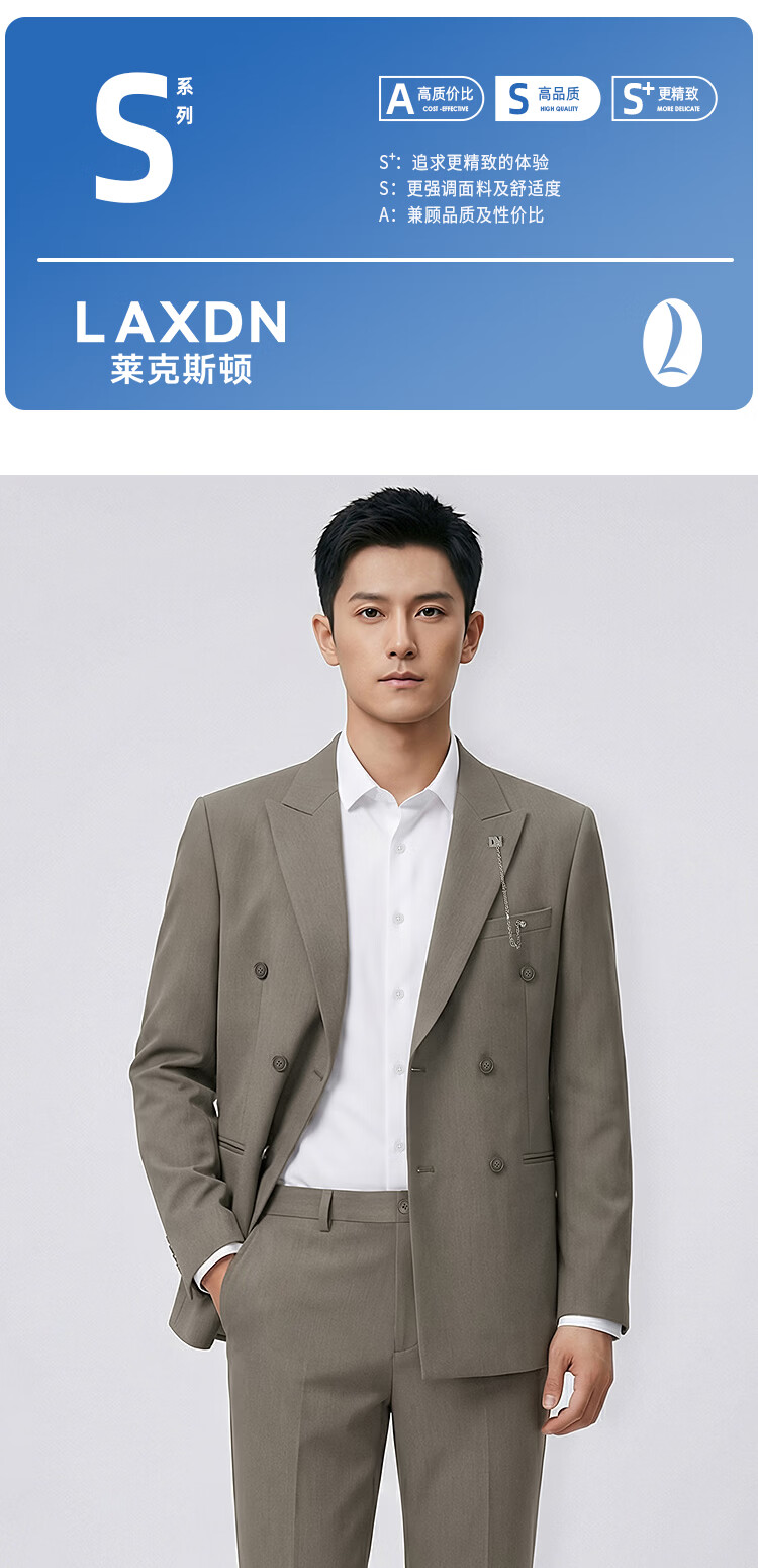莱克斯顿(laxdn)西服男四季通用羊毛混纺挺阔有型易打理修身商务高级正装单西男 中咖啡 46