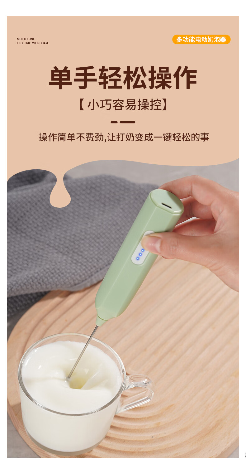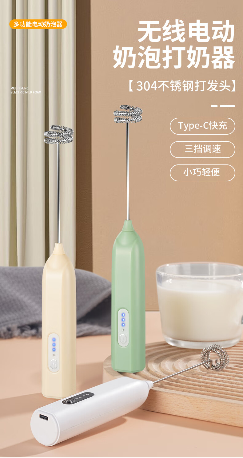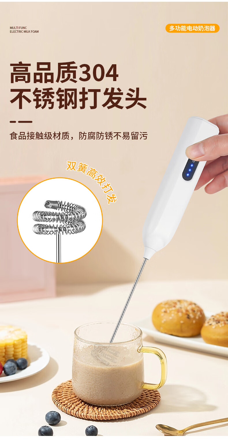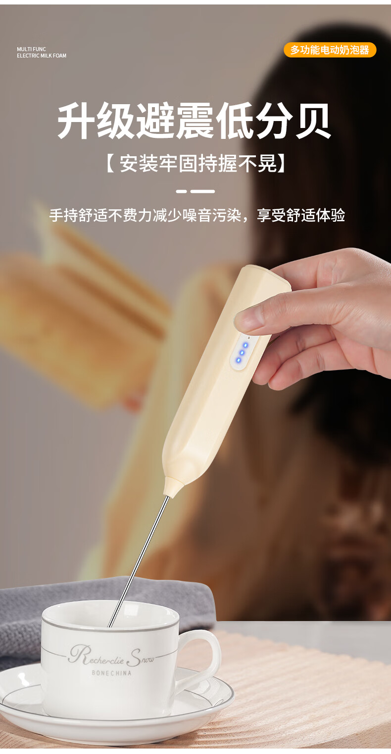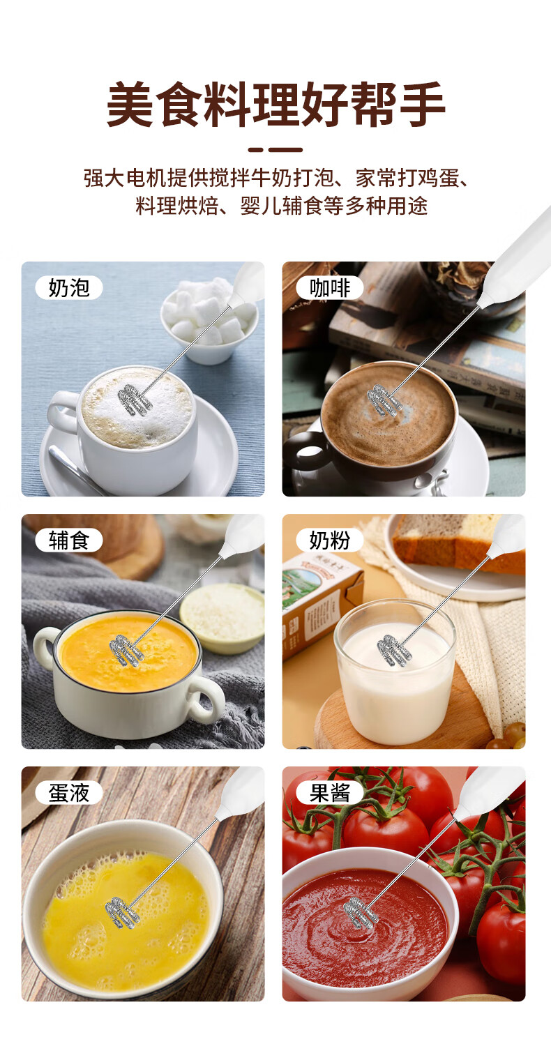 打奶泡器 打蛋器咖啡打泡器奶泡打发器手持小型电动搅拌棒打发器 奶白色【三挡调速 快速打发】