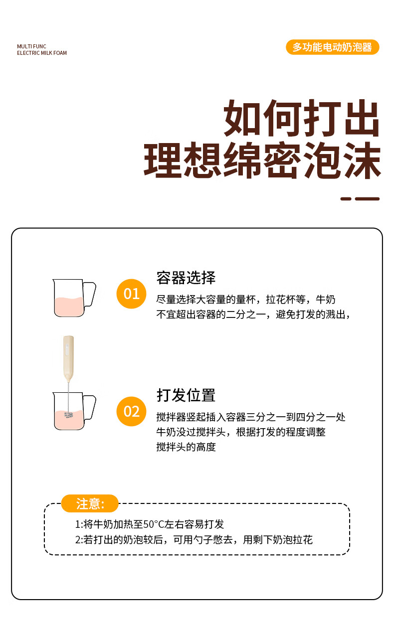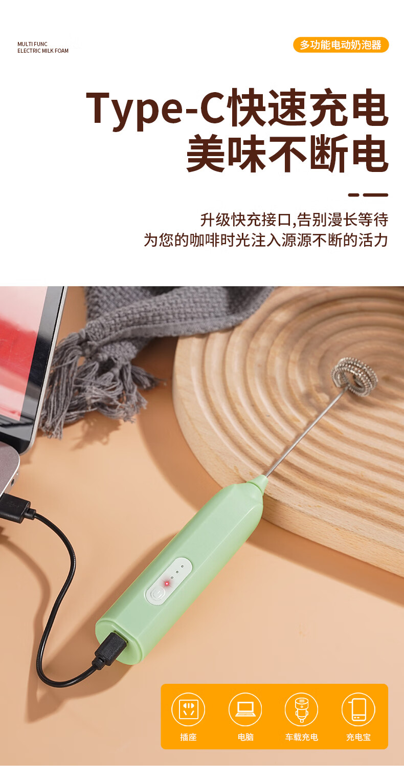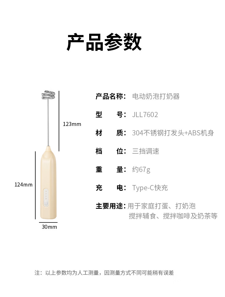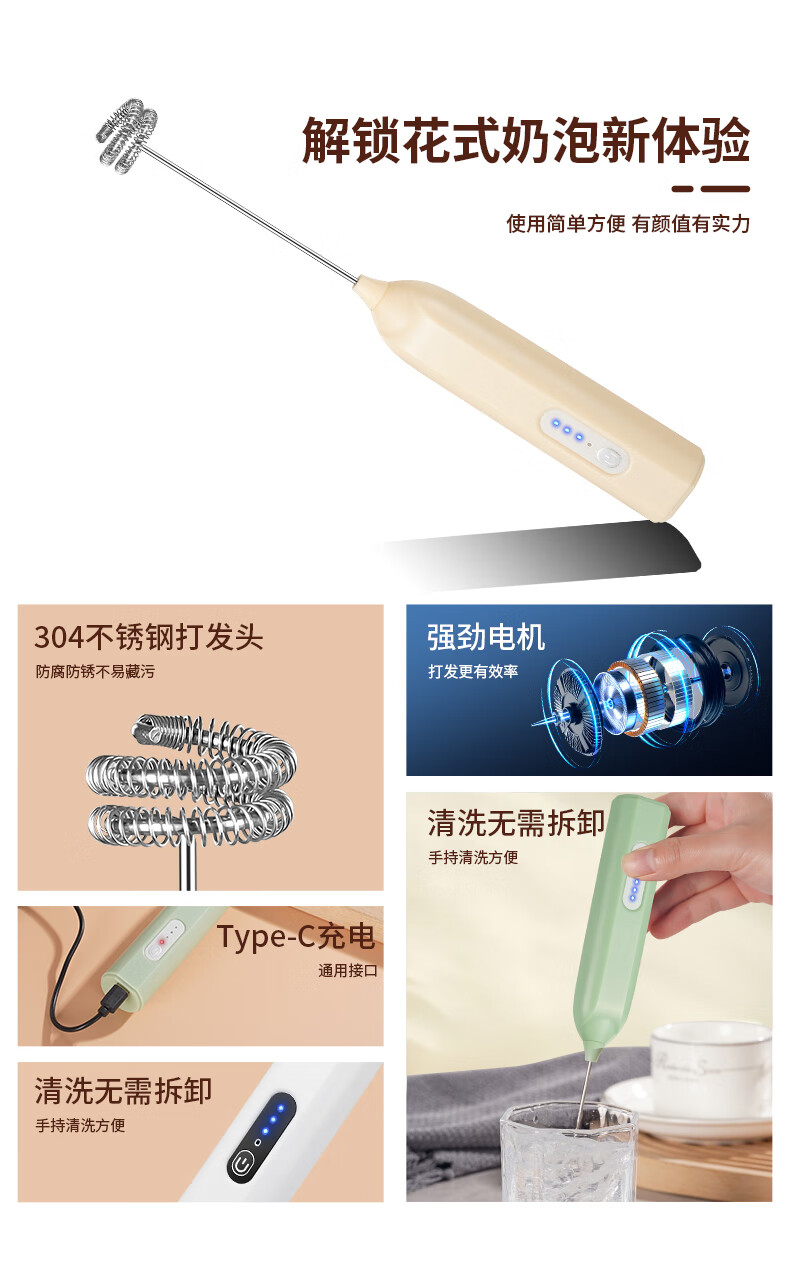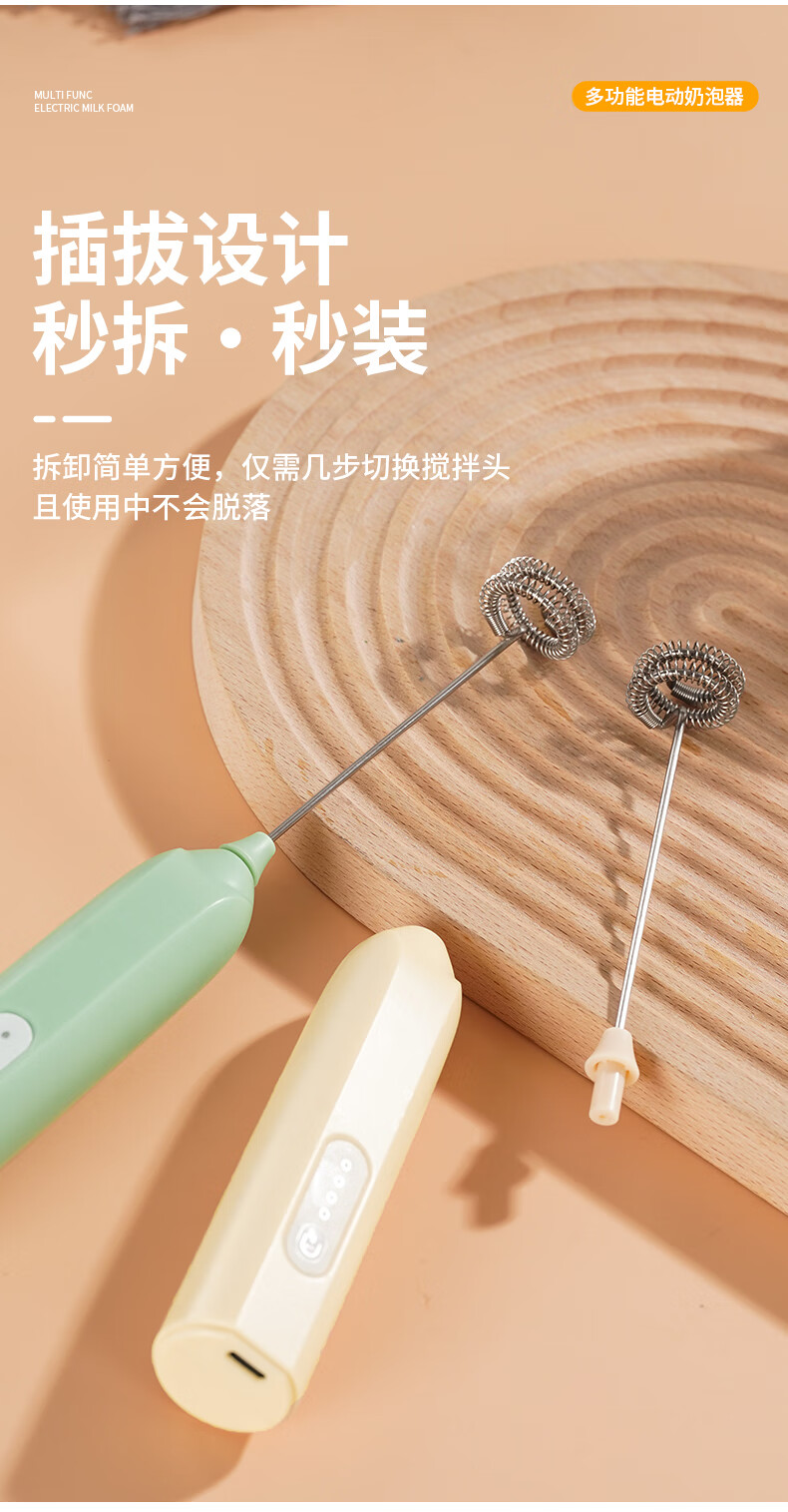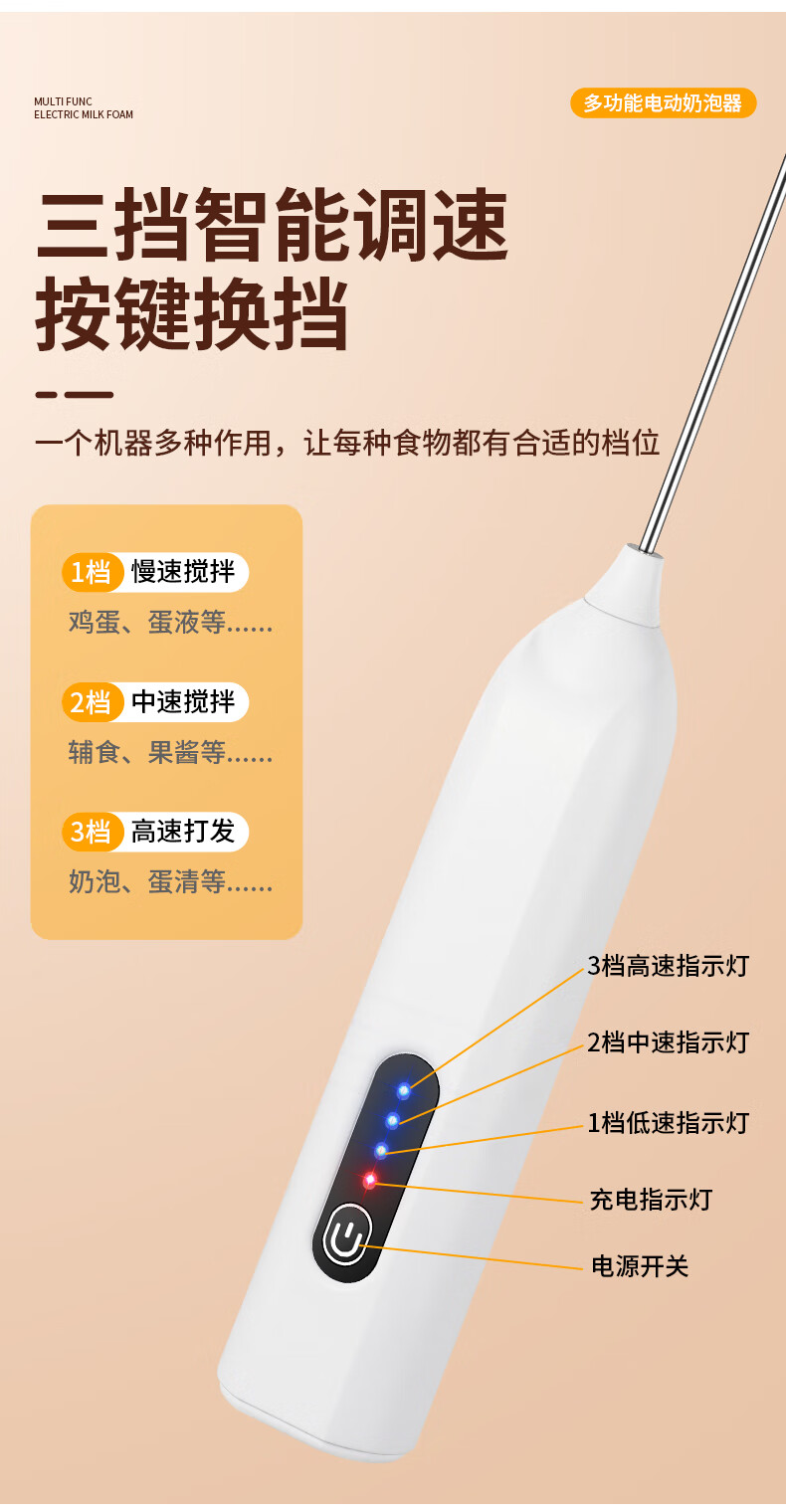 打奶泡器 打蛋器咖啡打泡器奶泡打发器手持小型电动搅拌棒打发器 奶白色【三挡调速 快速打发】