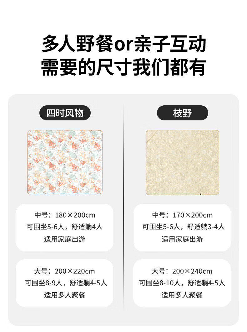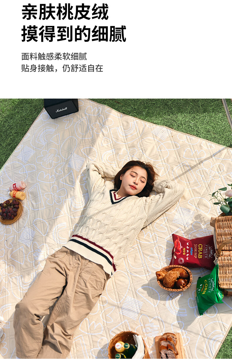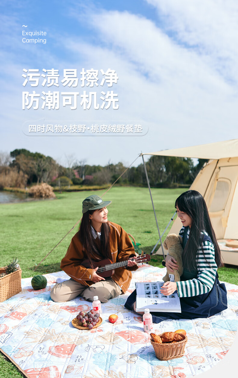 Naturehike挪客春游垫子防潮垫户外露营垫野餐地垫防水公园野餐布 苹安喜乐 180X200【推荐5-6人】
