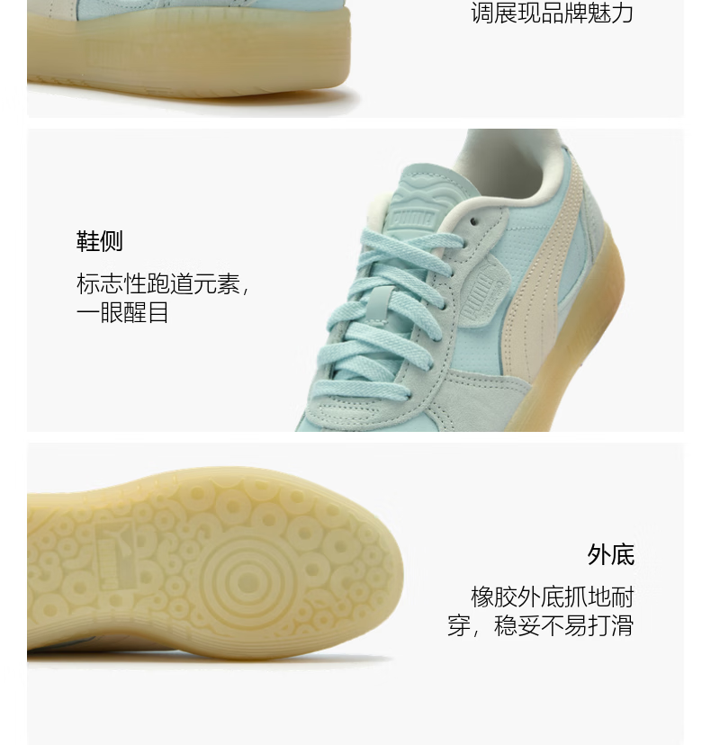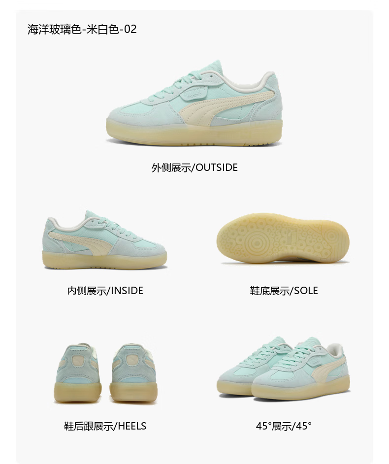 彪马(PUMA)德训鞋|马卡龙复古T头鞋女子冬季休闲鞋PALERMO403375 海洋玻璃色-米白色-02 37