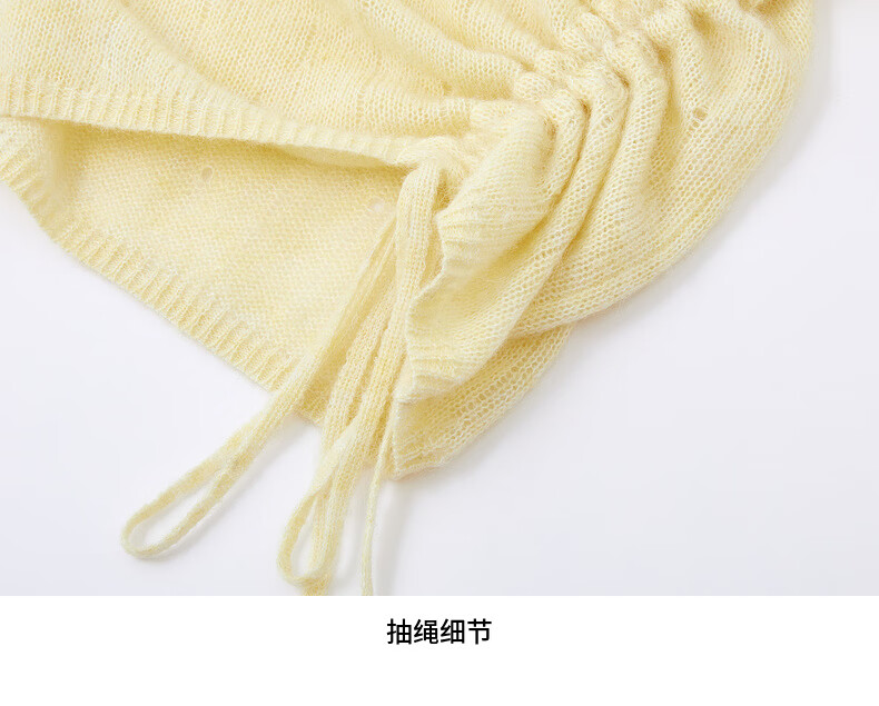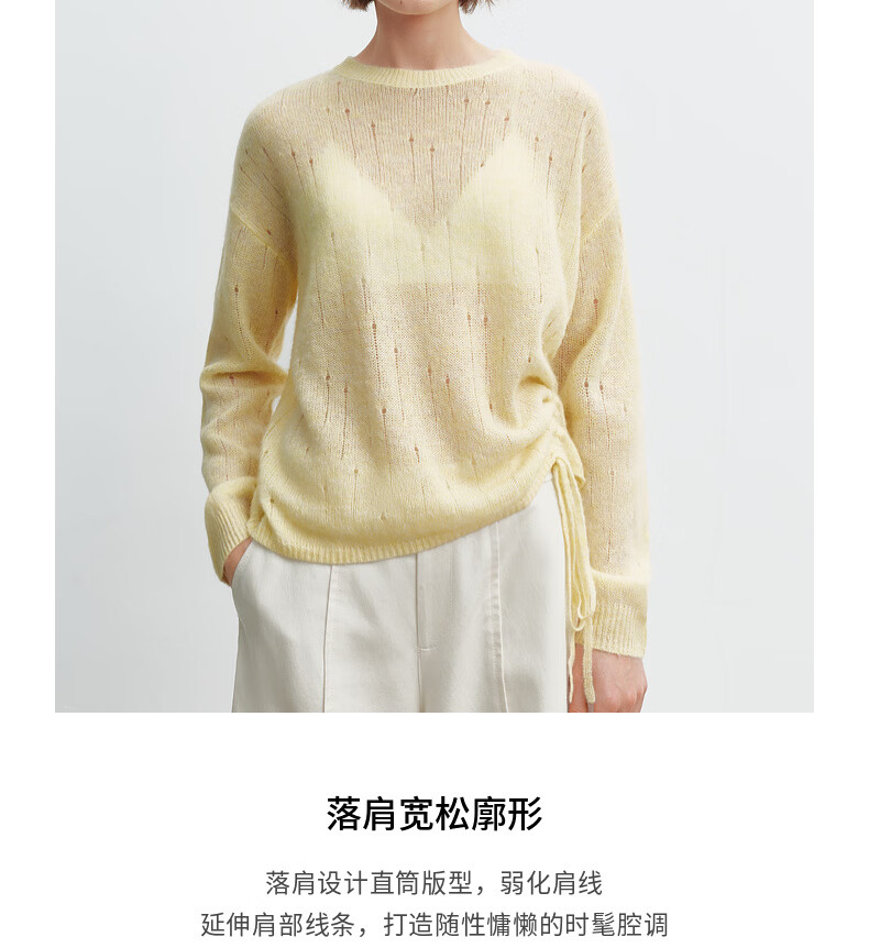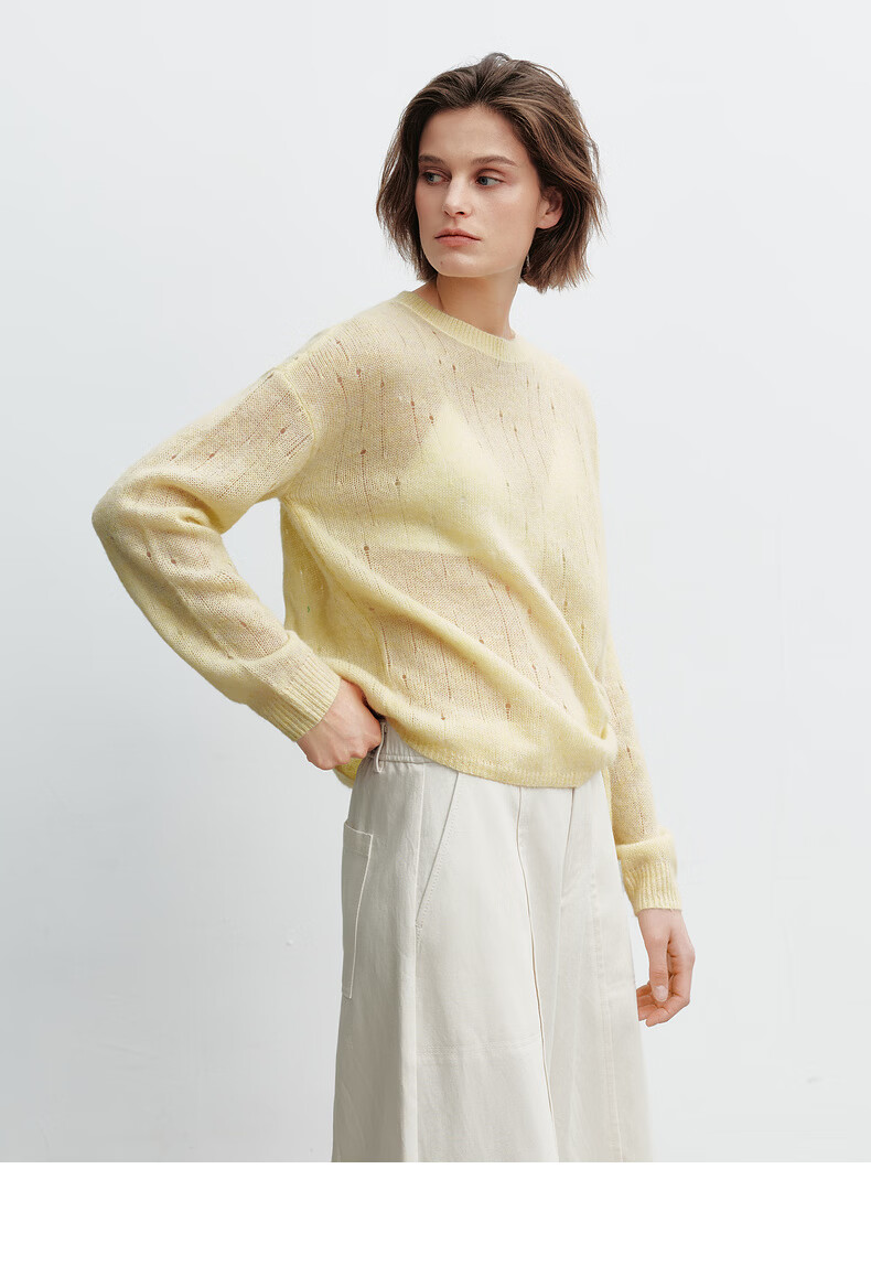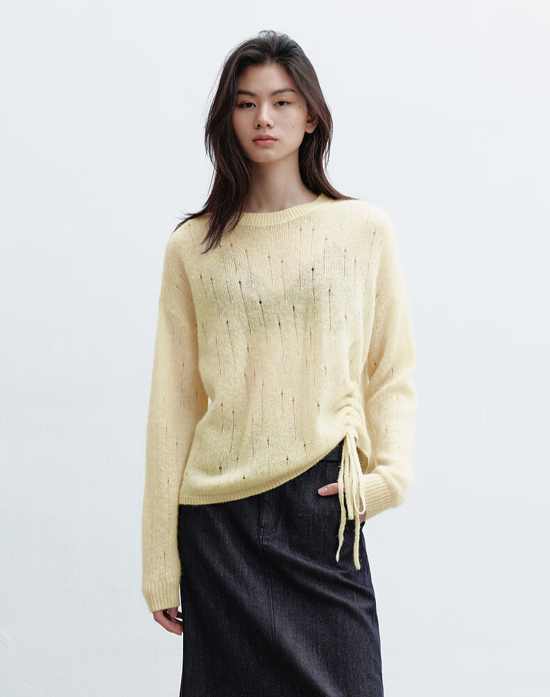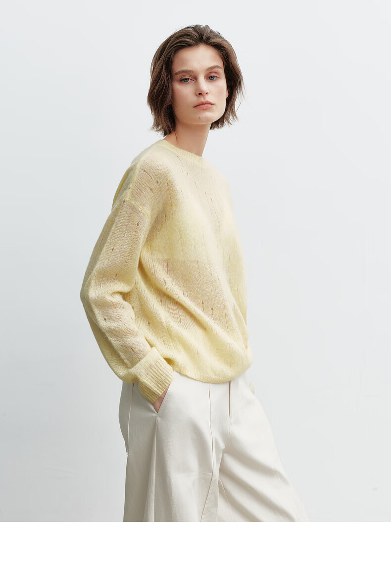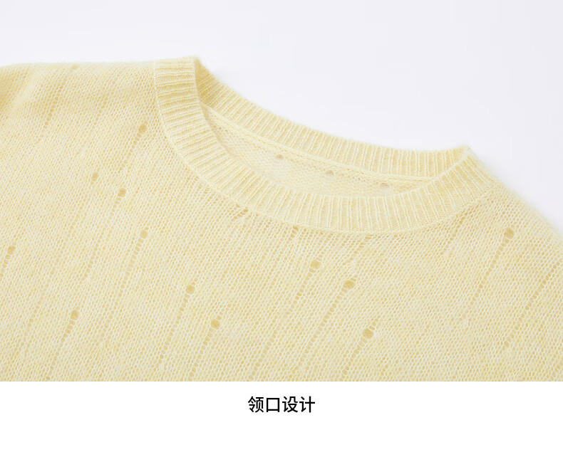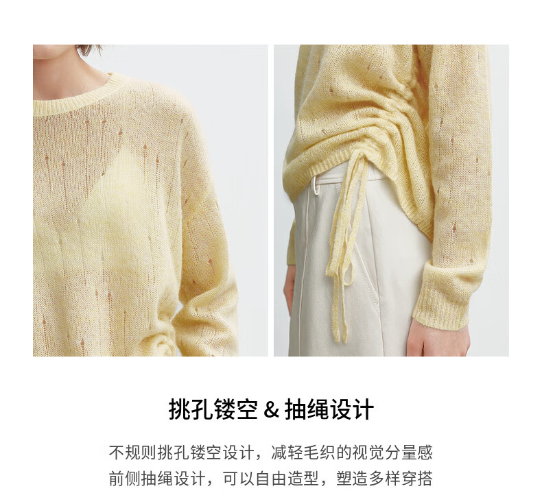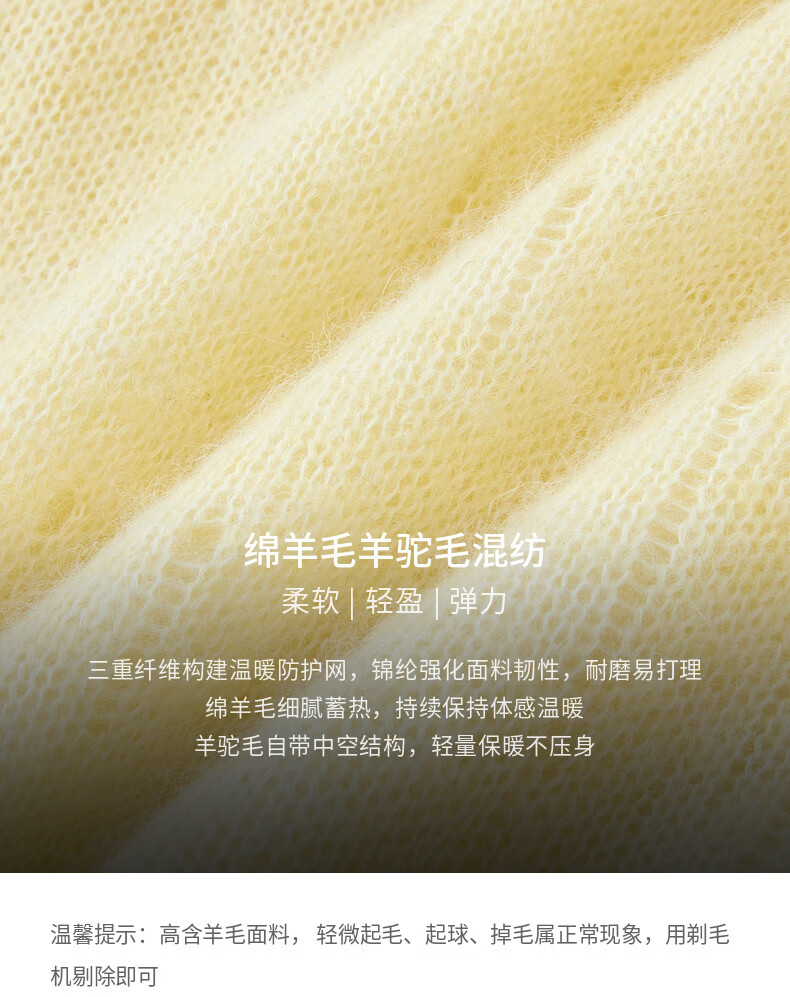 H's【羊驼毛混纺】黄色针织衫女26春季新款高级设计感毛衫毛衣上衣 柠檬奶黄色 S