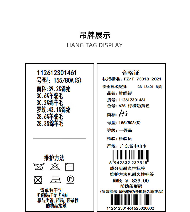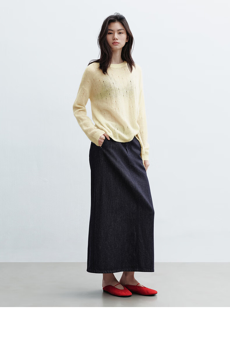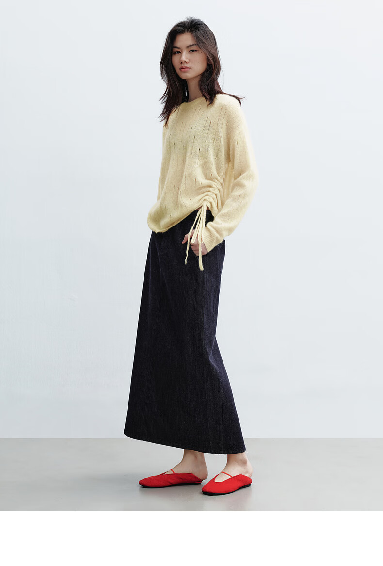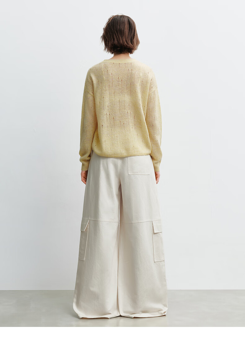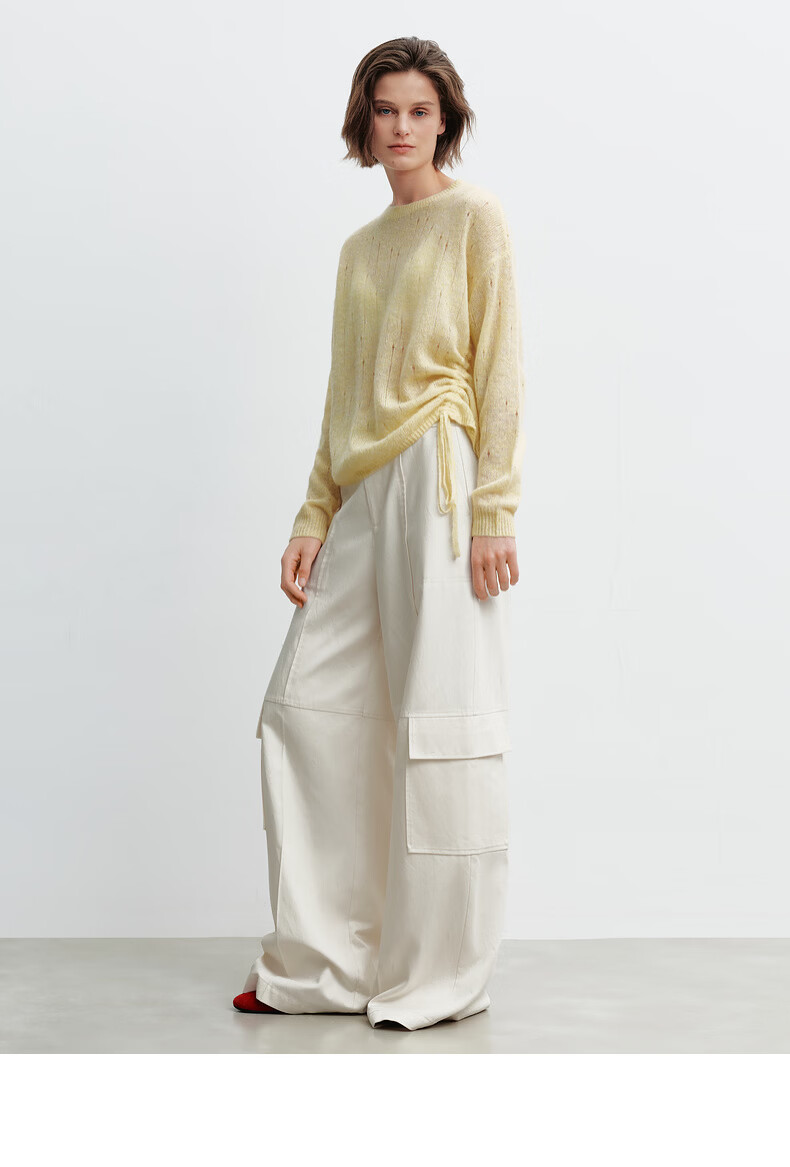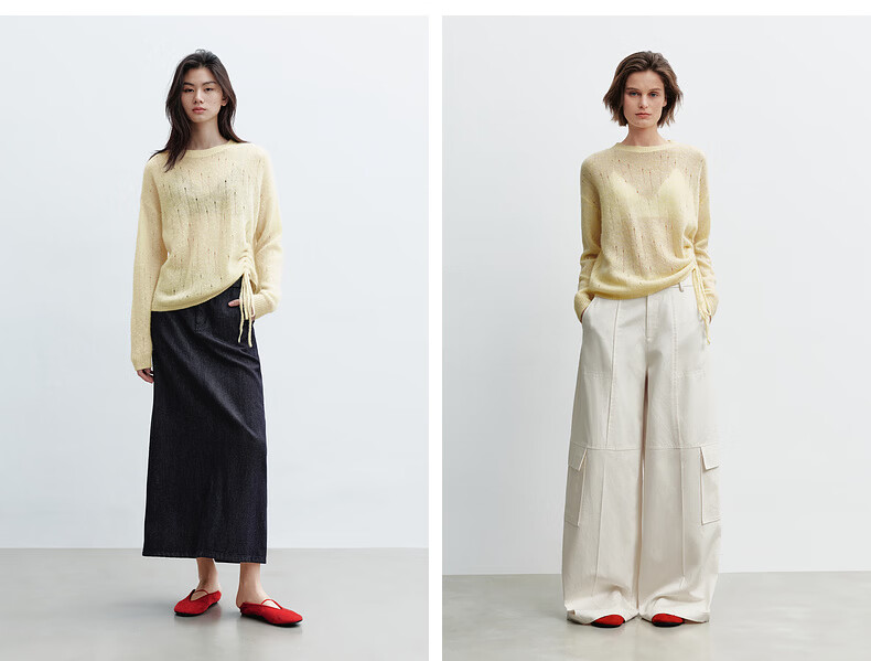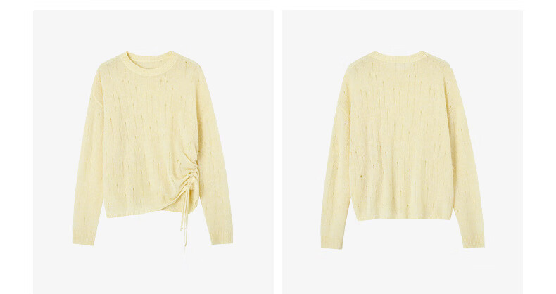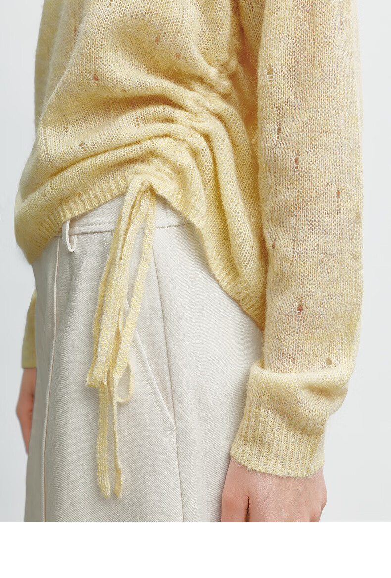 H's【羊驼毛混纺】黄色针织衫女26春季新款高级设计感毛衫毛衣上衣 柠檬奶黄色 S