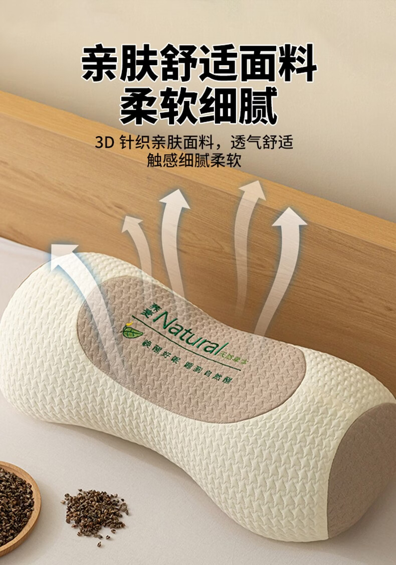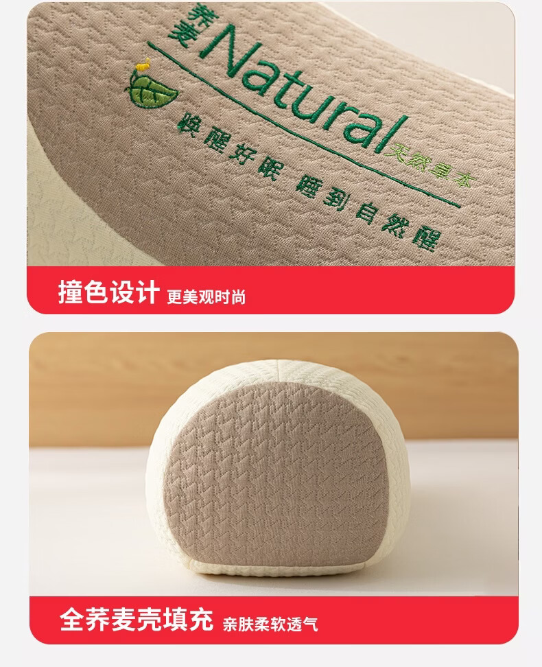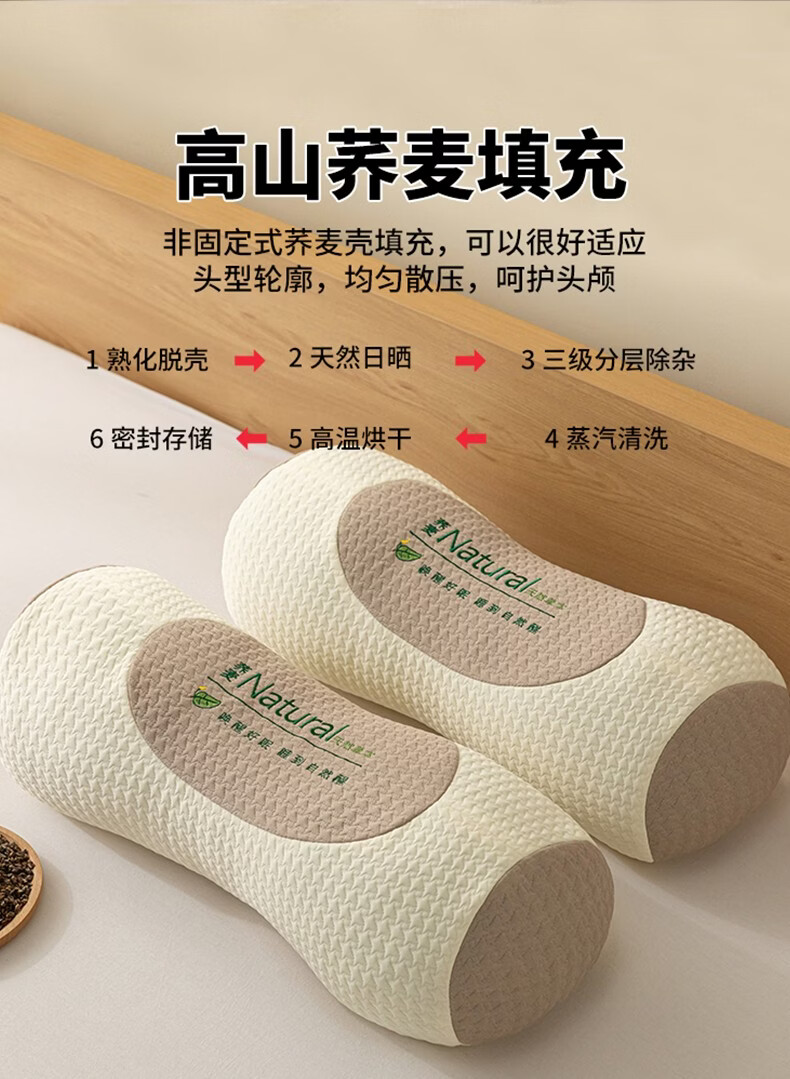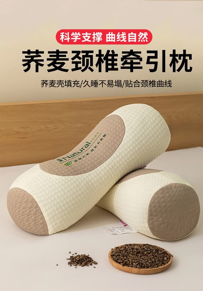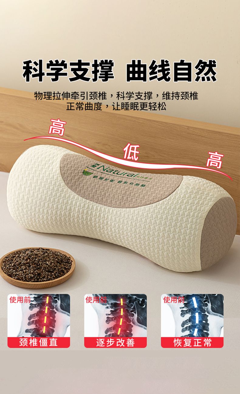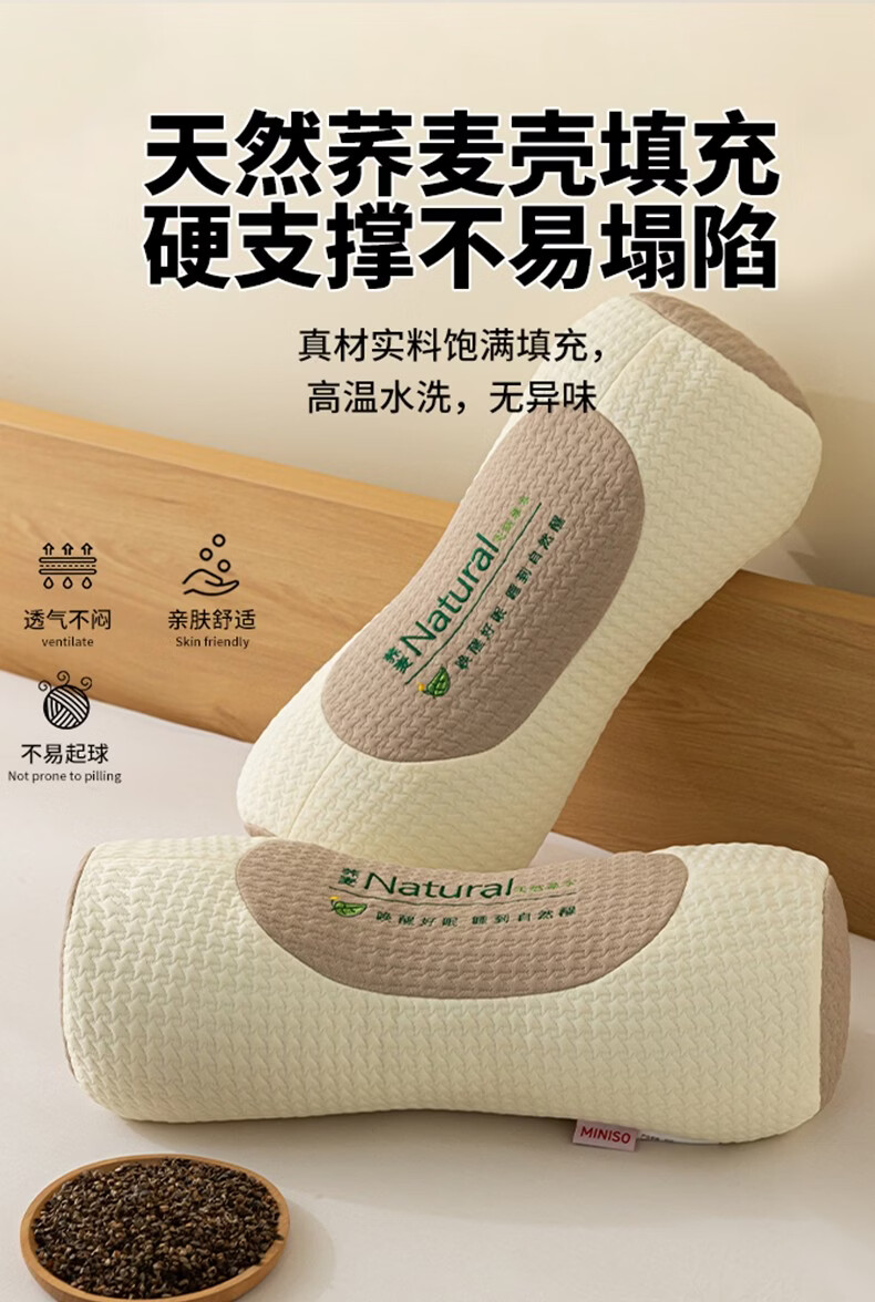 名创优品(MINISO)荞麦皮枕头枕芯 护颈枕助睡眠单人一只装成人圆柱腰椎专用 单只 【米色】荞麦枕8-14cm 8cm