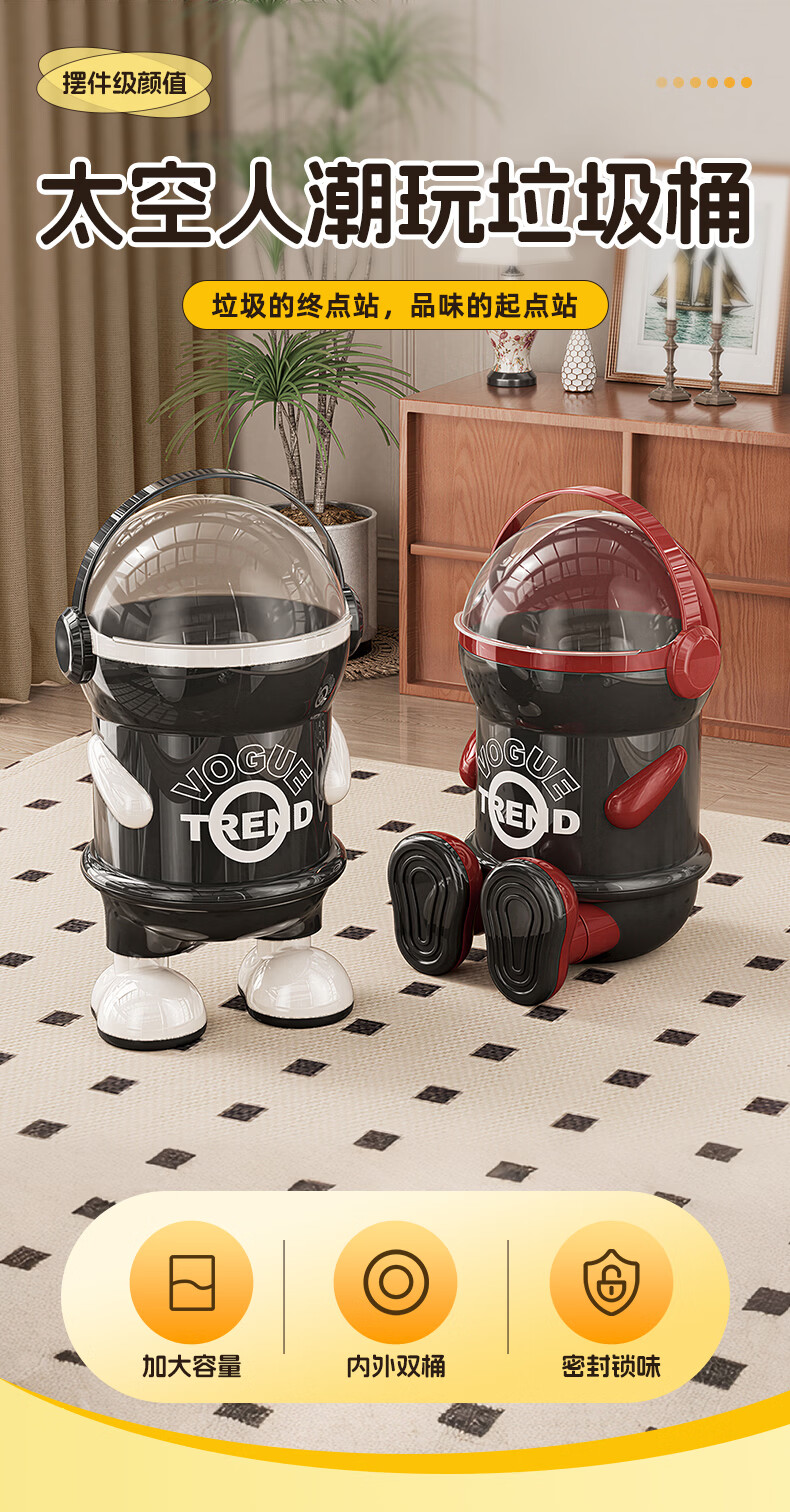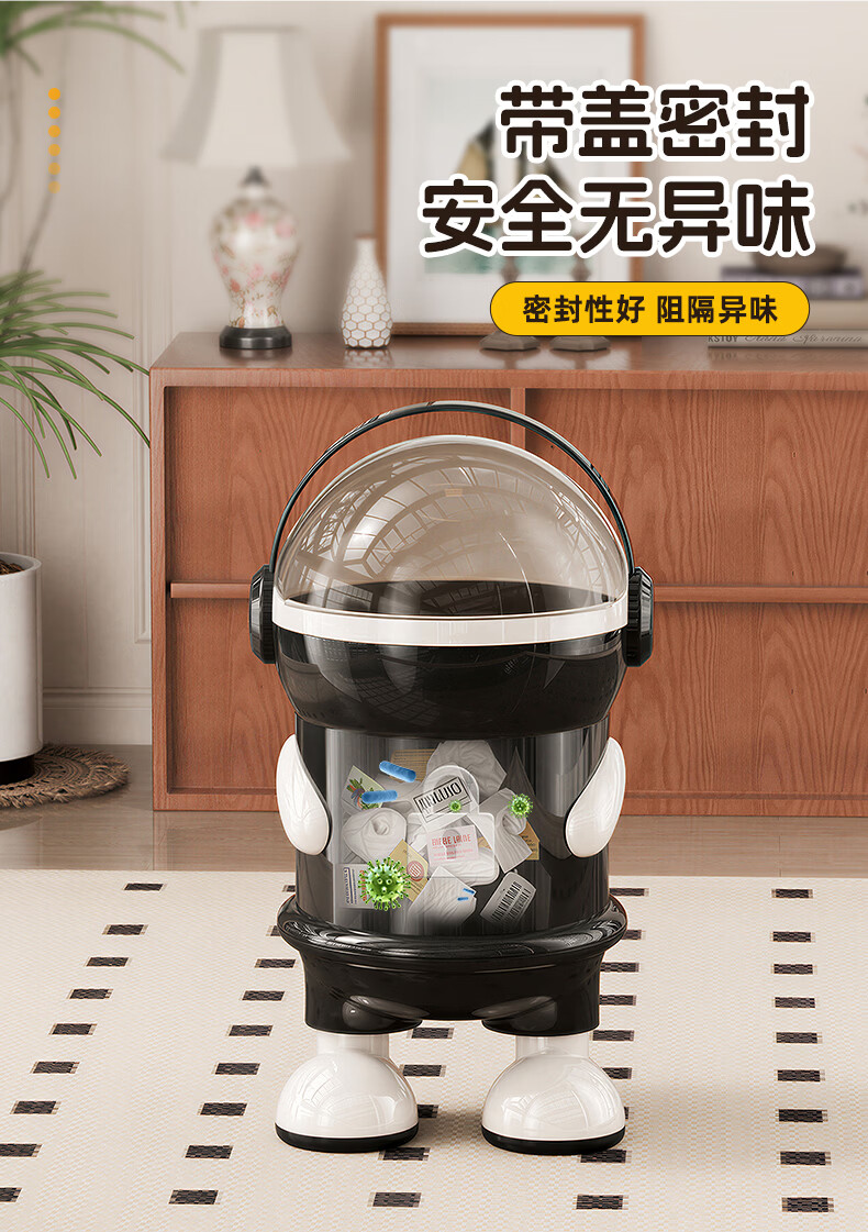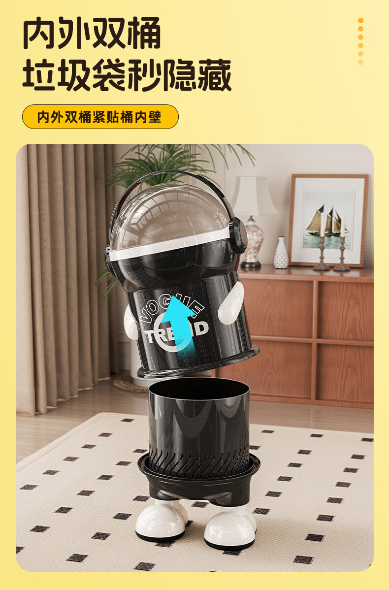 纳份爱垃圾桶客厅家用网红太空人2026新款轻奢高档卧室厕所带盖垃圾篓袋 15L-加厚黑白【站立】内外双桶/掀盖式