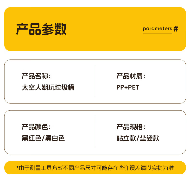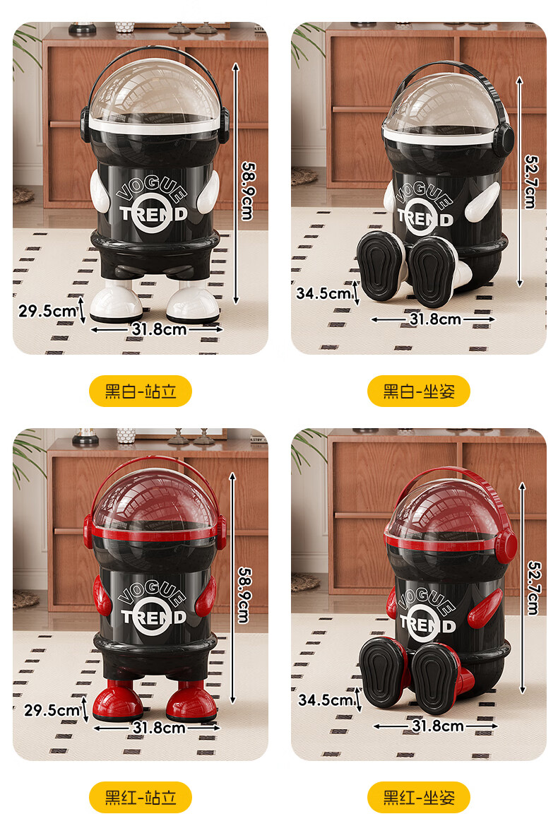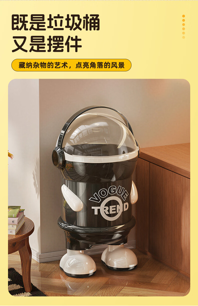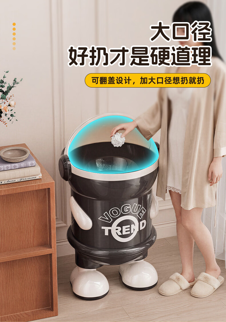 纳份爱垃圾桶客厅家用网红太空人2026新款轻奢高档卧室厕所带盖垃圾篓袋 15L-加厚黑白【站立】内外双桶/掀盖式