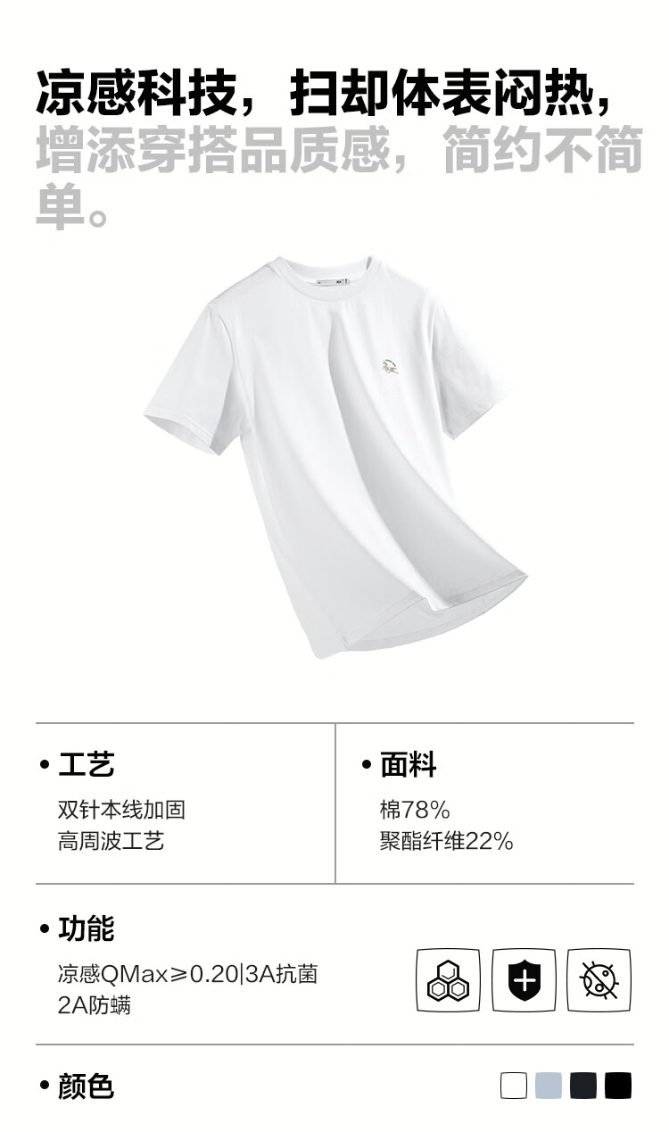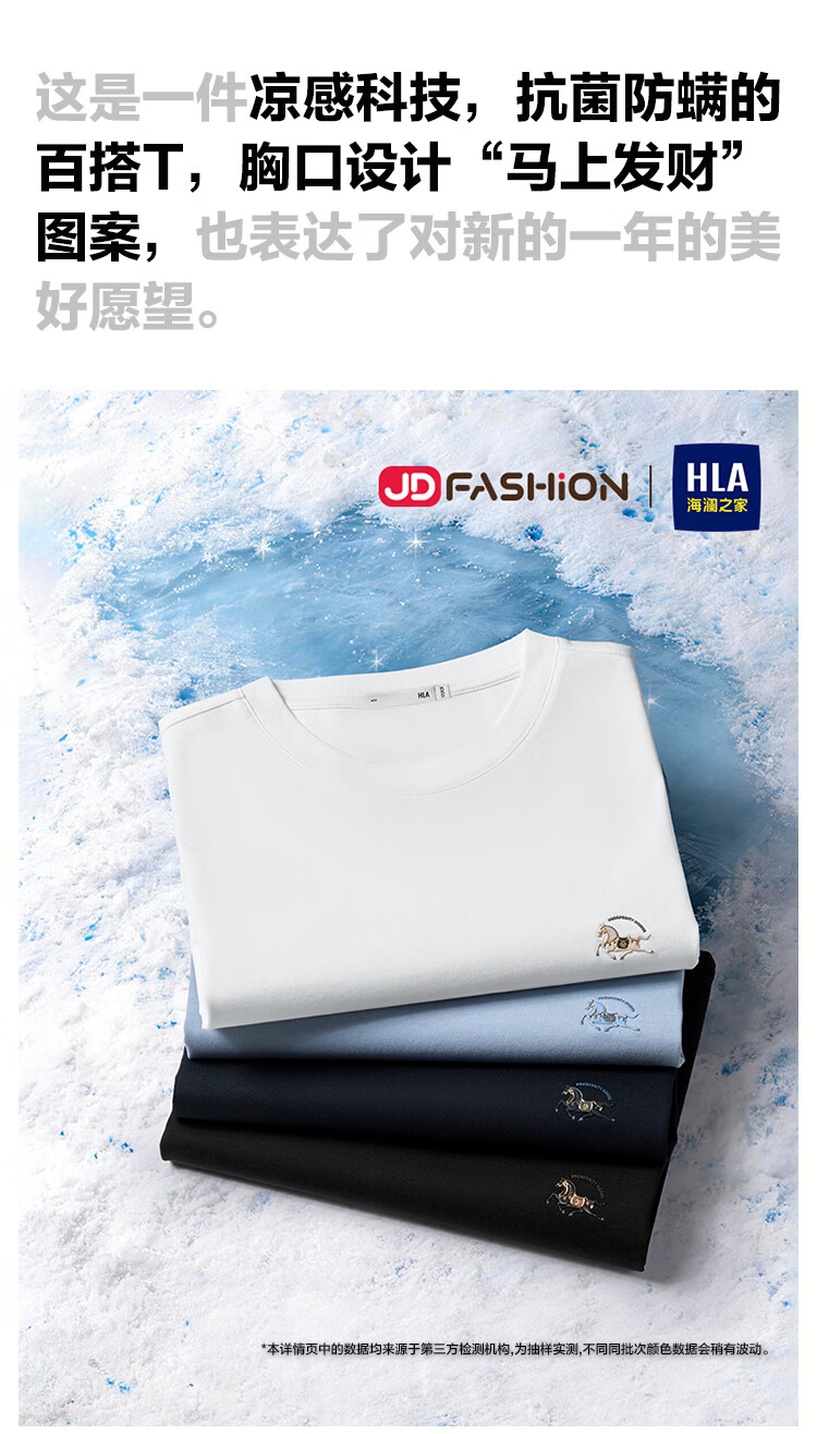 海澜之家(HLA)短袖T恤男【京东专供】26马年系列凉感短袖男夏季