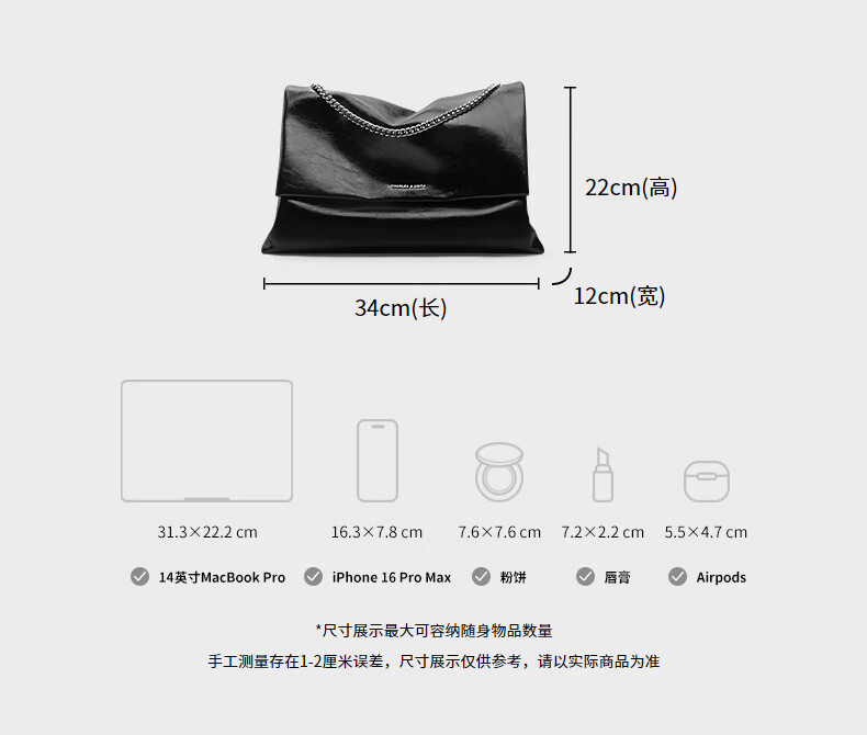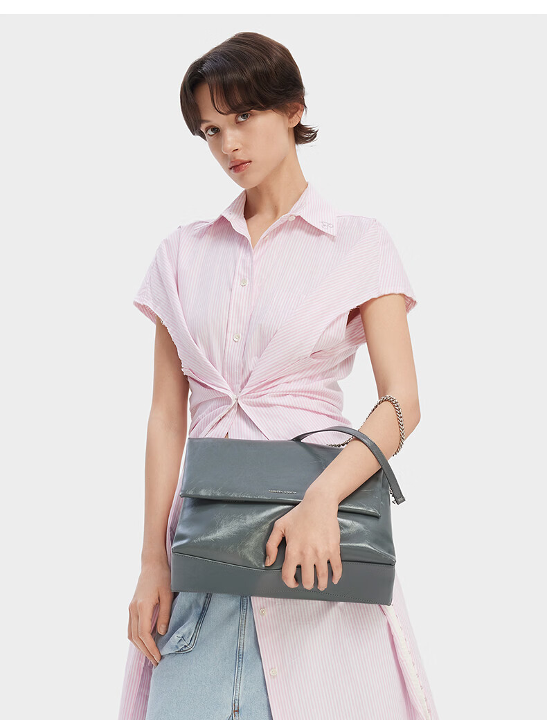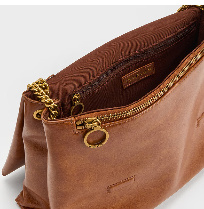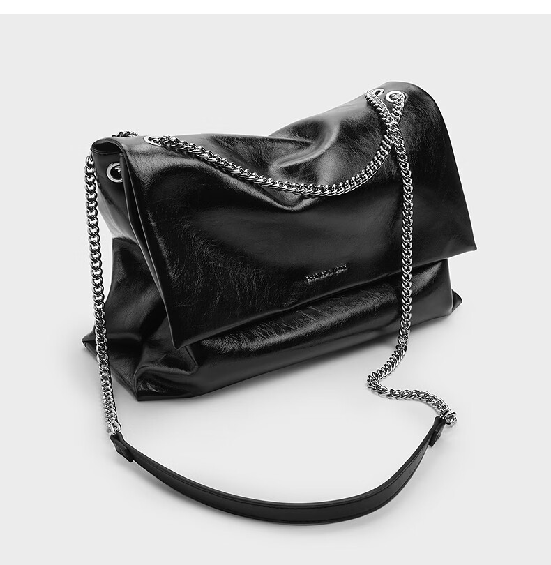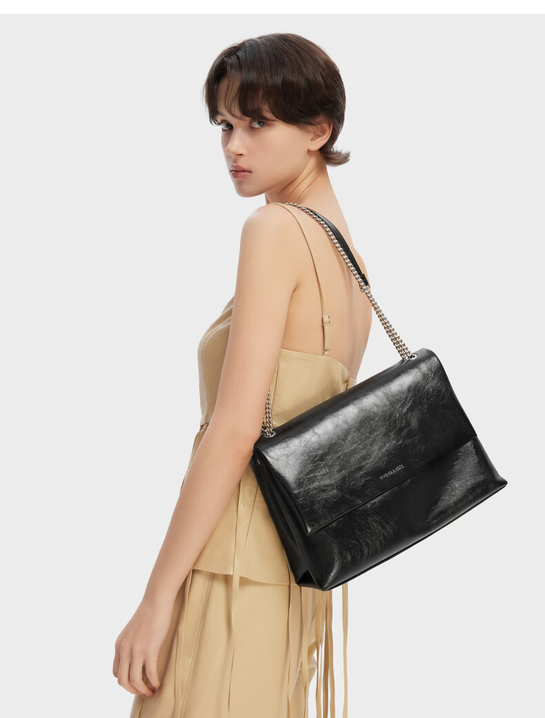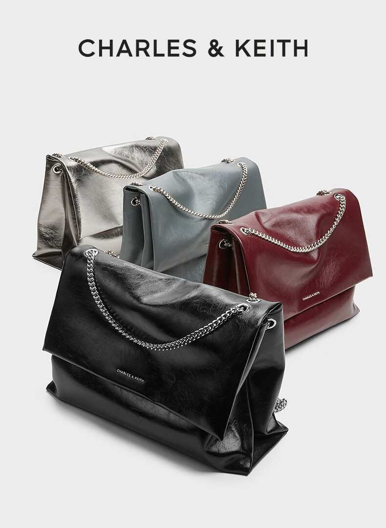 CHARLES&KEITH大容量纯色链条邮差包单肩腋下包包女包婚包生日礼物CK2-20271514 Black黑色 大包