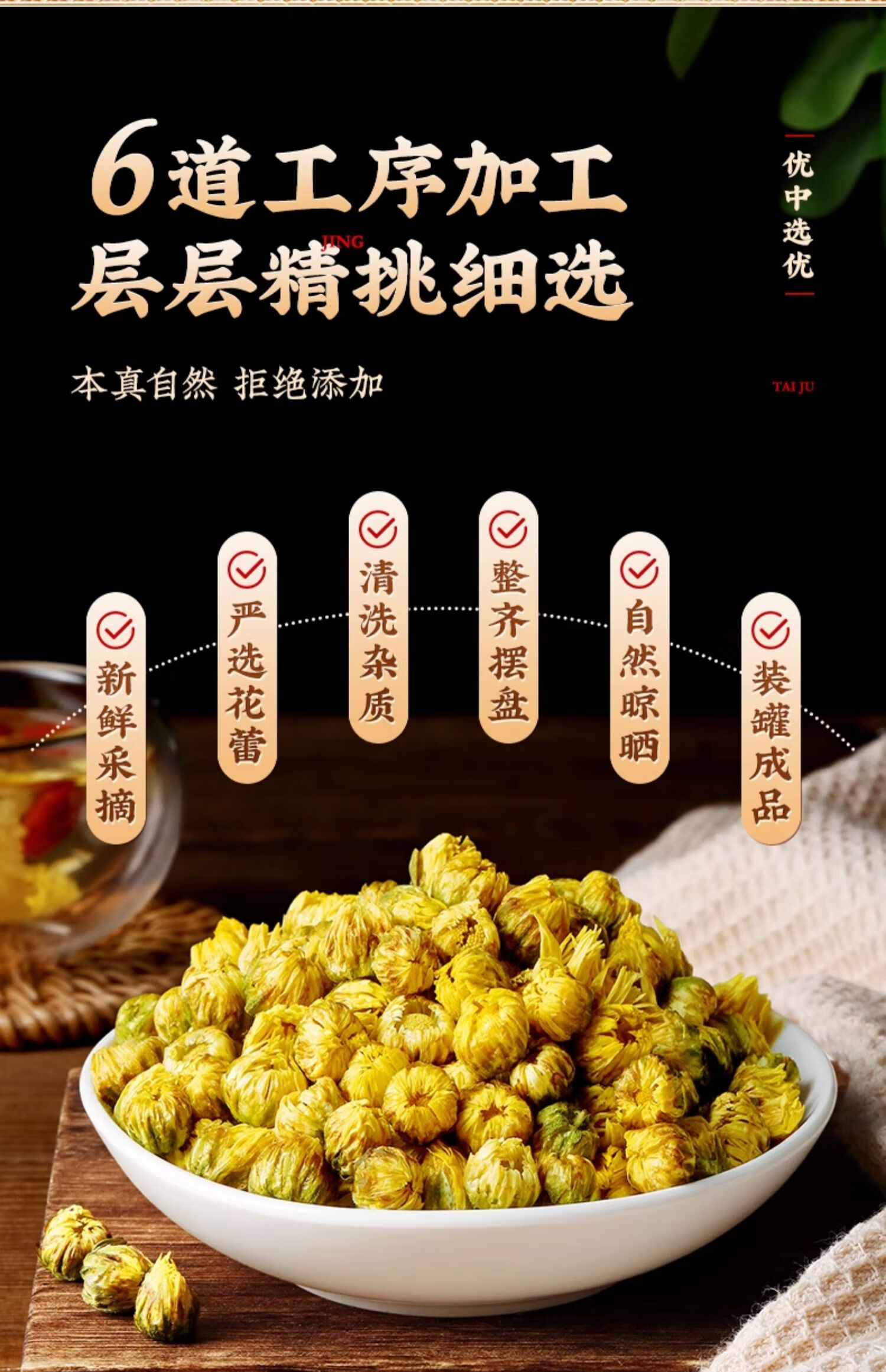刀蔓菊花茶金丝皇菊黄山菊花茶泡茶黄山菊花胎菊桐乡泡水喝胎菊茶花茶 金丝皇菊 50g*1瓶 【大瓶】