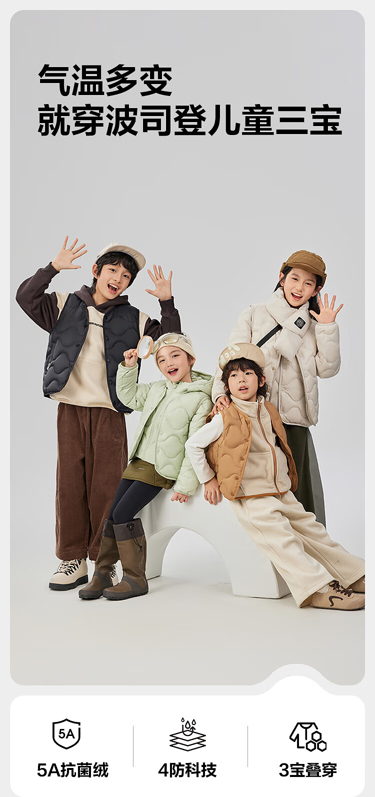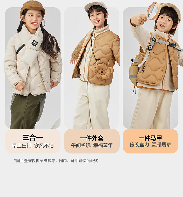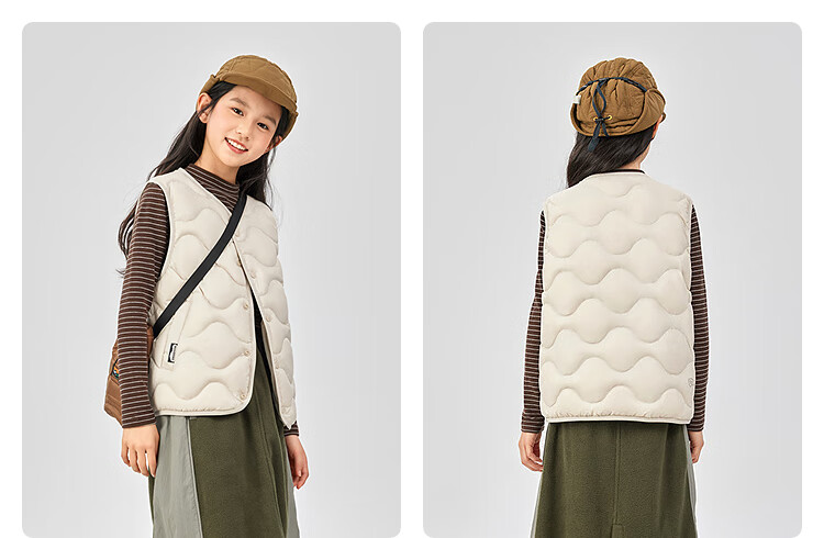 波司登(BOSIDENG)25新款轻薄羽绒服男女儿童5A抗菌4防葫芦纹巴恩风马甲T250135020W 燕麦色7185-趋势推荐 165 /84A 约 155-165cm 54kg