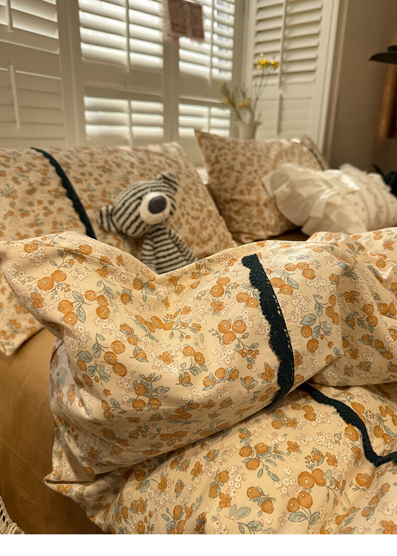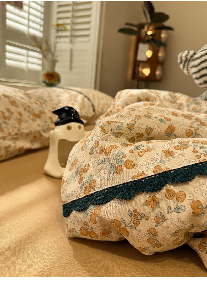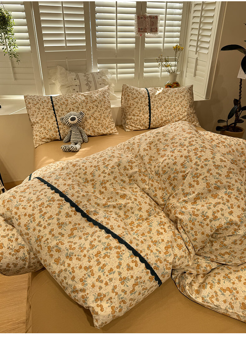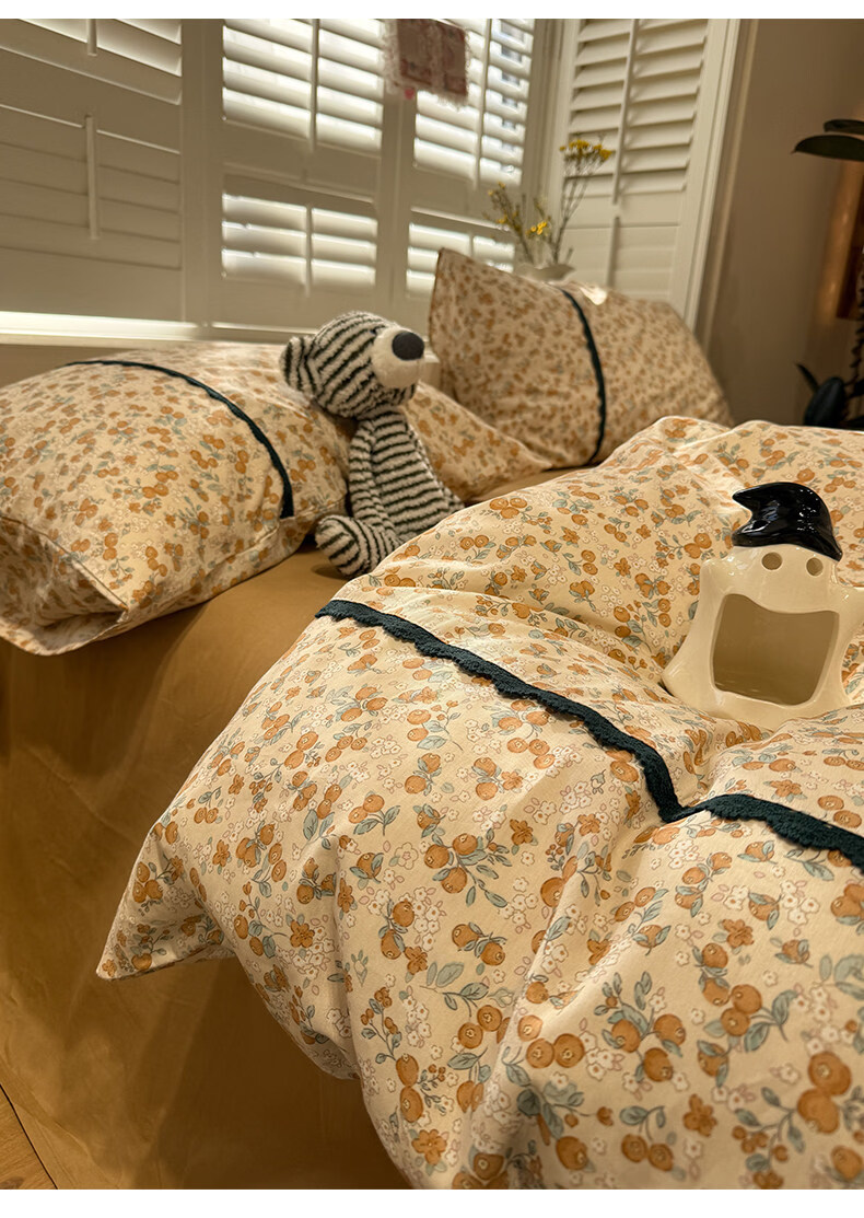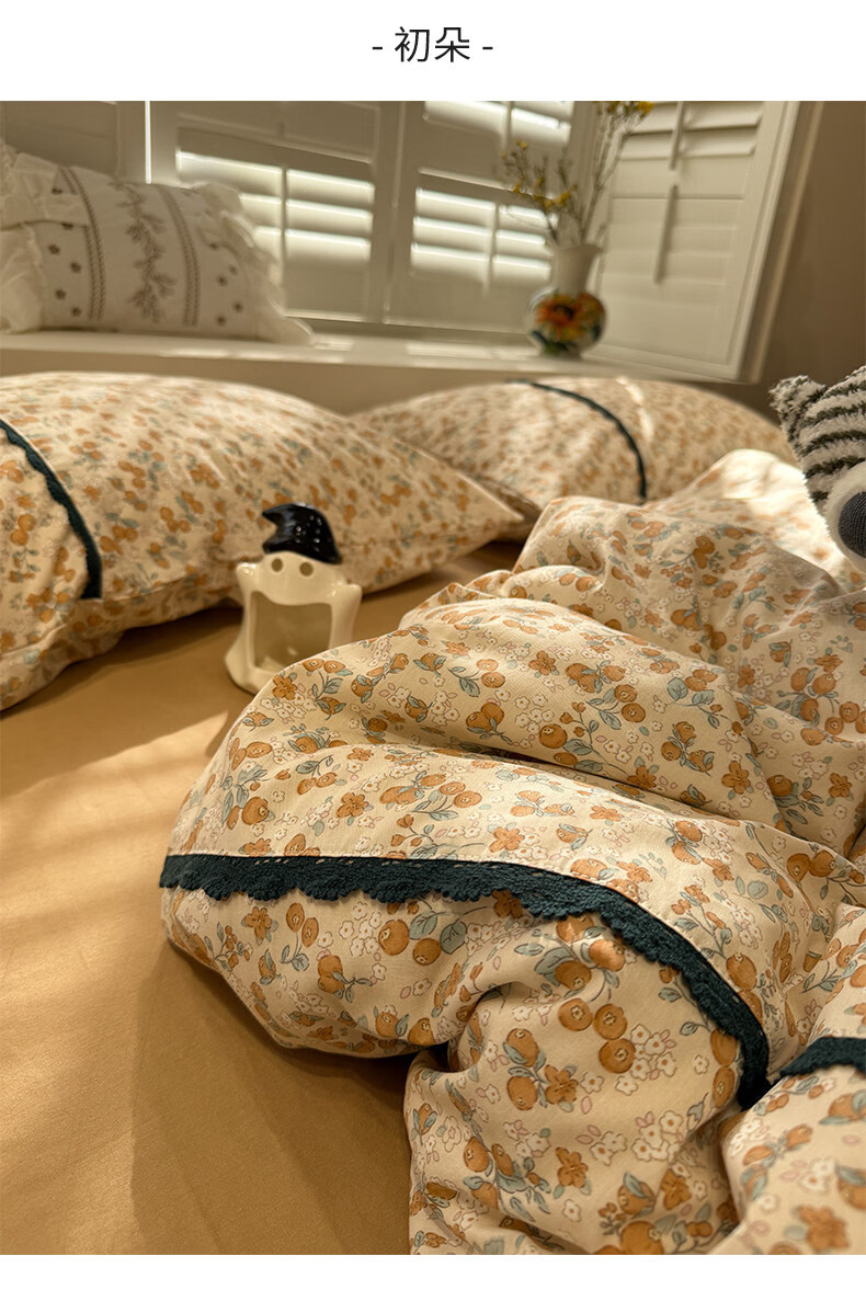 苏萱法式田园小碎花全棉床上四件套纯棉蕾丝花边被套床单巨好看的床品 蓝调花册 1.8m 床单款 四件套-被套200x230cm