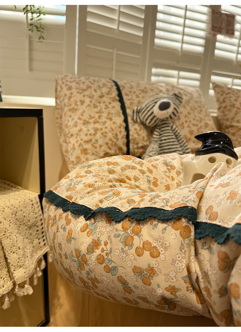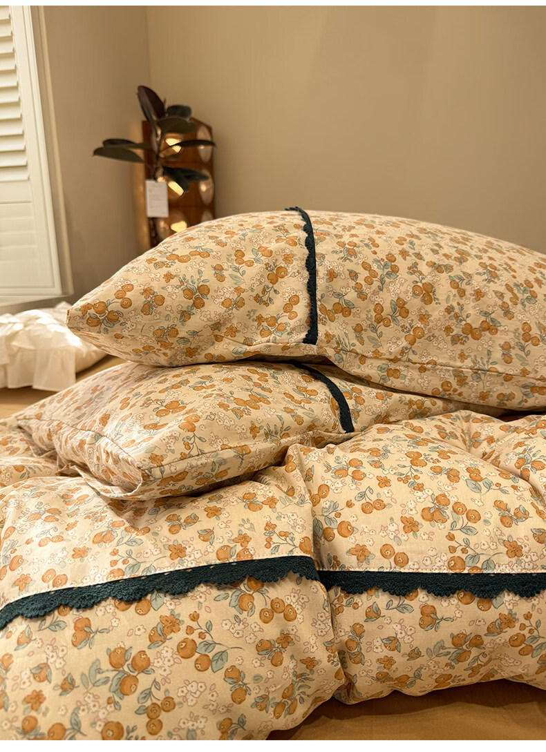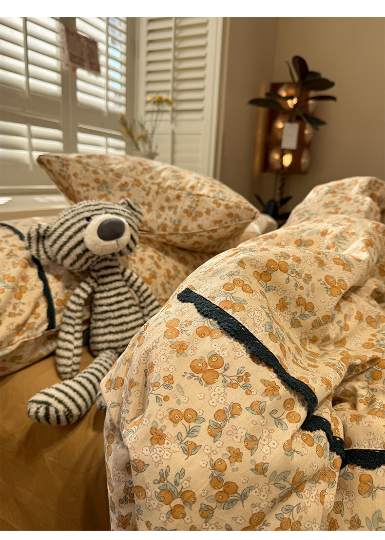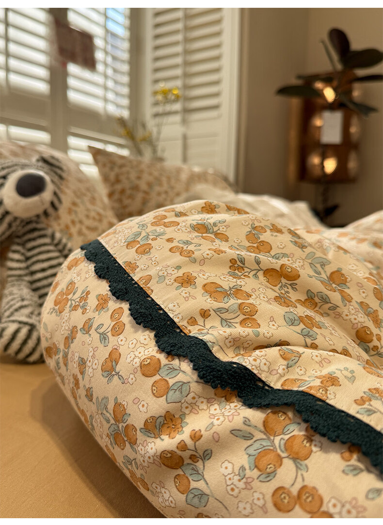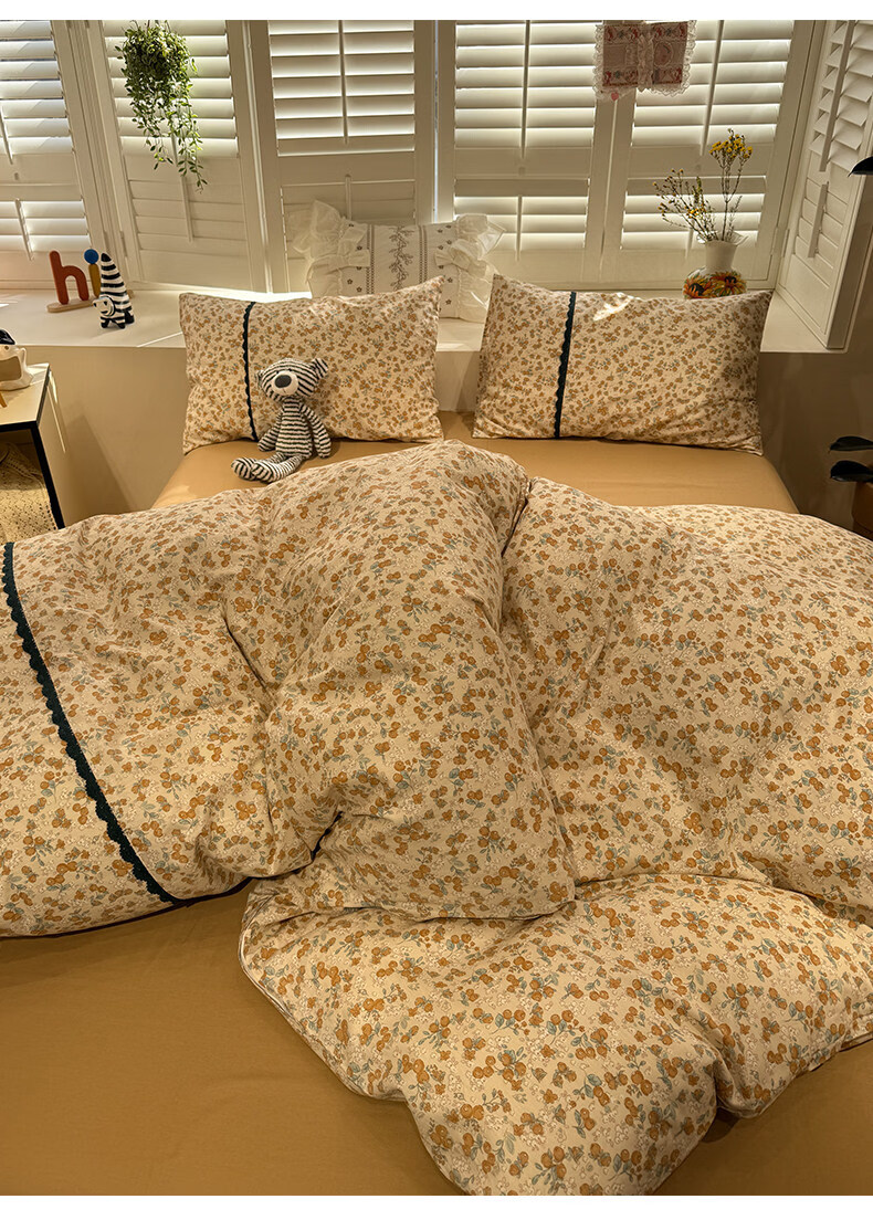 苏萱法式田园小碎花全棉床上四件套纯棉蕾丝花边被套床单巨好看的床品 蓝调花册 1.8m 床单款 四件套-被套200x230cm