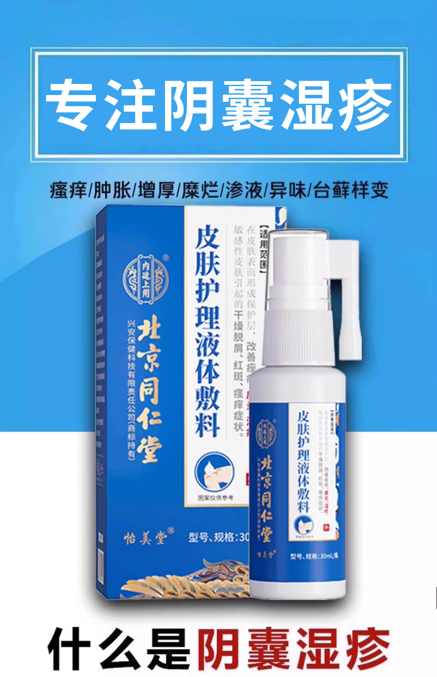 北京同仁堂阴囊湿疹喷雾 阴囊潮湿瘙痒男性阴部裆部潮湿潮热会阴部大腿内侧痒红肿脱皮干裂皮炎湿疹专用喷剂 9盒装【买5送4】