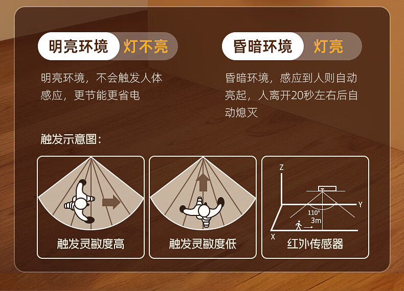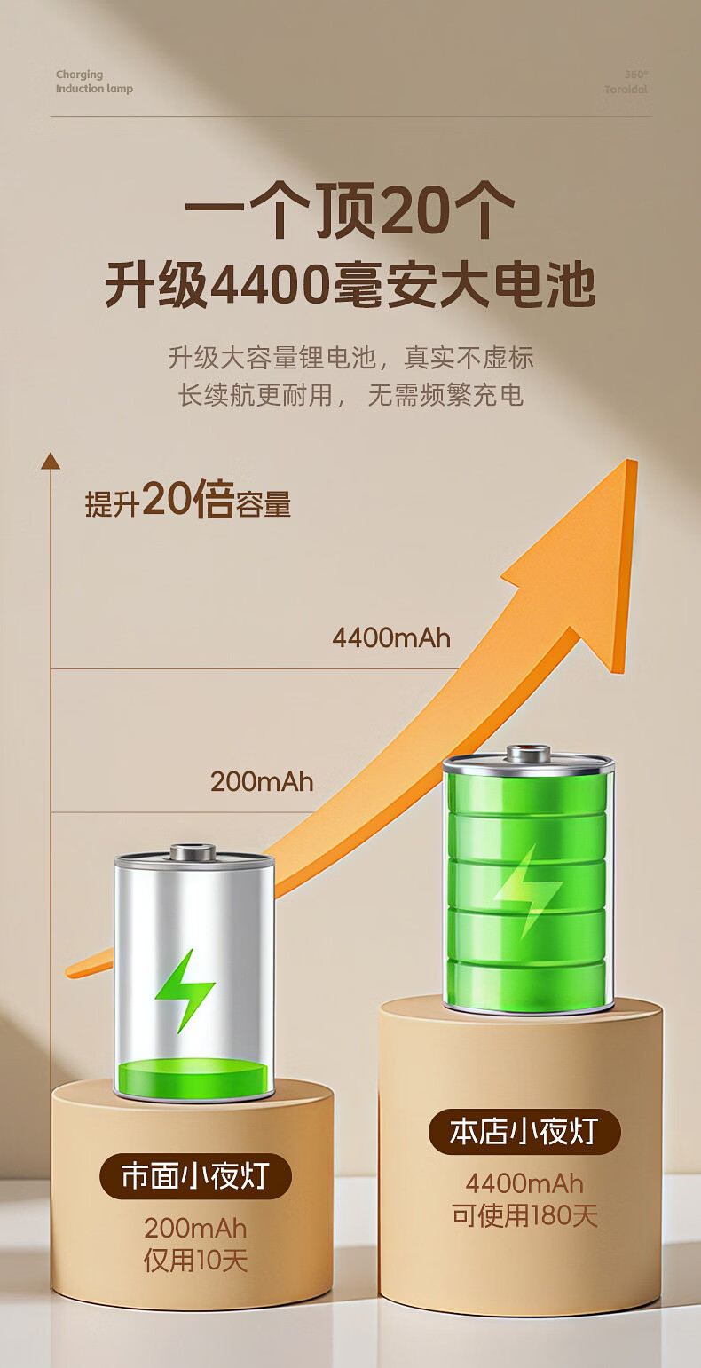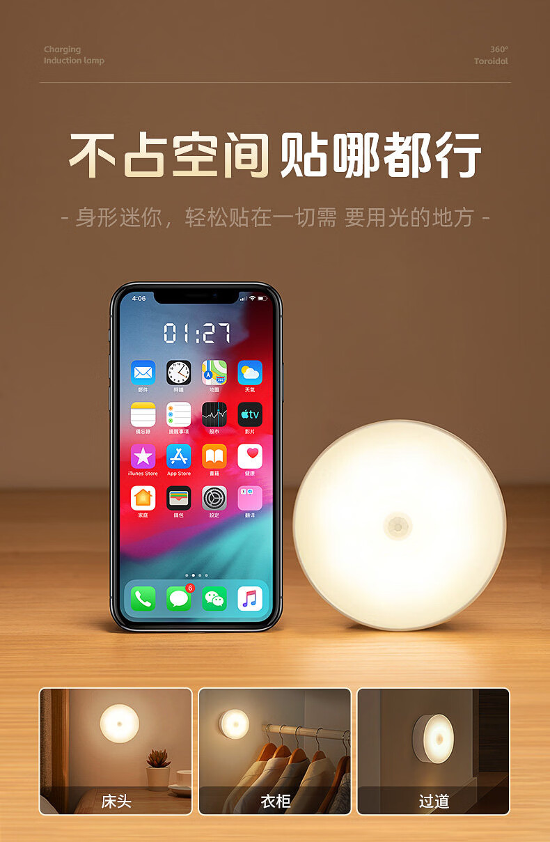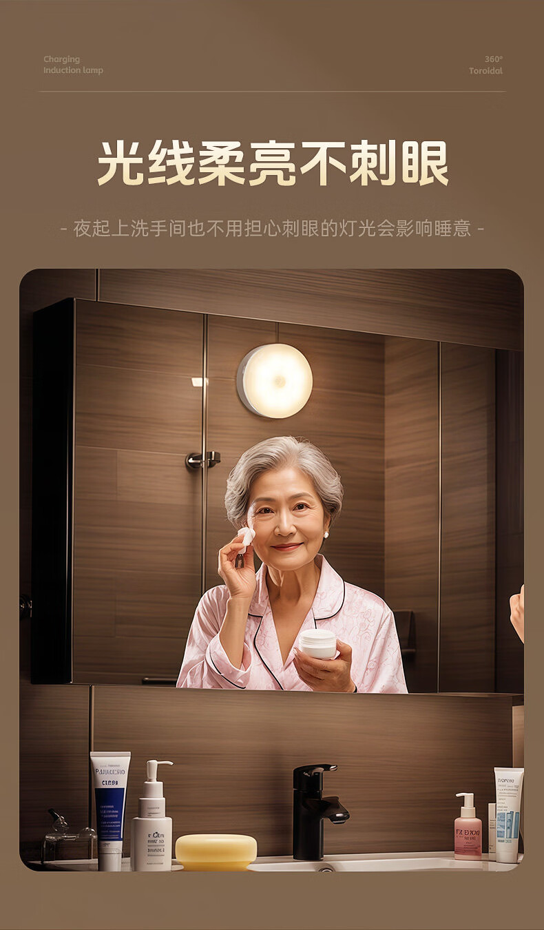 GERTHRON德国智能人体自动感应小夜灯充电入户楼道走廊即亮夜间起过道磁吸 【单只装】人体感应-常亮-暖白光