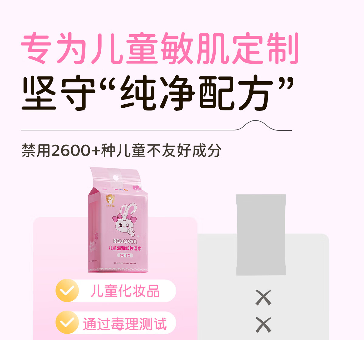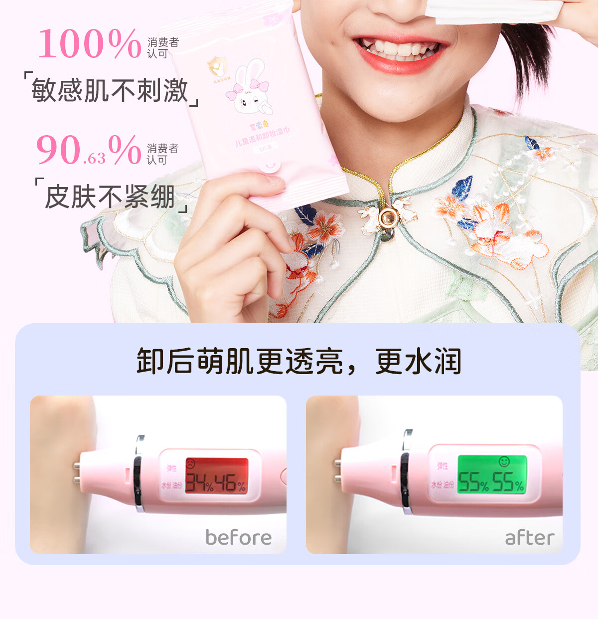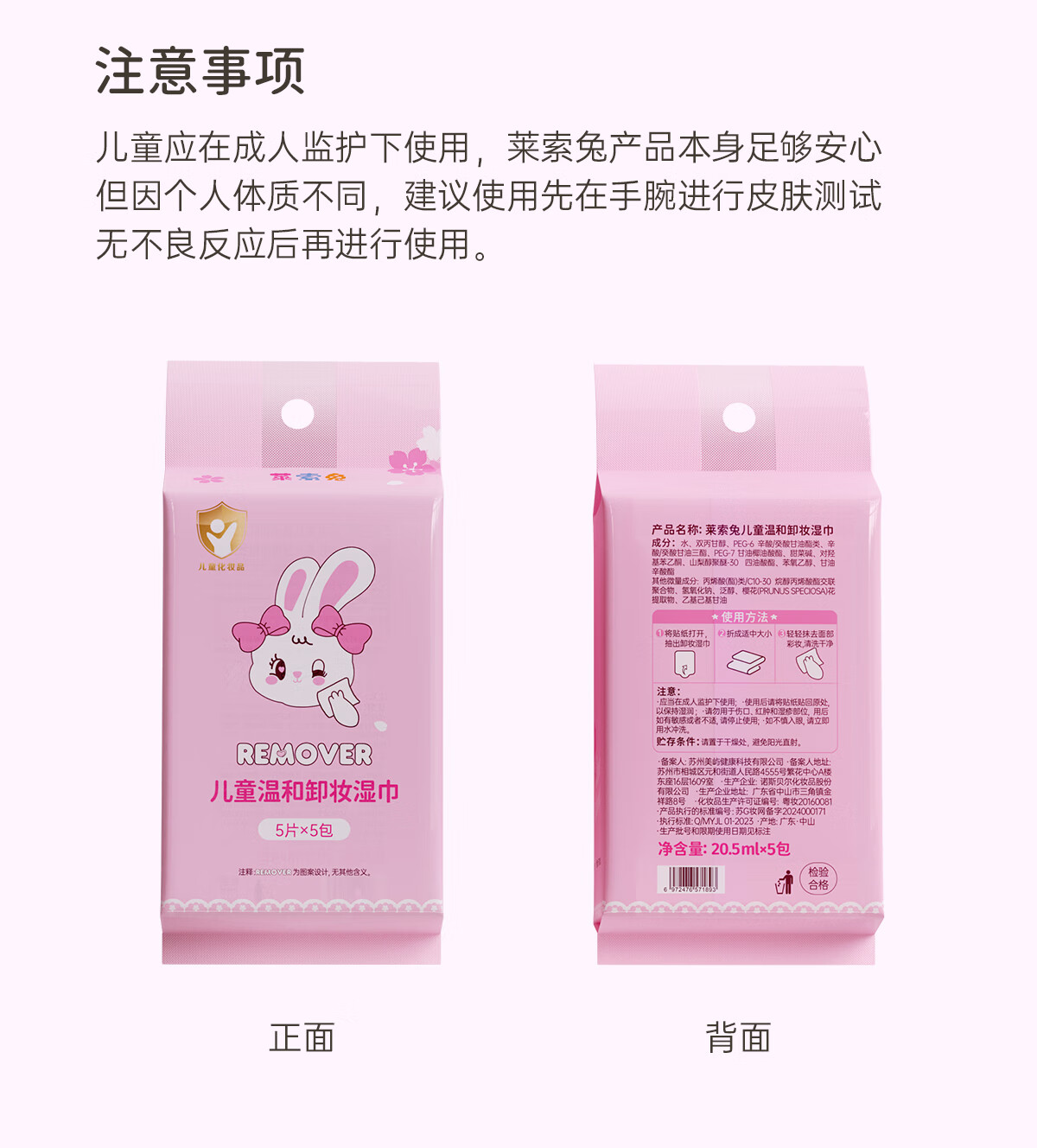 莱索兔 儿童温和卸妆湿巾 一次性便携卸妆巾学生可用深层清洁无刺激25片 卸妆湿巾 1包(25片)